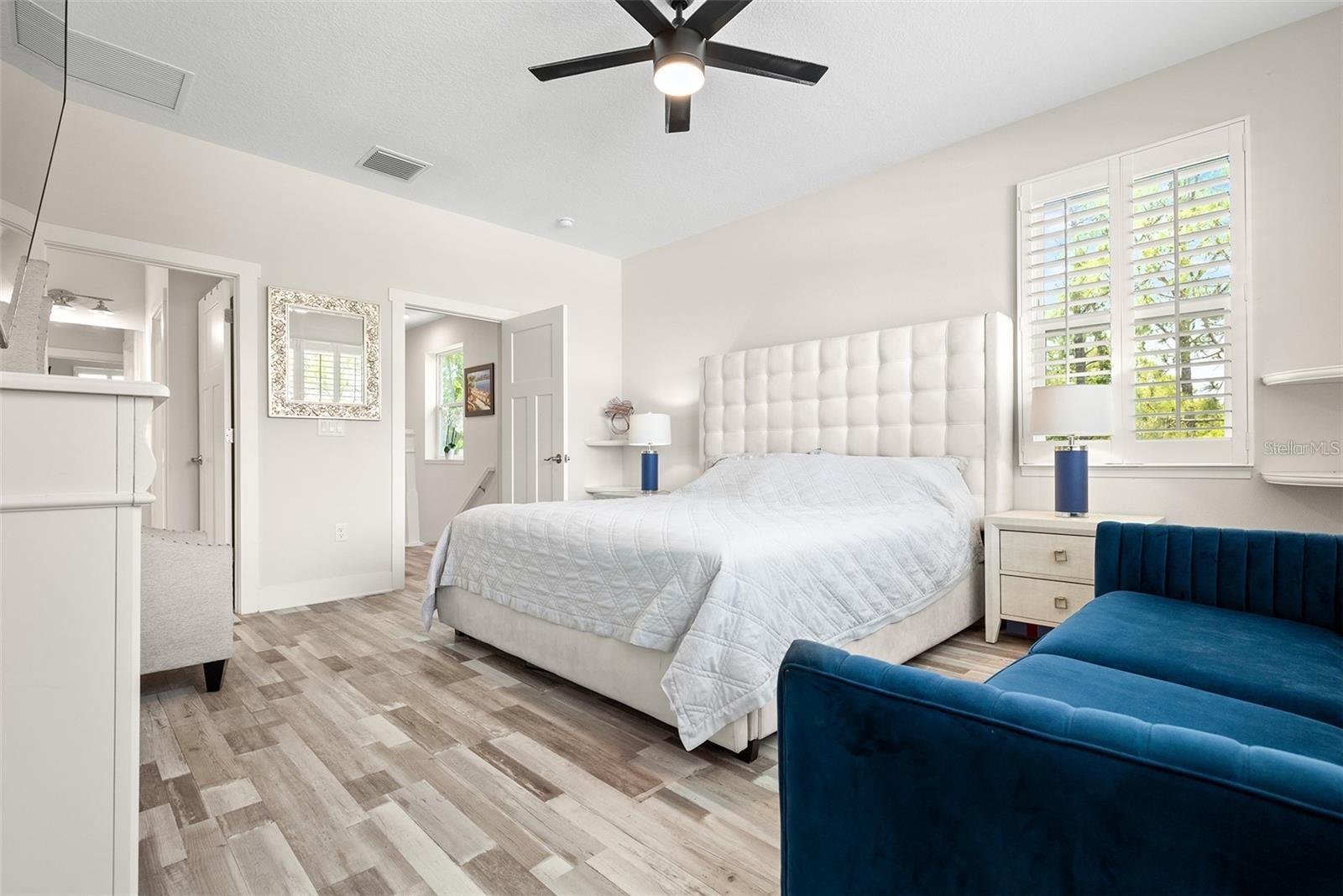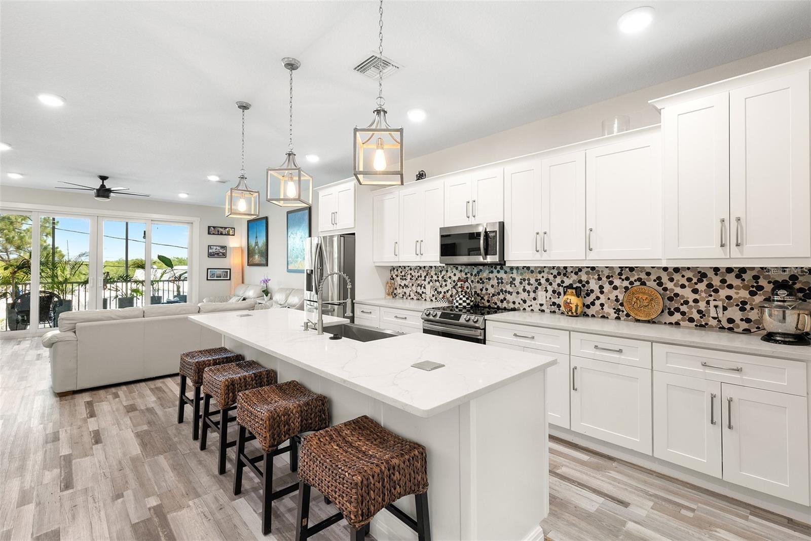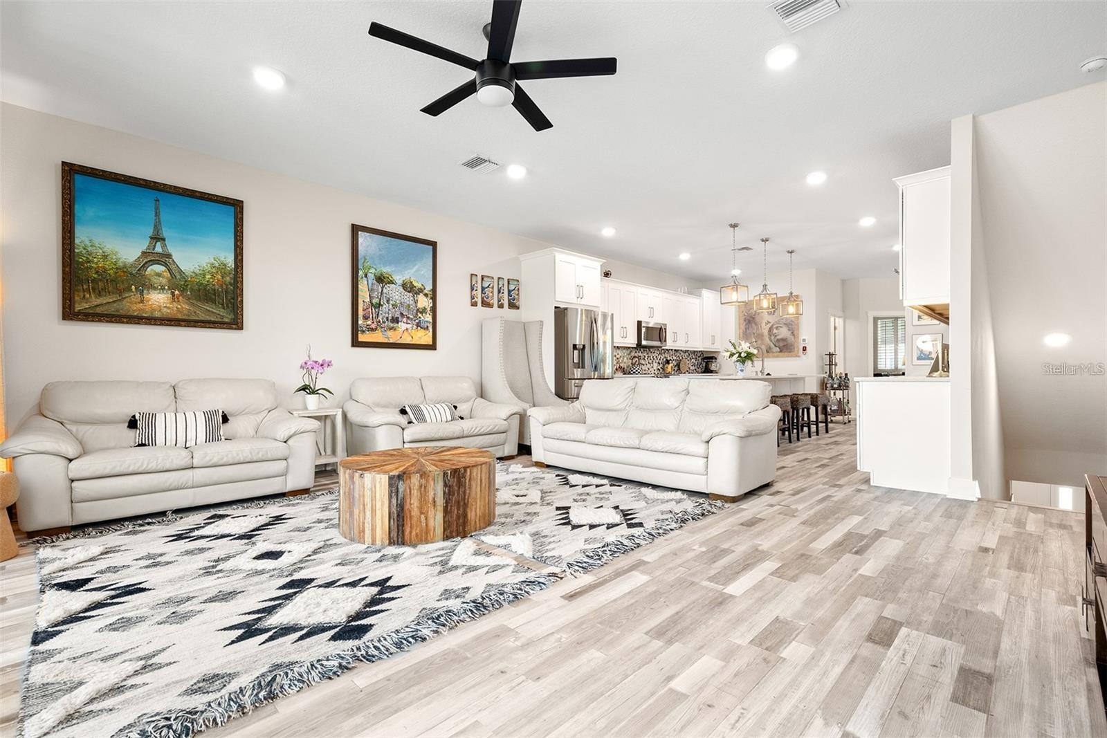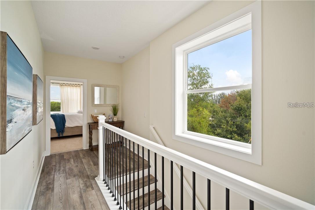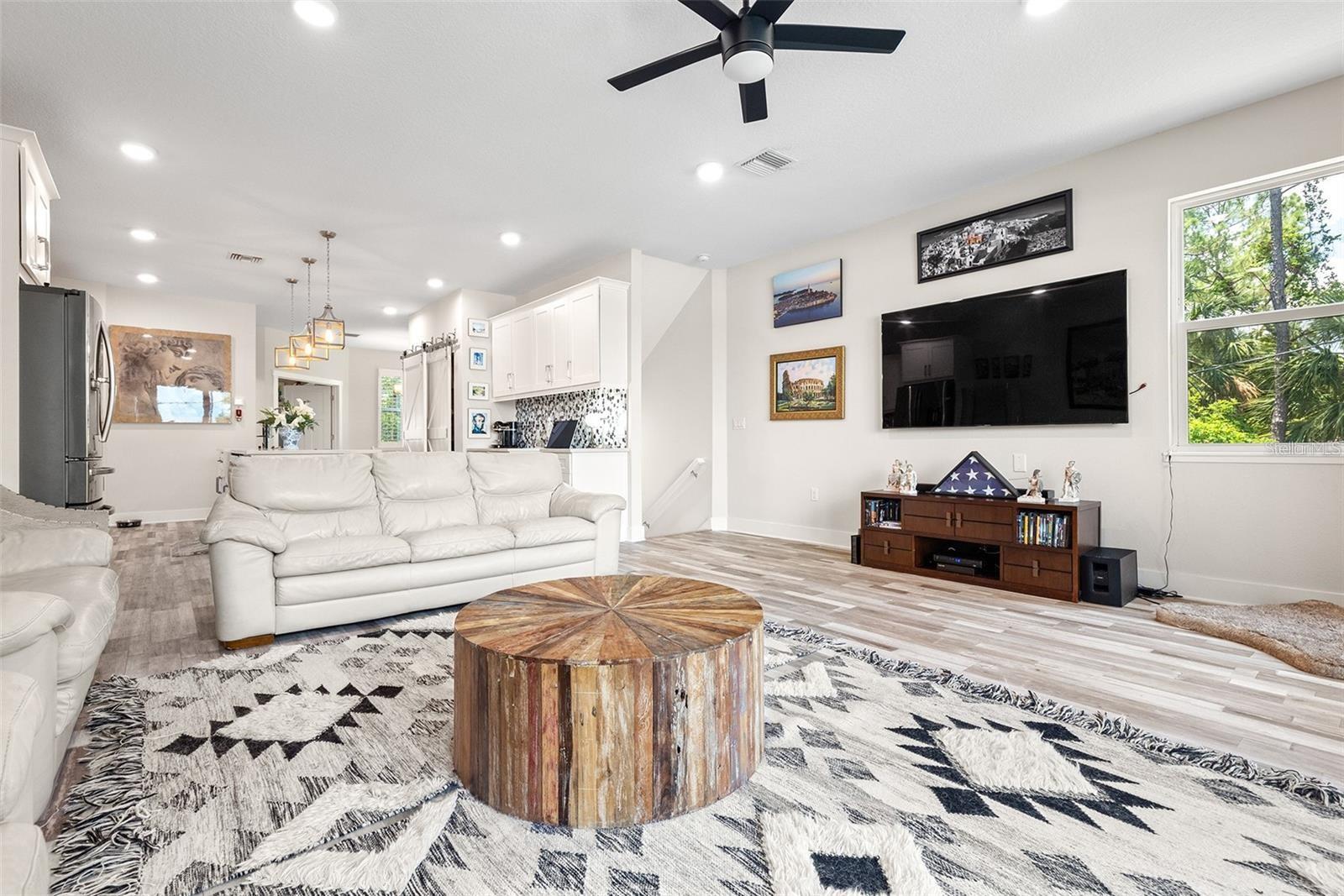 Welcome to Riviera Place Townhomes! This stunning 4-bedroom, 3-full-bathroom luxury Key West-style townhome perfectly blends Tampa and Saint Pete living. Ideally located just blocks from the bay, beaches, The Getaway, and scenic bike paths, this cozy gated community offers quick access to everything you love about both cities. Inside, thoughtful design and high-end finishes shine throughout. The oversized tandem garage, featuring soaring 20–30 ft ceilings, easily accommodates a boat plus two additional vehicles (or up to four cars) with storage — or even your own private basketball court. The garage also includes a professionally mounted basketball hoop and an oversized ceiling fan, ideal for Florida summers. Step outside to a fully fenced backyard with an extended brick paver patio — perfect for entertaining or letting pets roam freely, a rare upgrade in the community. Upgrades over standard units include LED recessed lighting, Z-Wave smart technology systems, WiFi-enabled keyless entry, hurricane-rated impact glass windows and sliders, and ceiling fans installed in every ceiling light fixture throughout the home — a premium additional upgrade. The gourmet kitchen is a true showstopper with upgraded stone quartz countertops, a sprawling island, a luxury designer pull-down faucet, pop-up outlets, a built-in desk, a large walk-in pantry with barn doors, and premium stainless steel appliances. The second floor features a bright living room that opens to a paver balcony, plus a guest bedroom or office space. A full bathroom was added here, offering extra convenience and flexibility. Upstairs, the expansive primary suite impresses with an extended walk-in closet, an oversized walk-in shower, dual sinks, and upgraded bathroom finishes. A third bedroom and third full bathroom complete the upper floor layout. Additional upgrades totaling over $50,000 include upgraded laminate flooring throughout (replacing standard carpet), upgraded blinds, and rare triple parking spaces — the only home in the neighborhood offering this feature. Riviera Place offers resort-style amenities, including a private gated entrance, resort-style pool and clubhouse, scenic pond, guest parking, and a dog park.