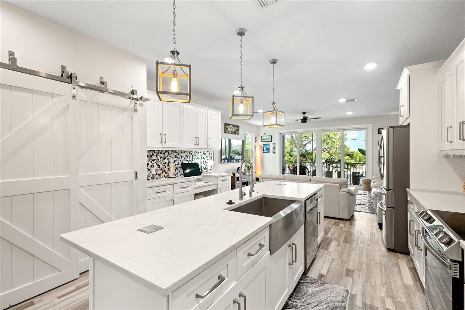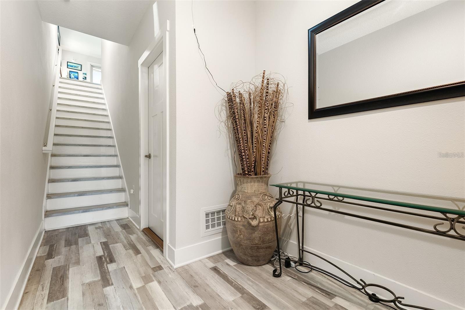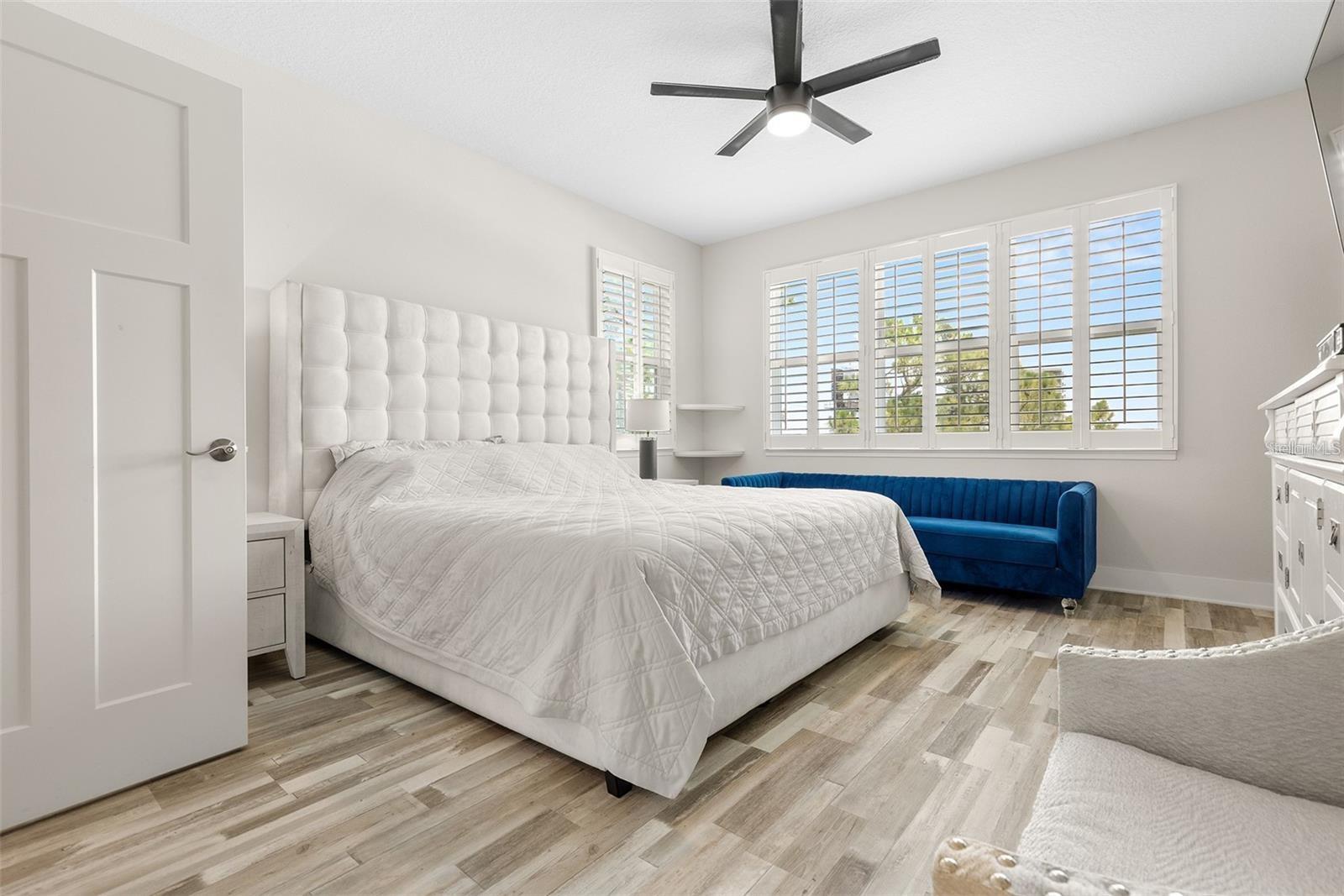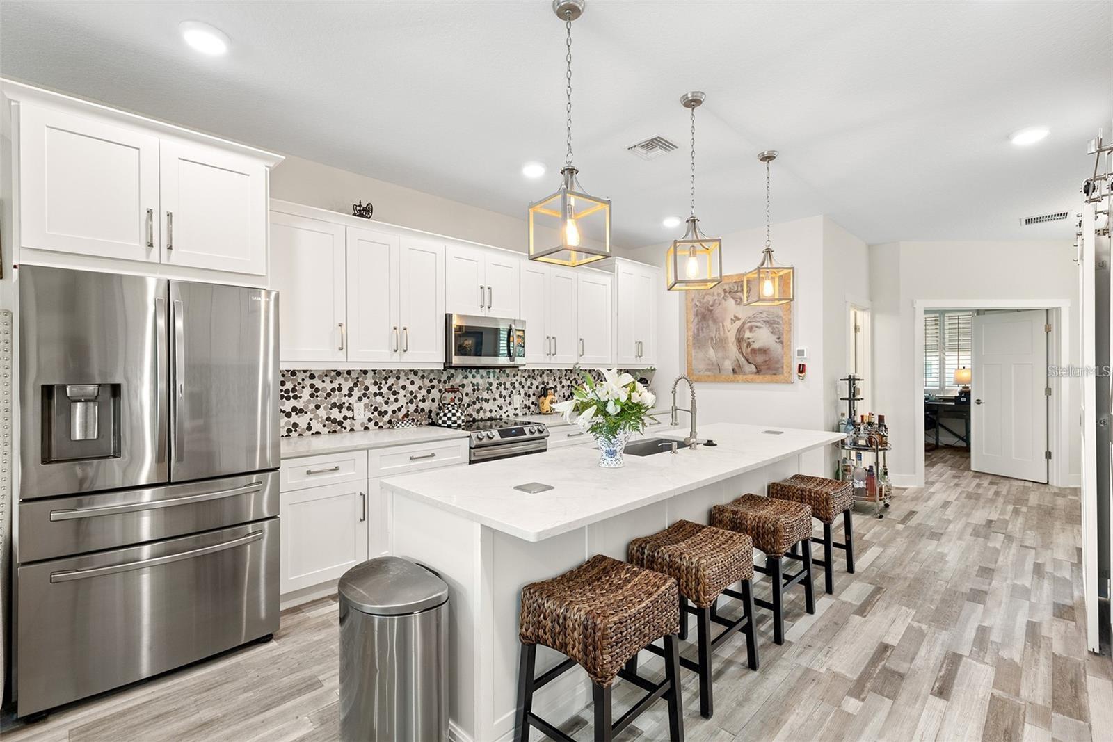 Welcome to Riviera Place Townhomes! This stunning 4-bedroom, 3-full-bathroom luxury Key West-style townhome perfectly blends Tampa and Saint Pete living. Ideally located just blocks from the bay, beaches, The Getaway, and scenic bike paths, this cozy gated community offers quick access to everything you love about both cities. Inside, thoughtful design and high-end finishes shine throughout. The oversized tandem garage, featuring soaring 20–30 ft ceilings, easily accommodates a boat plus two additional vehicles (or up to four cars) with storage — or even your own private basketball court. The garage also includes a professionally mounted basketball hoop and an oversized ceiling fan, ideal for Florida summers. Step outside to a fully fenced backyard with an extended brick paver patio — perfect for entertaining or letting pets roam freely, a rare upgrade in the community. Upgrades over standard units include LED recessed lighting, Z-Wave smart technology systems, WiFi-enabled keyless entry, hurricane-rated impact glass windows and sliders, and ceiling fans installed in every ceiling light fixture throughout the home — a premium additional upgrade. The gourmet kitchen is a true showstopper with upgraded stone quartz countertops, a sprawling island, a luxury designer pull-down faucet, pop-up outlets, a built-in desk, a large walk-in pantry with barn doors, and premium stainless steel appliances. The second floor features a bright living room that opens to a paver balcony, plus a guest bedroom or office space. A full bathroom was added here, offering extra convenience and flexibility. Upstairs, the expansive primary suite impresses with an extended walk-in closet, an oversized walk-in shower, dual sinks, and upgraded bathroom finishes. A third bedroom and third full bathroom complete the upper floor layout. Additional upgrades totaling over $50,000 include upgraded laminate flooring throughout (replacing standard carpet), upgraded blinds, and rare triple parking spaces — the only home in the neighborhood offering this feature. Riviera Place offers resort-style amenities, including a private gated entrance, resort-style pool and clubhouse, scenic pond, guest parking, and a dog park.