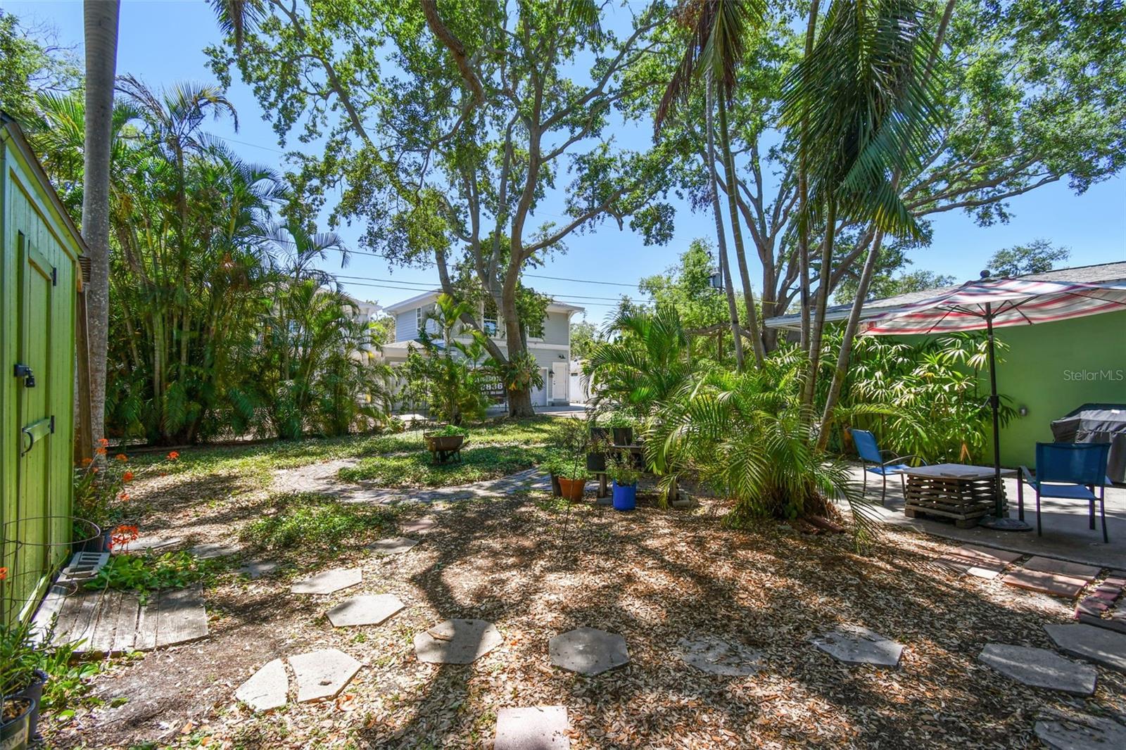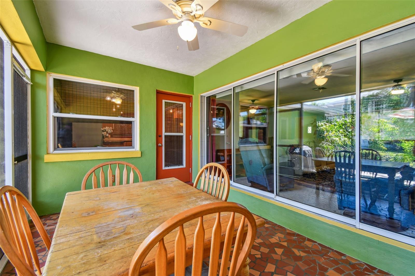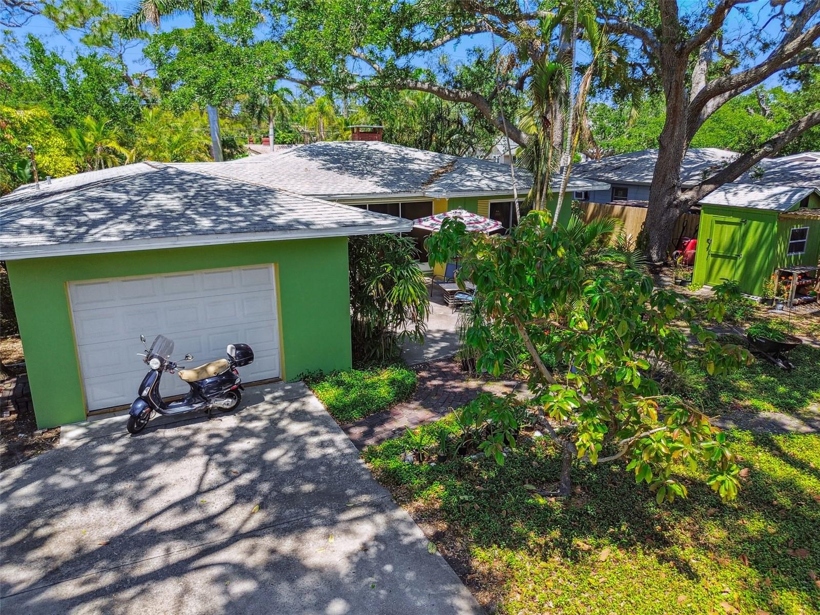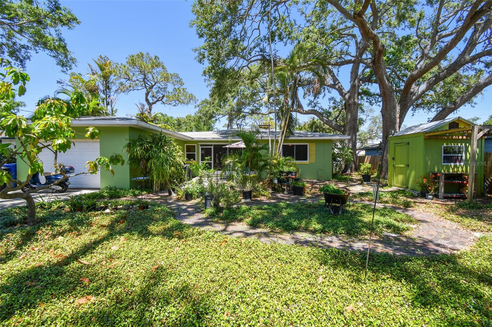 Charming Old Southeast gem near Lassing Park. Welcome to this delightful two-bedroom, one-bath single-family home in the heart of the sought-after Old Southeast neighborhood. On a generously sized lot with lush, mature landscaping, this home exudes warmth and character. Go inside to discover original parquet floors and a spacious living room that flows seamlessly through pocket sliding glass doors onto the lanai, ideal for indoor-outdoor Florida living. The beautifully landscaped backyard offers a peaceful retreat and features alley access for added convenience. The large kitchen is ideal for home chefs, complete with newer appliances, ample cabinetry, a cozy breakfast nook and a dedicated coffee bar. The primary bedroom and kitchen offer direct access to the lanai, enhancing the home's open, airy feel. Additional highlights include hurricane-impact windows throughout, hurricane shutters for the sliding glass doors, an attic fan for whole-home ventilation, a deep oversized one-car garage with built-in workstations, an industrial sink and a shed. Just half a block from scenic Lassing Park and minutes from downtown, this home offers a blend of charm, comfort and location.