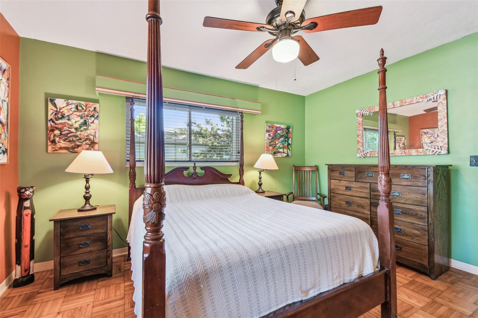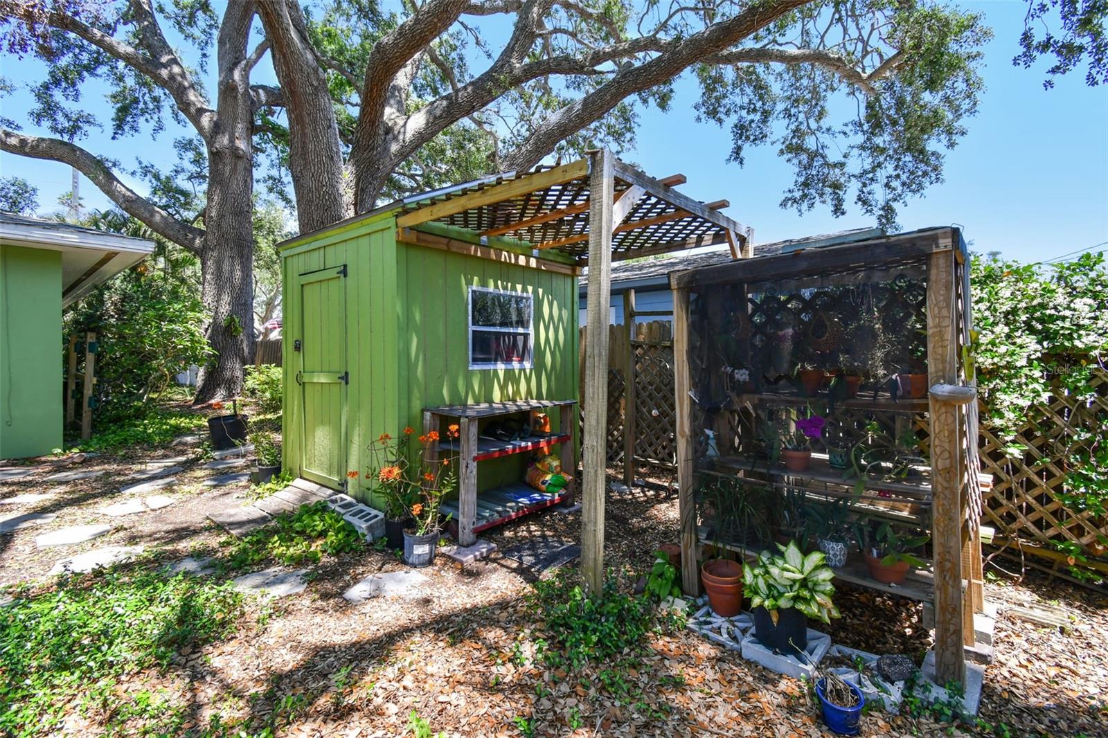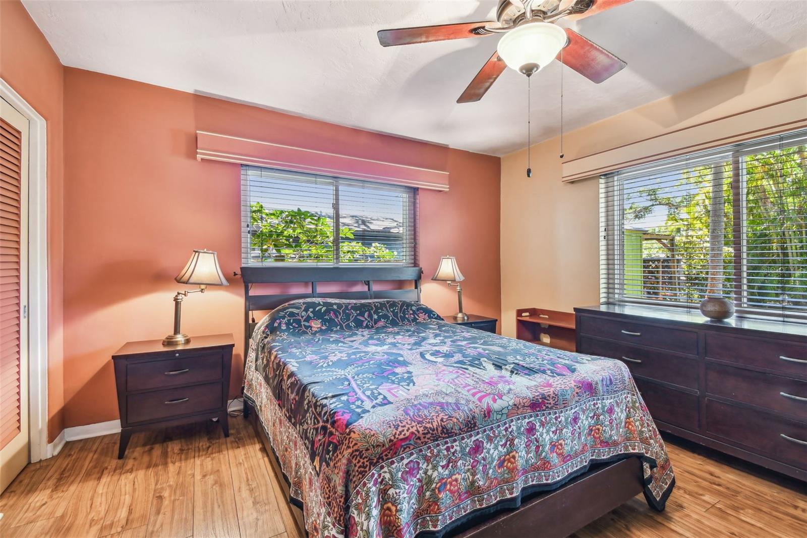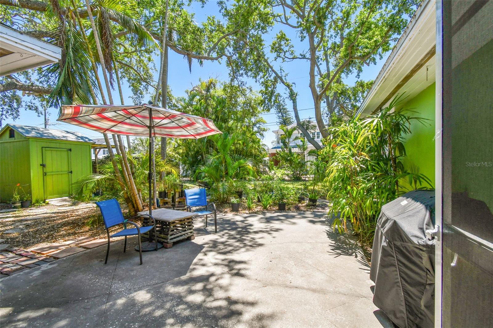 Charming Old Southeast gem near Lassing Park. Welcome to this delightful two-bedroom, one-bath single-family home in the heart of the sought-after Old Southeast neighborhood. On a generously sized lot with lush, mature landscaping, this home exudes warmth and character. Go inside to discover original parquet floors and a spacious living room that flows seamlessly through pocket sliding glass doors onto the lanai, ideal for indoor-outdoor Florida living. The beautifully landscaped backyard offers a peaceful retreat and features alley access for added convenience. The large kitchen is ideal for home chefs, complete with newer appliances, ample cabinetry, a cozy breakfast nook and a dedicated coffee bar. The primary bedroom and kitchen offer direct access to the lanai, enhancing the home's open, airy feel. Additional highlights include hurricane-impact windows throughout, hurricane shutters for the sliding glass doors, an attic fan for whole-home ventilation, a deep oversized one-car garage with built-in workstations, an industrial sink and a shed. Just half a block from scenic Lassing Park and minutes from downtown, this home offers a blend of charm, comfort and location.