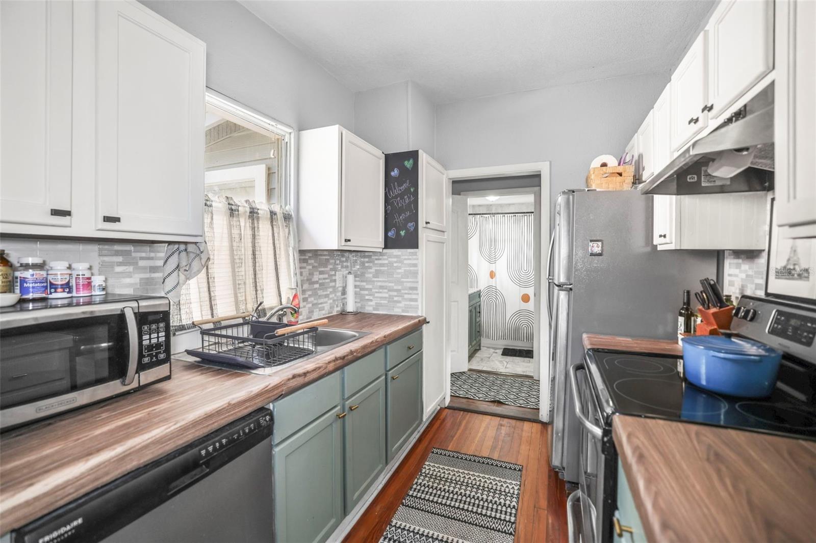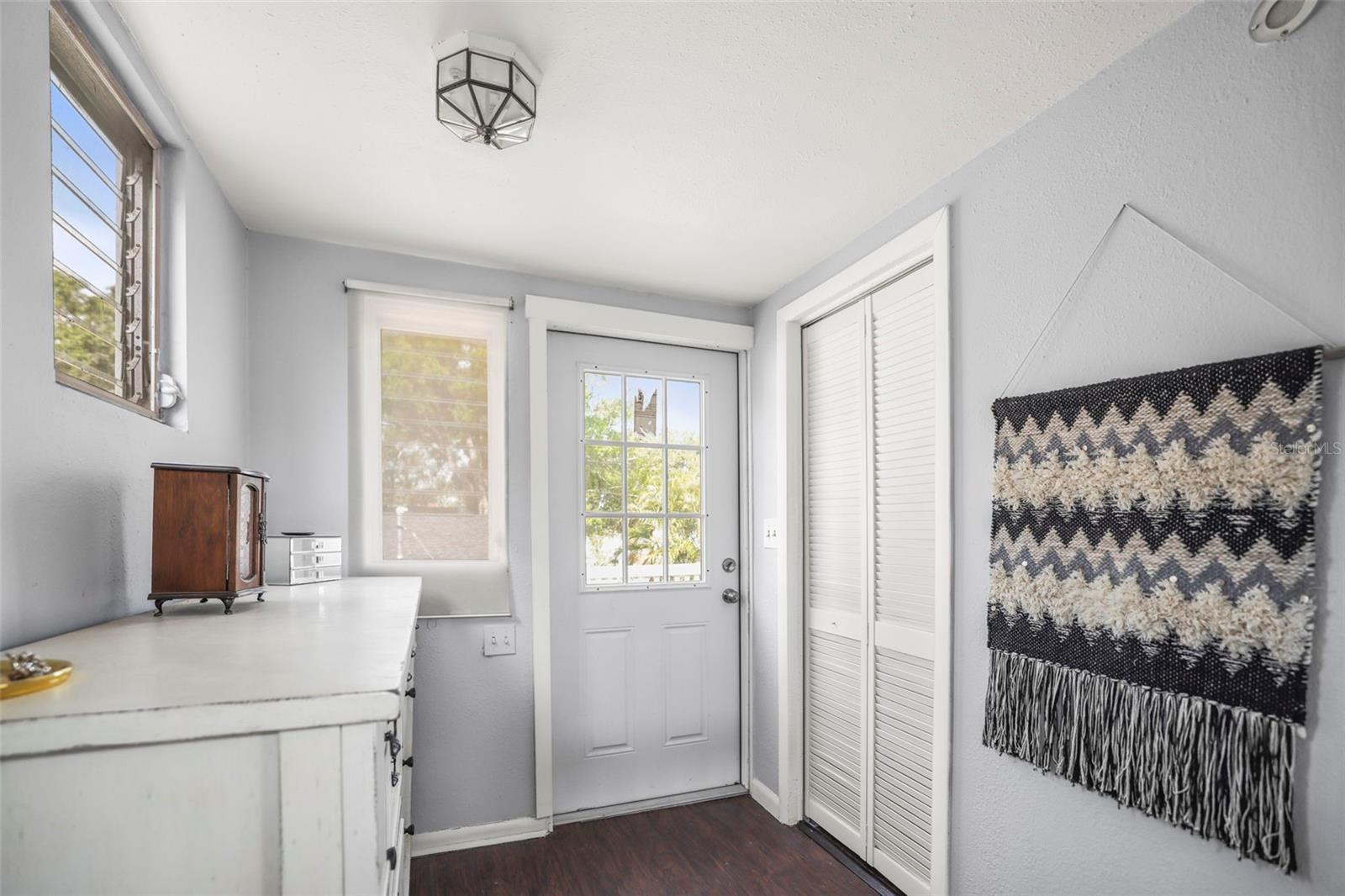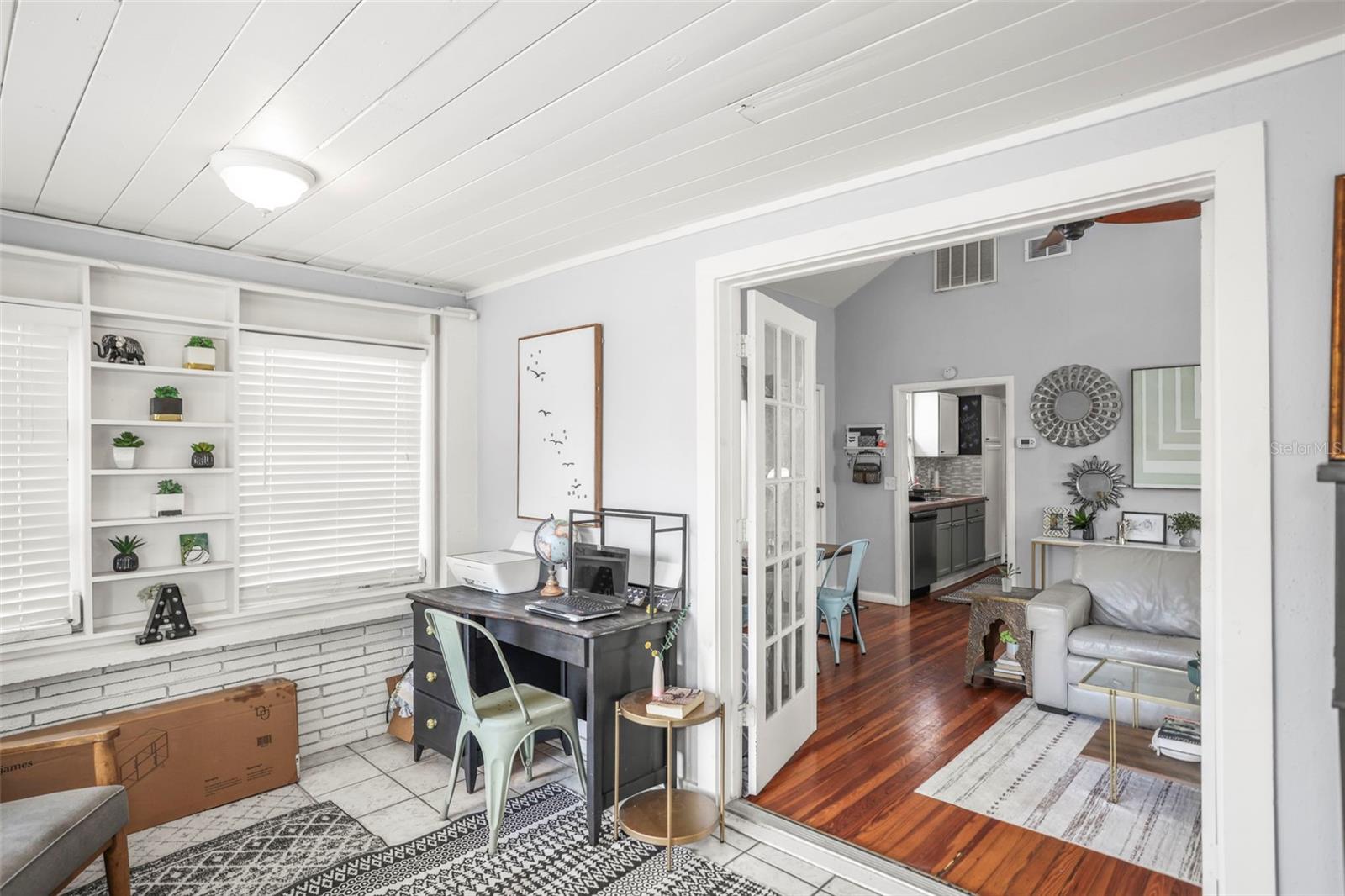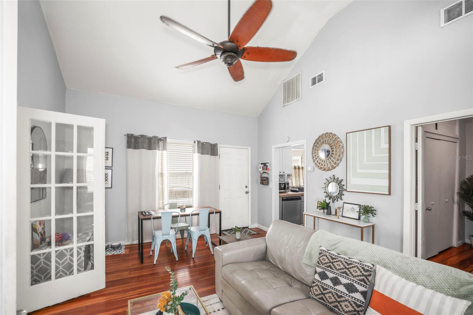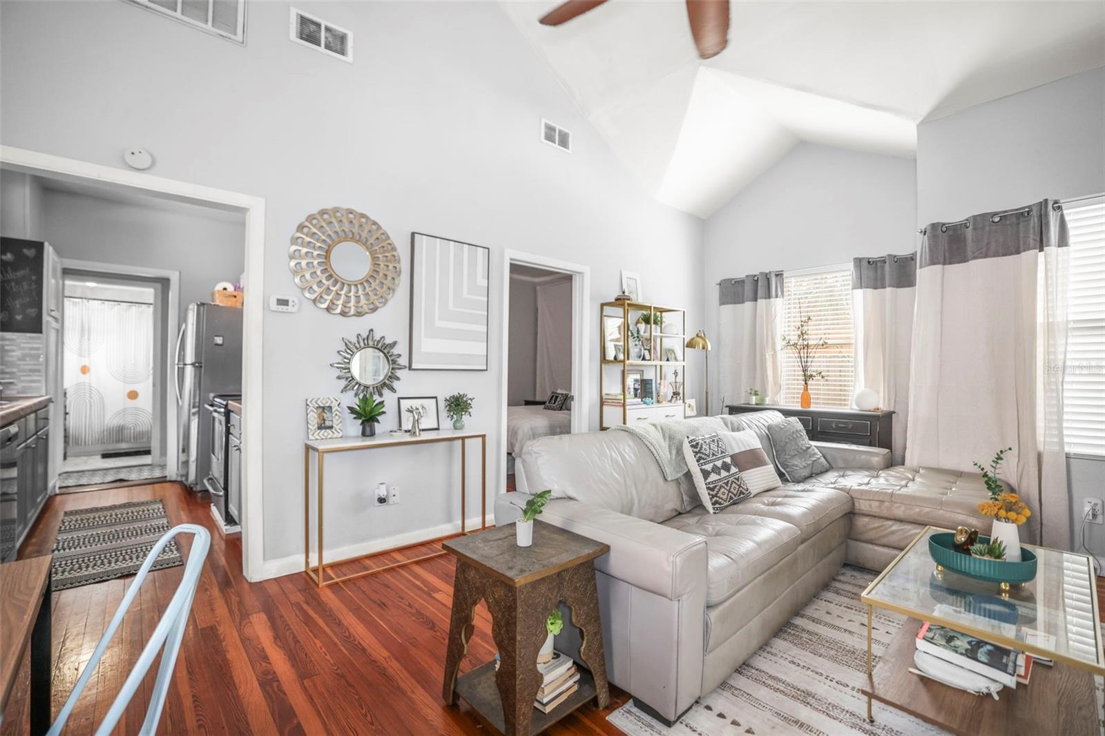 Historic Charm Meets Modern Comfort in the Heart of Kenwood. Step into the timeless appeal of this 1920s home, ideally located in the vibrant and sought-after Historic Kenwood neighborhood. Just a short walk from the Grand Central District, this residence offers the perfect blend of classic architecture and thoughtful updates—all set along picturesque brick streets that define the area’s charm. This 2-bedroom, 1-bath home welcomes you with a bright and spacious Florida room, leading into an open-concept living and dining area framed by vaulted ceilings and original hardwood floors. The kitchen features stainless steel appliances, while the renovated bathroom adds a touch of contemporary comfort to the home’s historic character. An indoor laundry room adds to the home's functionality. Versatile second bedroom includes an upstairs loft space that opens to a private second-story balcony—ideal for morning coffee or evening unwinding. Outside, the property offers low-maintenance living with a small front yard, a fully fenced rear patio area perfect for dining or relaxing, and rare off-street parking for two vehicles. Set in a walkable, bike-friendly, and pet-loving community, you’ll enjoy easy access to nearby restaurants, breweries, dog-friendly venues, art galleries, and everything Central Avenue has to offer. With a strong sense of community and rich architectural history, this home is a rare opportunity to own a piece of one of St. Petersburg’s most beloved neighborhoods.