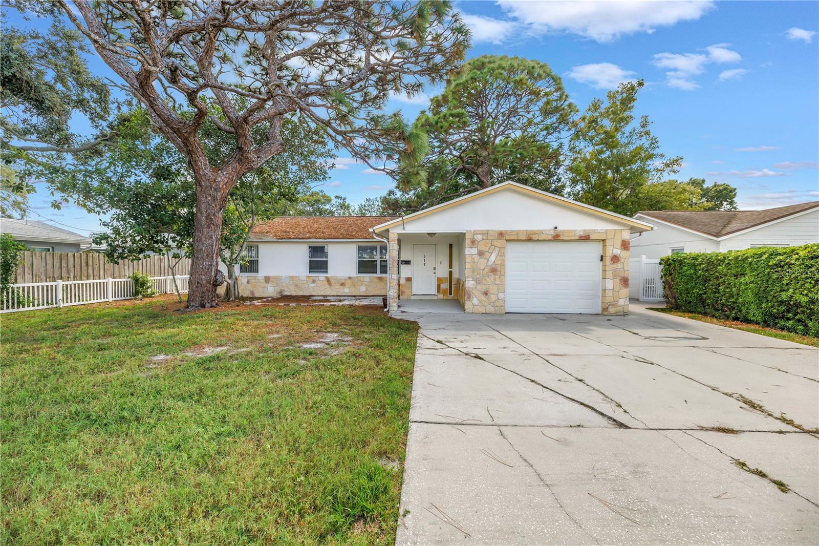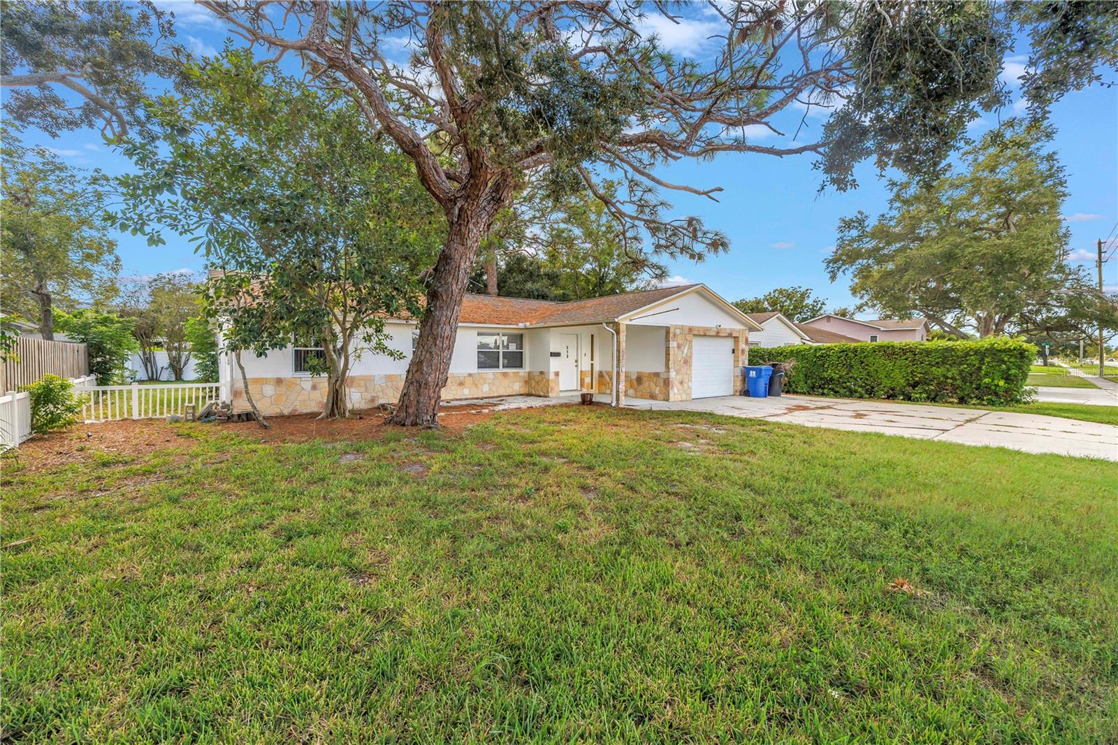 Located in a prime Northeast St. Petersburg neighborhood, this well-maintained concrete block home has been meticulously renovated. Offering 4 bedrooms in a desirable split floor plan—including a private master ensuite—and 2 full bathrooms, this home is ideal for both owner-occupants and investors seeking rental potential. The interior features new luxury vinyl plank tile flooring throughout, beautifully updated kitchen, including a large island, with brand-new stainless steel appliances. The renovated bathrooms feature modern fixtures and contemporary design that enhance the comfort of the space. The spacious layout flows seamlessly for both entertaining and everyday living with bedrooms for the whole family. A large attached one-car garage and oversized driveway provide ample parking, while the huge newly fenced backyard offers endless possibilities for outdoor enjoyment, pets, or future additions. Additional features include a worry-free living of all your big-ticket items including HVAC (2019), Water Heater (2025), Roof (2023) and electrical panel (2025). Situated within walking distance to the YMCA and the new Mangrove Bay middle school and just minutes from vibrant Downtown St. Pete, this home provides easy access to waterfront parks, museums, craft breweries, restaurants, music and sports venues, and the bustling entertainment district. You’re also just down the street from Mangrove Bay and Cypress Links municipal golf courses, close to 4th Street North’s shopping and dining, and near Gateway Mall. With convenient access to both Tampa International and Clearwater Airports, this is a fantastic opportunity in one of St. Pete’s most desirable areas.