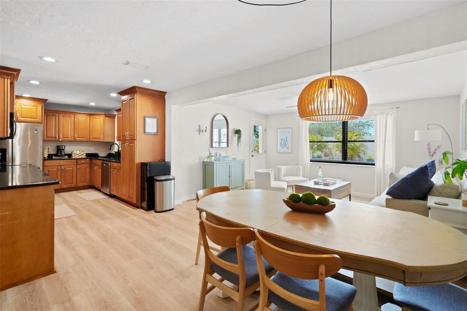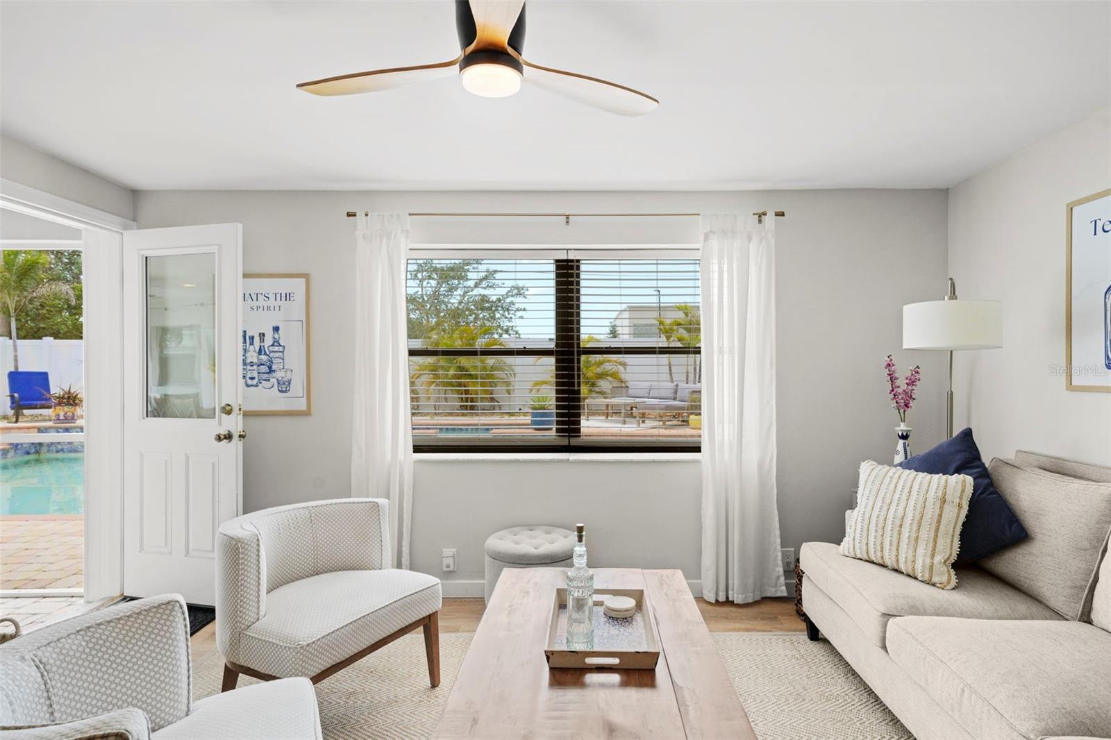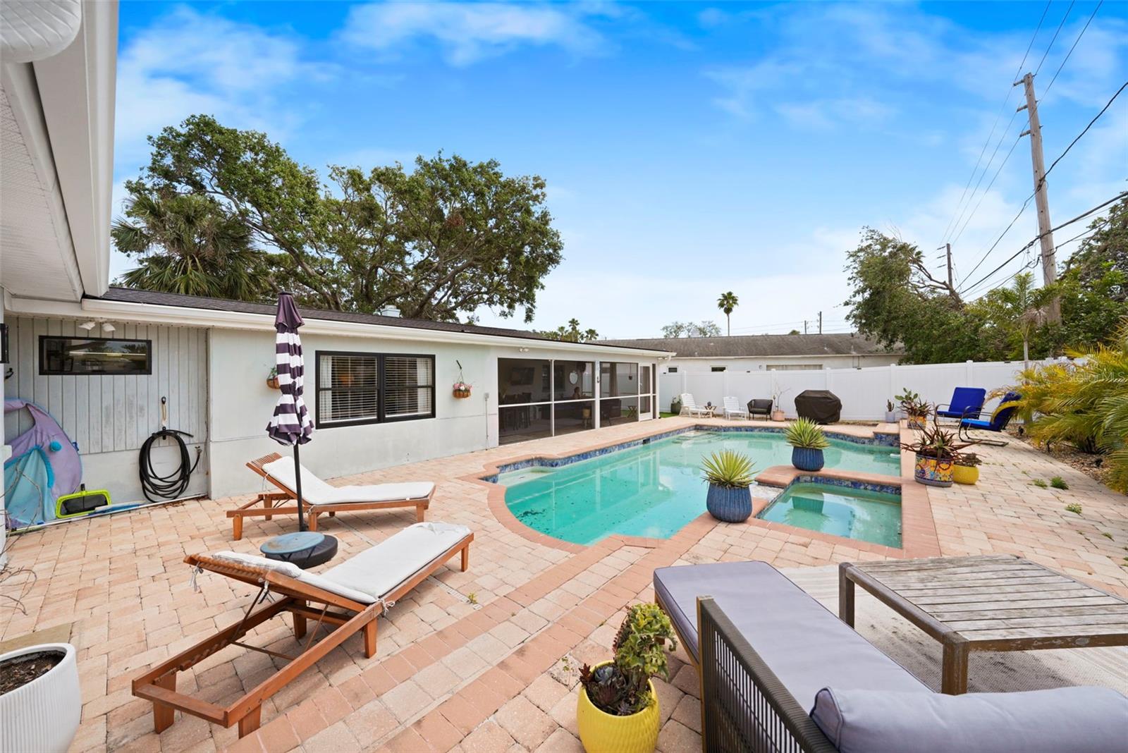 Welcome to a stunning, fully renovated 3-bedroom, 2-bathroom home offering the best of indoor-outdoor Florida living. NOT located in flood zone! This beautifully updated residence features a spacious open floor plan, updated finishes, and a private backyard oasis complete with a sparkling pool and spa. Step inside to find luxury vinyl plank flooring throughout, a sleek, modern kitchen, cabinetry, and stainless steel appliances. The large living and dining areas flow effortlessly, making this home perfect for both entertaining and everyday comfort. The primary suite is your private retreat with a generous en-suite bathroom. Two additional bedrooms and a second full bath offer plenty of space for family, guests, or a home office. Outside, unwind in your own resort-style backyard. Lounge on the patio, take a dip in the pool, or soak in the spa after a long day – all surrounded by tropical landscaping, turf putting green and privacy fencing. Take advantage of the large out house and turn it into a home office, gym, extra storage, or pool bathroom, the opportunity is endless. Other highlights include: New roof, luxury vinyl through the entire home, new paint both bathrooms redone, new vinyl fence, new turf, new pool filter, new AC fan and new ductwork giving you peace of mind and energy efficiency. Centrally located just minutes from shopping, dining, downtown St. Pete, and the beaches. This move-in-ready home has it all – style, comfort, and a location that can’t be beat. Don’t miss your chance to own this St. Pete gem – schedule your private tour today! One photo virtually staged.