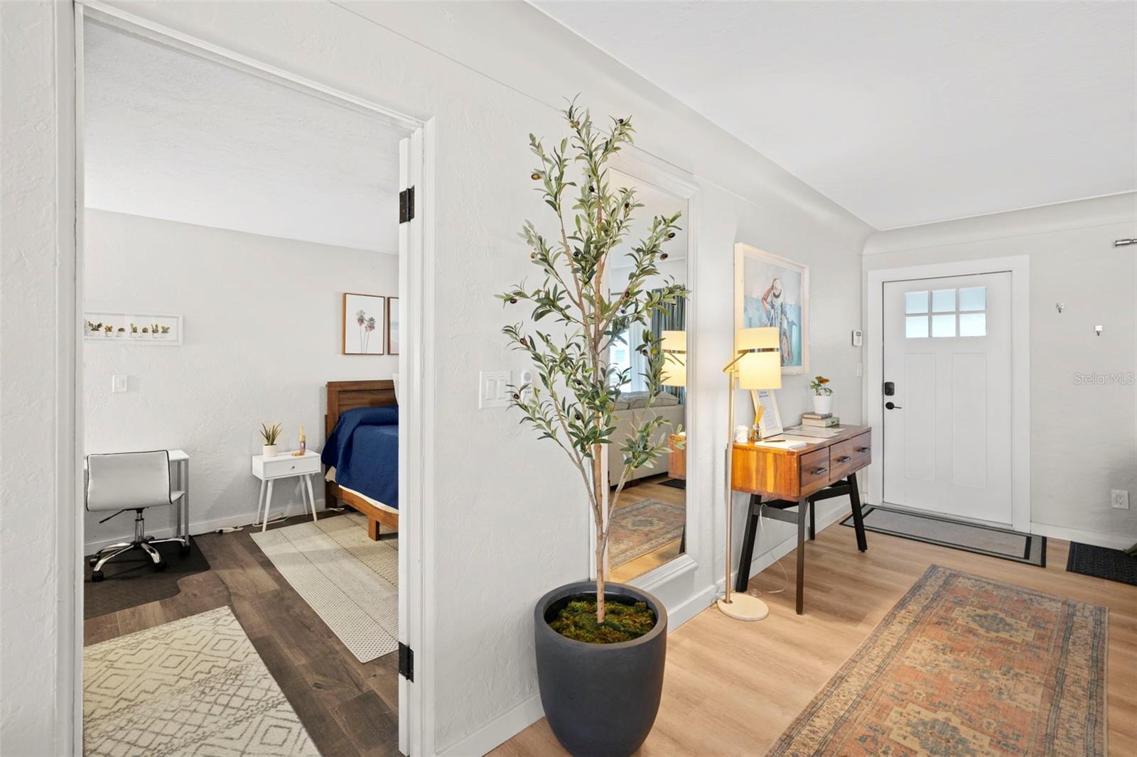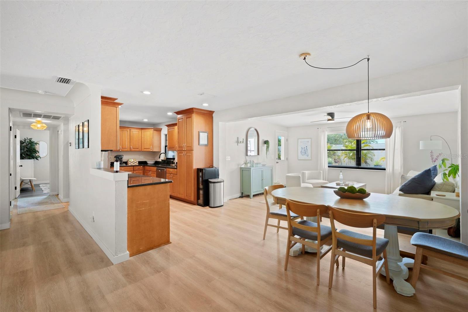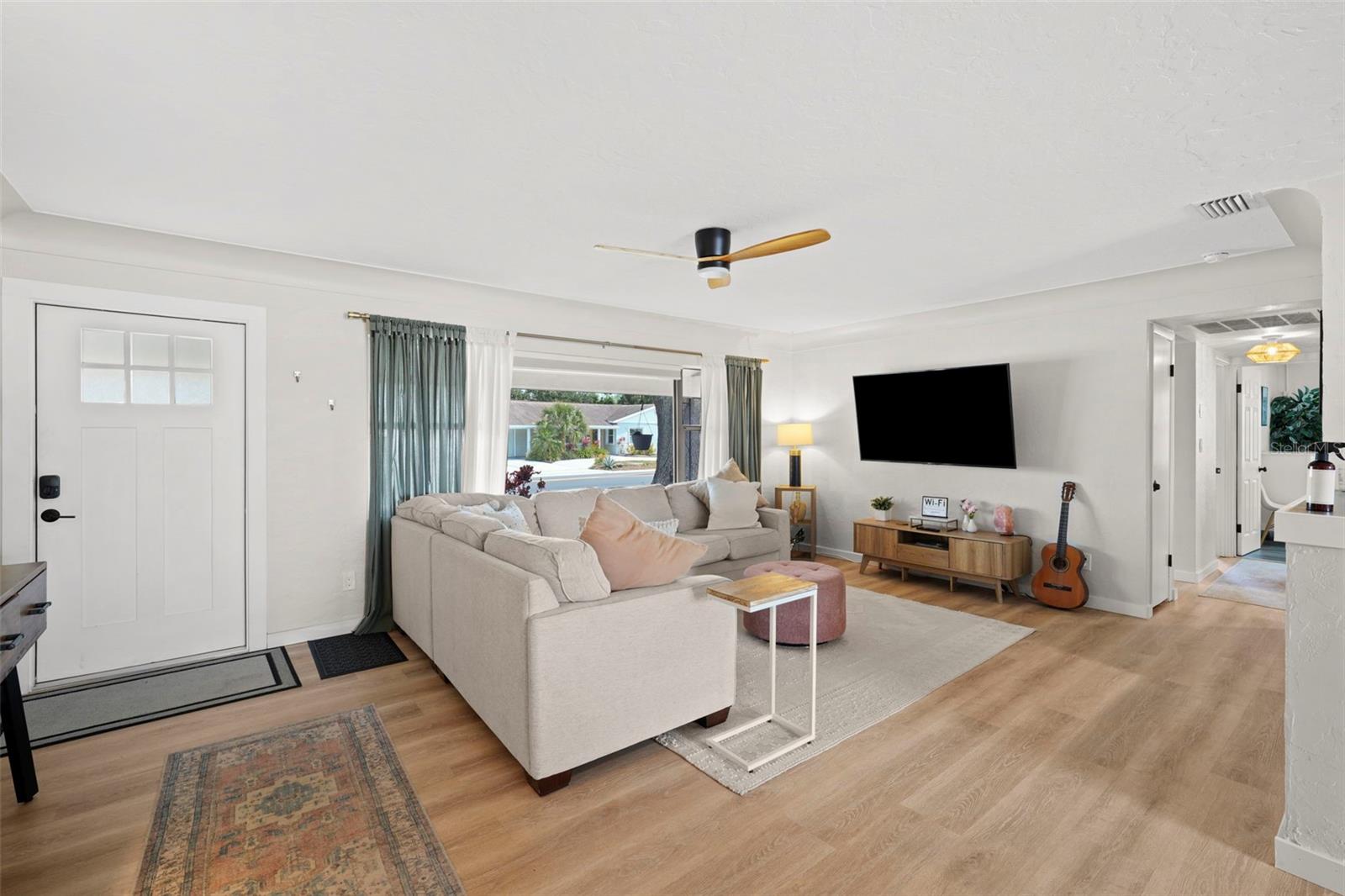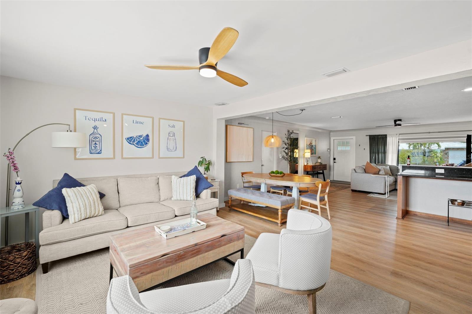 Welcome to a stunning, fully renovated 3-bedroom, 2-bathroom home offering the best of indoor-outdoor Florida living. NOT located in flood zone! This beautifully updated residence features a spacious open floor plan, updated finishes, and a private backyard oasis complete with a sparkling pool and spa. Step inside to find luxury vinyl plank flooring throughout, a sleek, modern kitchen, cabinetry, and stainless steel appliances. The large living and dining areas flow effortlessly, making this home perfect for both entertaining and everyday comfort. The primary suite is your private retreat with a generous en-suite bathroom. Two additional bedrooms and a second full bath offer plenty of space for family, guests, or a home office. Outside, unwind in your own resort-style backyard. Lounge on the patio, take a dip in the pool, or soak in the spa after a long day – all surrounded by tropical landscaping, turf putting green and privacy fencing. Take advantage of the large out house and turn it into a home office, gym, extra storage, or pool bathroom, the opportunity is endless. Other highlights include: New roof, luxury vinyl through the entire home, new paint both bathrooms redone, new vinyl fence, new turf, new pool filter, new AC fan and new ductwork giving you peace of mind and energy efficiency. Centrally located just minutes from shopping, dining, downtown St. Pete, and the beaches. This move-in-ready home has it all – style, comfort, and a location that can’t be beat. Don’t miss your chance to own this St. Pete gem – schedule your private tour today! One photo virtually staged.