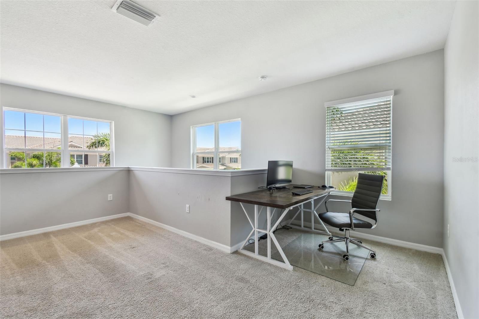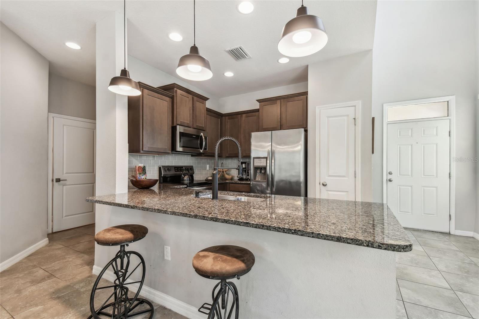 SELLER WILLING TO BUY DOWN INTEREST RATE OR PAY SOME CLOSING COST! Discover the perfect fusion of modern elegance and comfort in this fabulous end-unit townhome, built in 2018. Constructed with durable concrete block on both levels and topped with a tile roof, this residence promises energy efficiency and enduring quality, complemented by the advantage of low insurance costs (current homeowner insurance is just $1,580). Recently refreshed with an exterior paint upgrade that includes a 10-year warranty, this home stands strong in a non-flood zone, having withstood the 2024 hurricane season without any storm damage or power disruptions. Step inside to an inviting open floor plan, where natural light streams through an abundance of windows, illuminating every corner. The kitchen features granite countertops, stainless steel appliances, and stylish pendant lighting above the breakfast bar. The owner's suite, conveniently located on the first floor, offers a tranquil retreat with a spa-like bathroom, custom barn door, and a spacious walk-in closet. The first floor also houses a half bath, a laundry room (with washer and dryer included), and more. Venture upstairs to find an expansive loft, perfect for a bonus room or home office. Two additional generous bedrooms feature spacious walk-in closets and share a full bathroom, providing ample space for family or guests. Nestled within a gated community of approximately 130 homes, residents have access to a resort-style pool and pavilion, ideal for social gatherings and relaxation. Conveniently located just minutes from downtown, this home offers easy access to top dining, shopping, major highways, and is a short walk to popular spots like Metro Diner, Red Mesa, Bonefish Grill, Starbucks, and more. Embrace the essence of "home" in this beautifully designed townhome, where modern style meets everyday comfort.