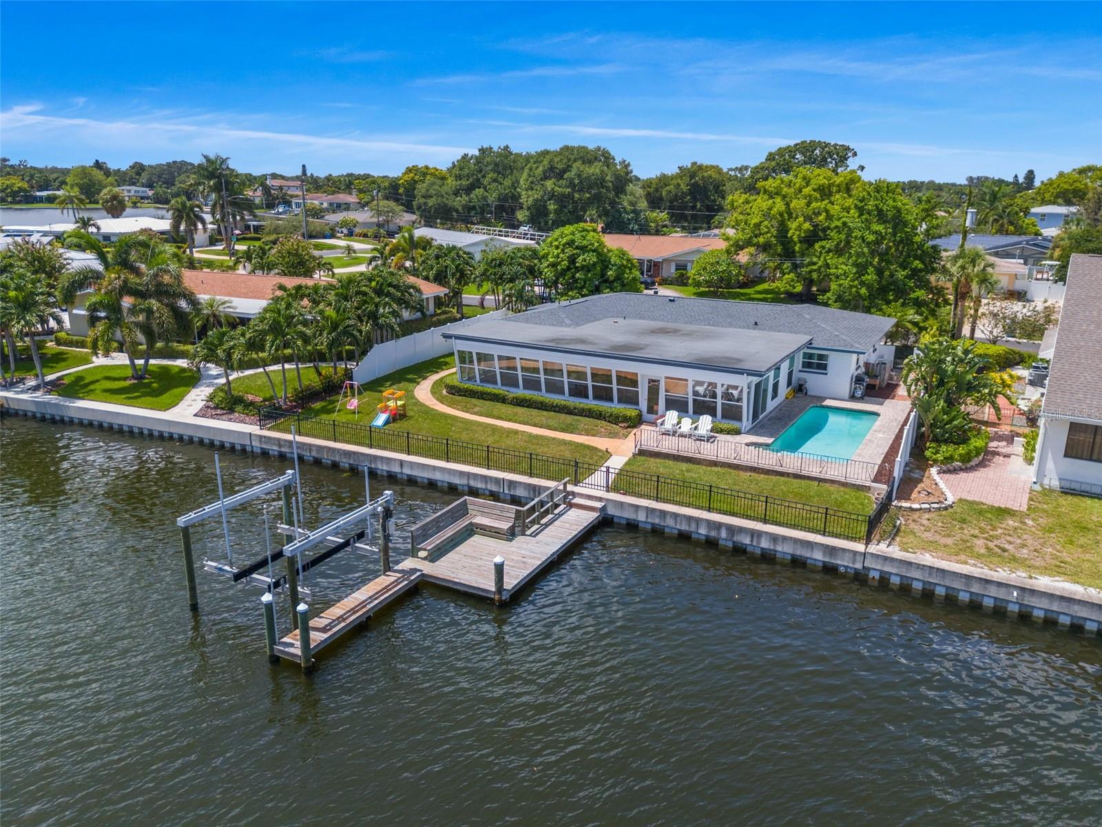 Welcome to 1124 35th Avenue Northeast in St. Petersburg, FL. This modern and casually elegant property offers an unparalleled waterfront lifestyle with 82 feet of water frontage on Smack's Bayou. This renovated ranch-style home features a split floor plan and boasts 3 bedrooms and 2 bathrooms, plus an office, dining space, formal living, family room, and an oversized sun room adding just over 560 sf of living space. Additional upgrades include, a fully remodeled primary bed and bath in 2022, a new roof (2024), all new plumbing (2021), and an HVAC system replaced in 2023. The home also features luxury vinyl flooring throughout as well as propane gas used for the inside range and tankless water heater, two car garage with laundry and extra storage, plus a circular drive. In addition to the Florida room, outside you will find a swimming pool, completely fenced in yard, boat dock (2010), 13k lb boat lift (2020), newer concrete seawall, brick paver patio, views of Smack's Bayou, and unobstructed boating access to Tampa Bay. With a total square footage of 1,965 and a generous lot size of 9,679 square feet, or just under a quarter acre, this property also presents an opportunity to build your own custom waterfront home. Don't miss this rare opportunity to own a piece of waterfront in St. Petersburg. Located in Old NE Park Shores on a private cul-de-sac, you are less than 4 miles to the St. Pete Pier and all that downtown St. Pete has to offer.