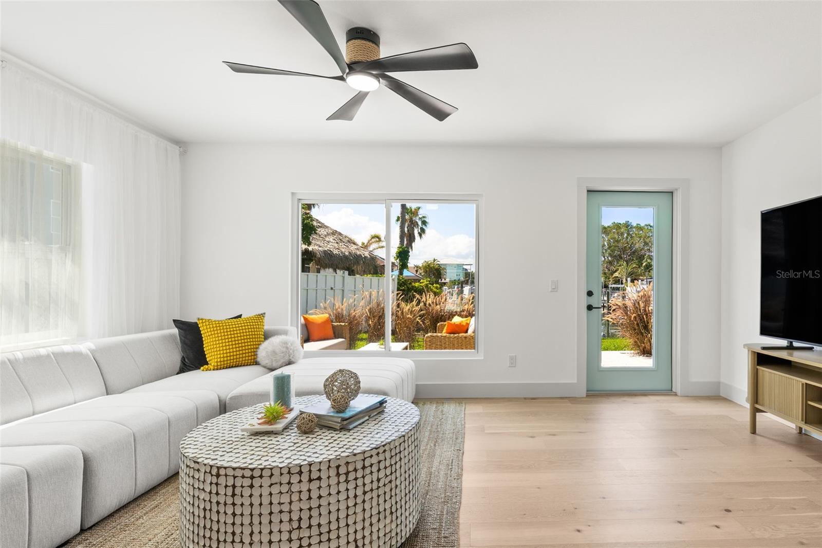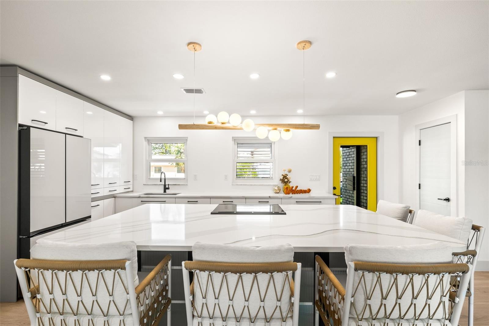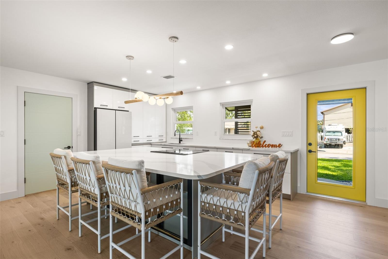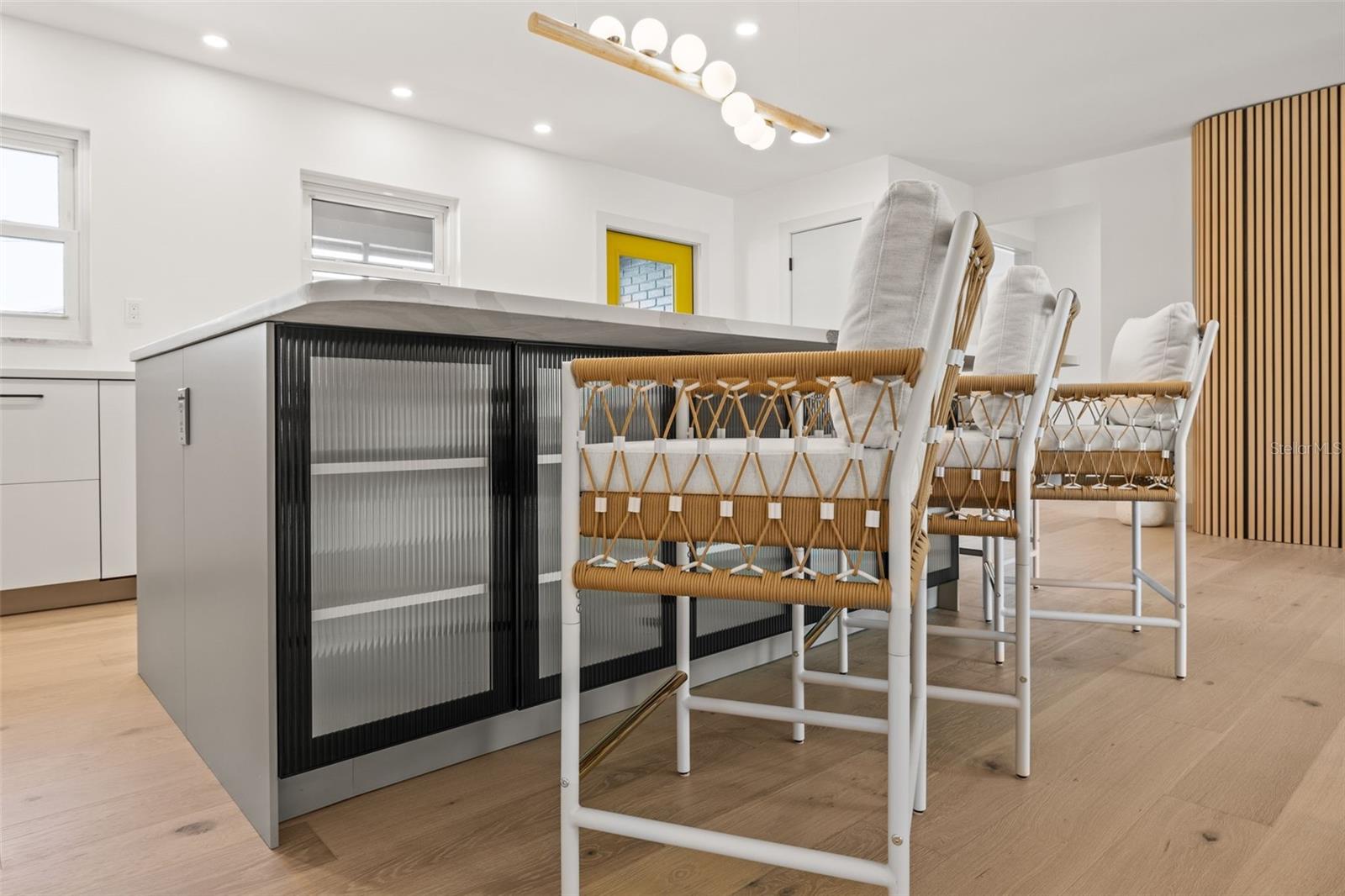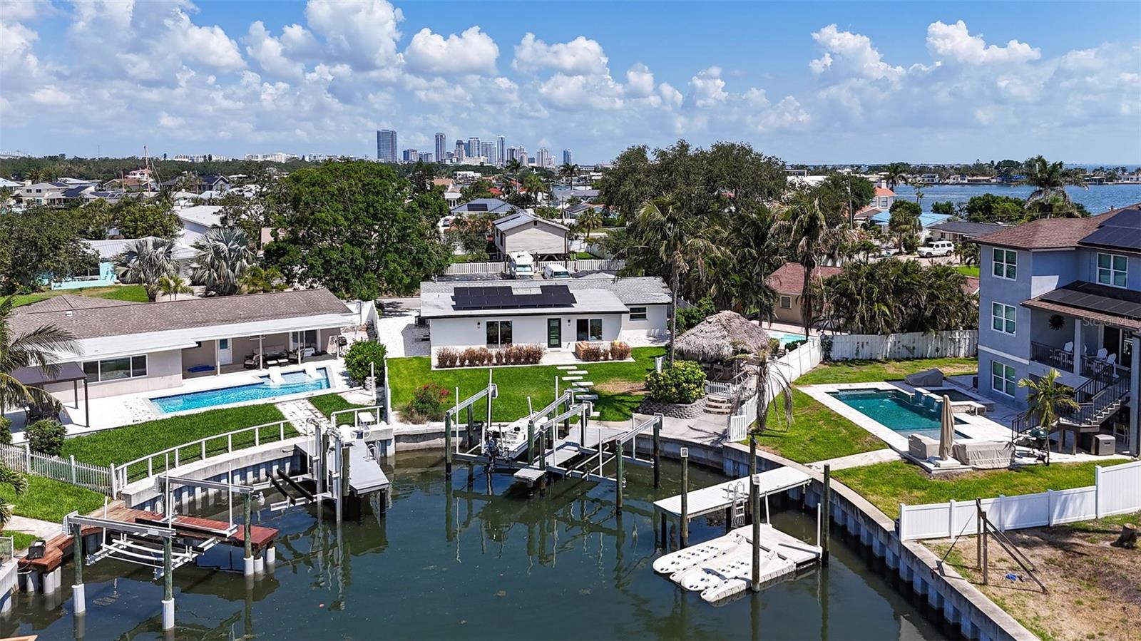 Step inside and smile! Your waterfront dream home awaits. Perfectly positioned on the island of Coquina Key, just 8 minutes from Downtown St. Petersburg, this fully renovated 3-bedroom, 2-bath home pairs elevated design with turnkey peace of mind. The heart of the home is the chef-inspired kitchen, featuring striking Calacatta Gold Quartz countertops, custom lacquered cabinetry, a massive island, and a suite of Samsung Bespoke Smart appliances ready to make every meal memorable. The living area features a custom entertainment wall, complete with a 170-bottle wine fridge and LED fireplace—adding both style and warmth. The split-bedroom layout offers privacy and space for everyone! The primary suite serves as a calming retreat with a spa-like bathroom, generous walk-in closet, and peaceful water views. Out back, the waterfront lifestyle truly shines. Enjoy your private backyard with a fully capped seawall, and a 16,000 lb boat lift—perfect for sunset cruising or weekend adventures on the water. The landscape is beautiful which makes every day feel like a vacation. This home also offers a long list of upgrades you’ll love: a fully paid solar panel system for long-term energy savings, a brand-new HVAC system with smart thermostat and all-new ductwork, fully updated electrical and plumbing systems (to the meter, with inspected waste lines), a Rheem Hybrid Smart 50-gallon water heater with heat pump technology, and new insulation throughout for enhanced energy efficiency. The 2012 roof comes with a current roof certification and is in excellent condition. Additional highlights include a reclaimed irrigation system for low-maintenance landscaping, an automatic garage door, ceiling fans with remote controls in all bedrooms and main living areas, and a dedicated indoor laundry room with upgraded utility access. Location perks include: 8 minutes to Downtown St. Pete featuring renowned dining and shopping destinations, 6 minutes to Lassing Park, 5 minutes to local shops and dining, 20 minutes to St. Pete Beach, and walking distance to Coquina Key Park, offering tennis, pickleball, soccer fields, and a dog park. This is a rare opportunity to own modern luxury with water in your backyard and the city at your fingertips. This home was not flooded this past hurricane season and has no history of flooding.