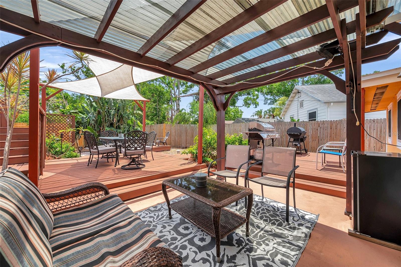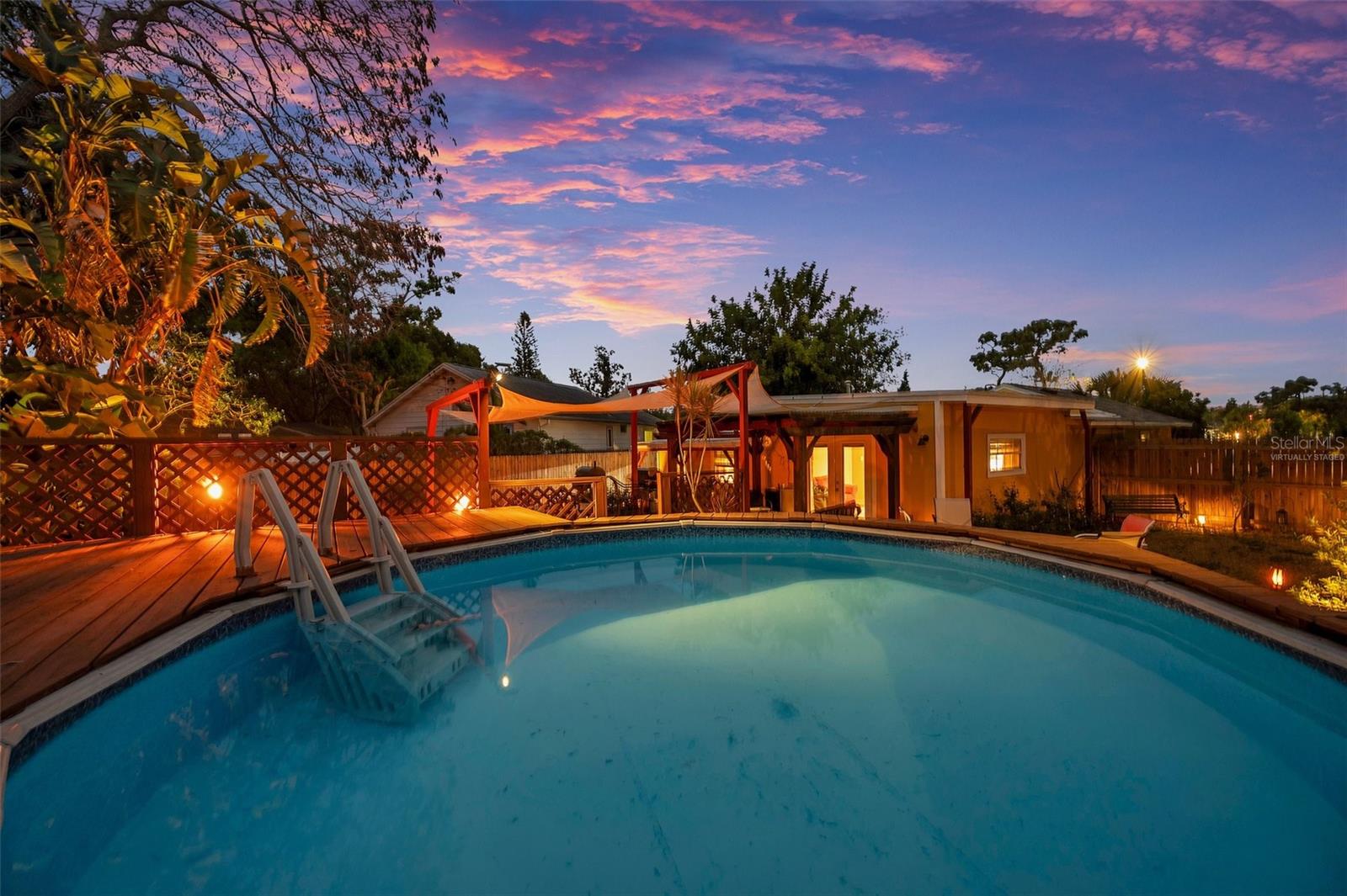 PRICED TO SELL! – FURNISHED BACKYARD OASIS IN KENWOOD | This is the one. Fully furnished, upgraded, and priced to sell—this 3-bed, 2-bath pool home in the heart of Kenwood is a rare find on a massive 10,500 sq ft lot. Whether you’re looking for your personal retreat, an income-producing rental, or a move-in-ready seasonal home, this checks every box. Step inside to a bright and welcoming open-concept layout with rich cherry-engineered flooring, modern finishes, and thoughtful updates throughout. The kitchen features matching cabinetry and plenty of storage—perfect for hosting or everyday living. But the real showstopper is outside. French doors lead to your private backyard oasis—a fully loaded entertainer’s dream. You’ll find a brand-new above-ground pool (2025), multi-level deck, pergola, grill, smoker, fire pit with seating, tropical landscaping, and privacy fencing. It even has a shed/workshop with potential for a pool bath or creative studio. Upgrades include: ? Brand new AC (2024) w/ 5-year warranty ? Solar panels – no electric bill ? New windows, appliances, bedroom flooring, and counters (2025) ? Reflective “cool roof” coating & R-41 attic insulation ? New privacy fence (2024) ? Routine pest service & no hurricane damage ? $10K+ in furnishings, tools, appliances INCLUDED Keep the furniture or not—it’s your call. The driveway fits 6+ cars and has space to add a garage. All major systems have been updated and meticulously maintained for peace of mind. All this just 10 minutes from downtown St. Pete, 15 minutes to the beach, and 30 minutes to Tampa. Space. Style. Location. Lifestyle. Stop scrolling and come see it—this one won’t last!