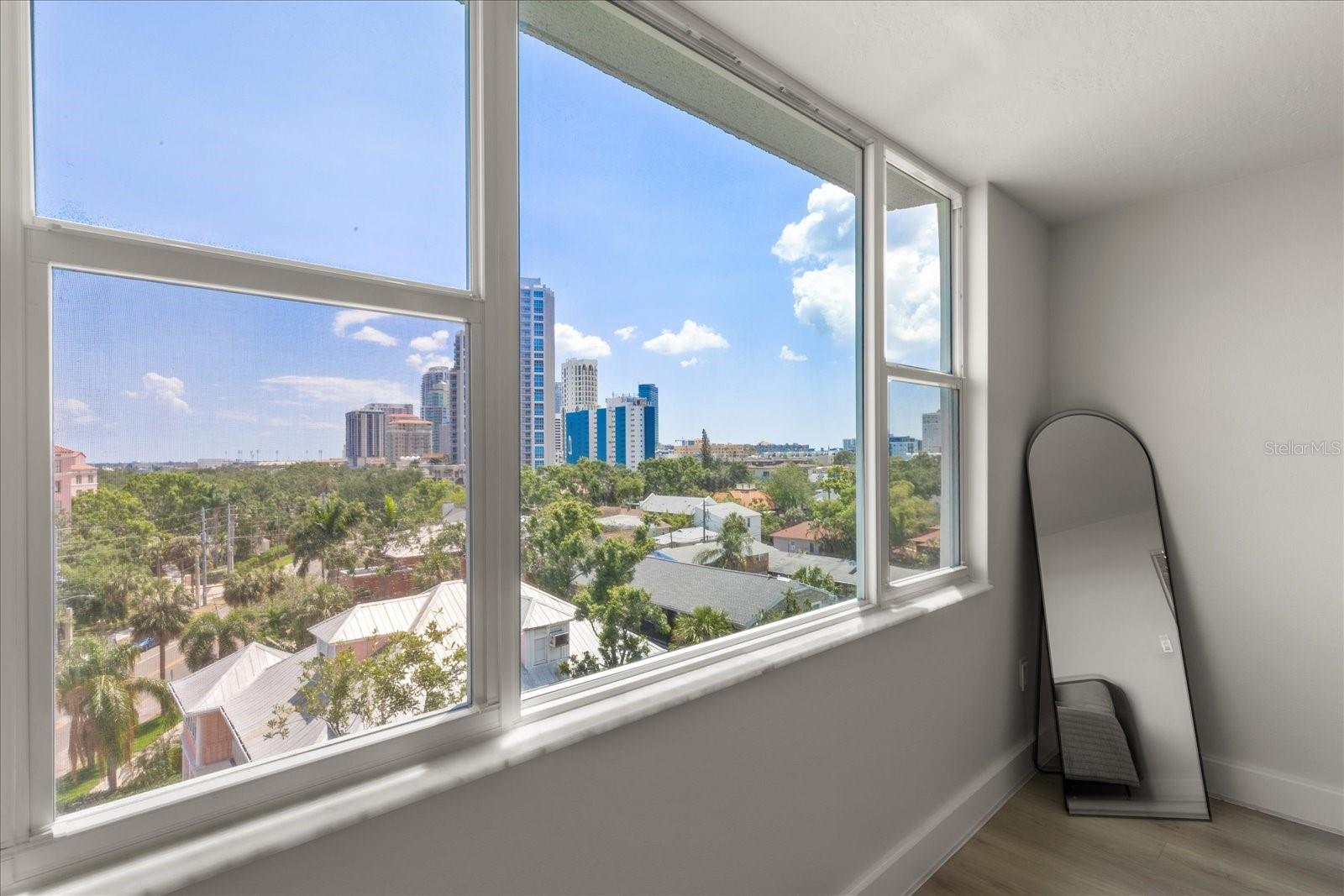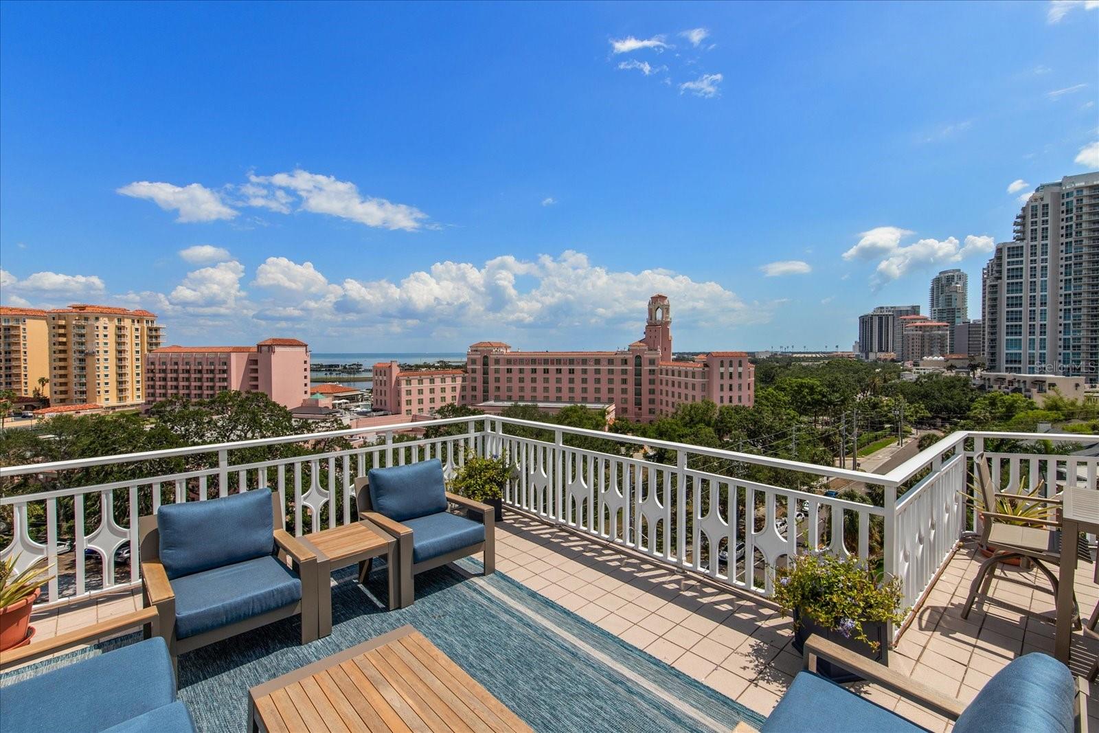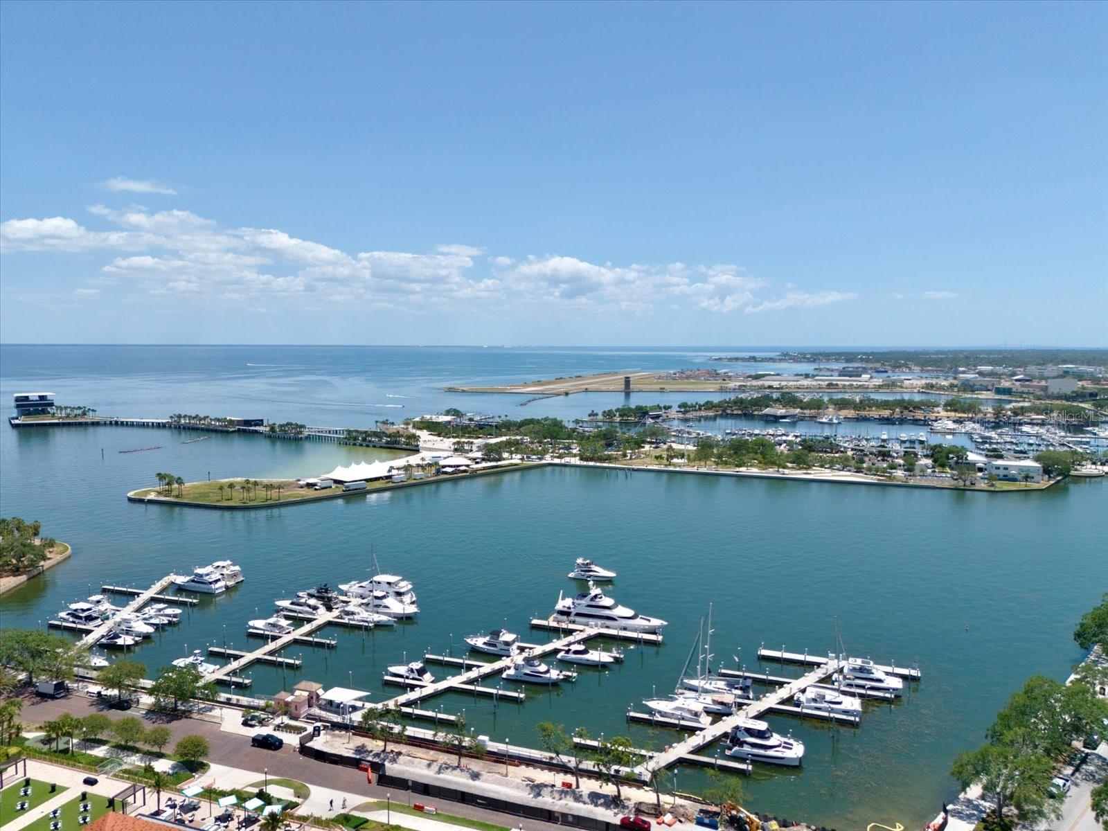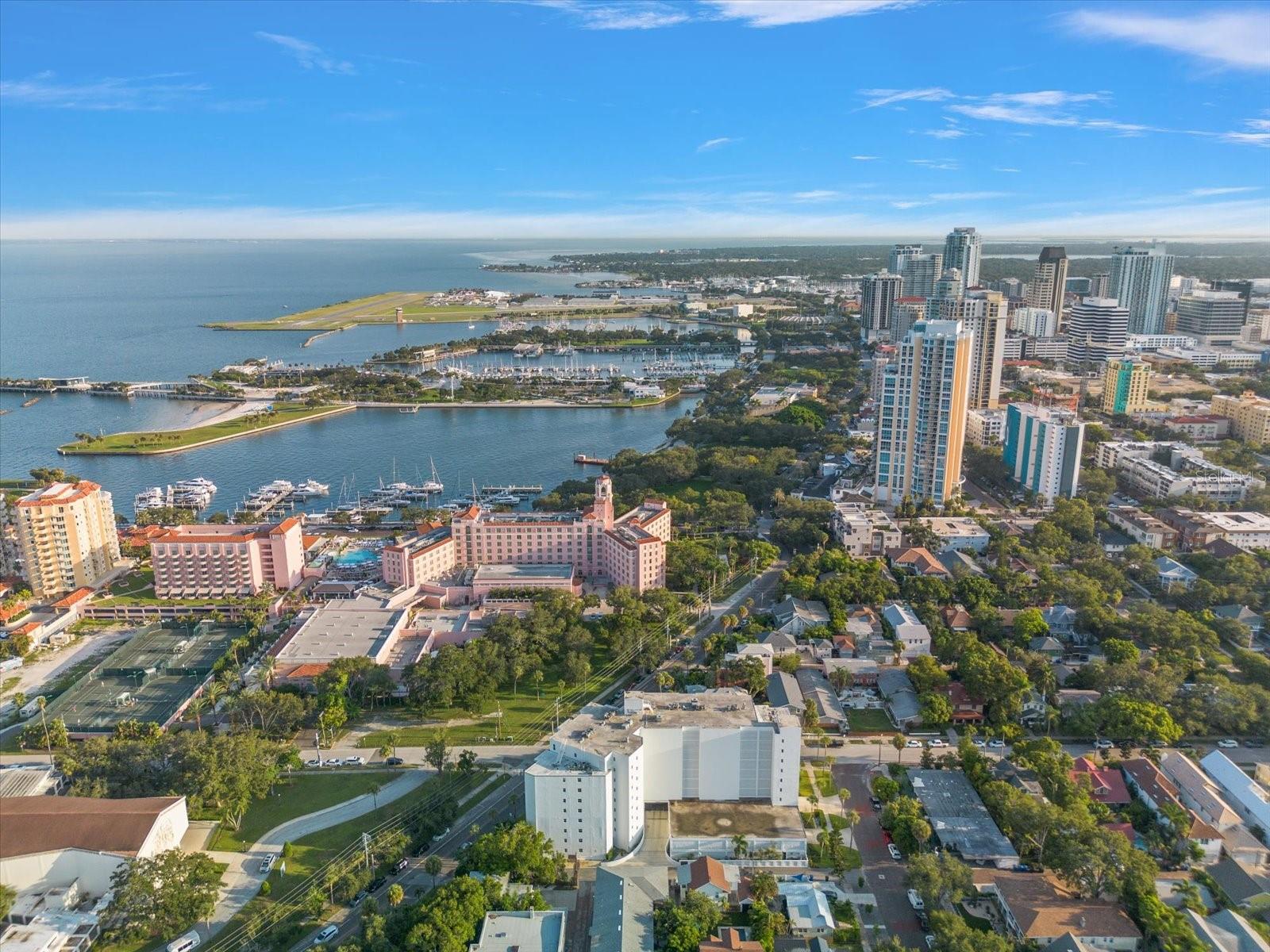 ABSOLUTELY SWEEPING DAY AND STUNNING BREATHTAKING NIGHT VIEWS! Enjoy the wide open city views of downtown St Petersburg and Tampa Bay plus the night views of thousands of lights from every room in this seventh floor condo on sought after Beach Drive location in the wonderful 55+ Harbor Hill Complex. This unit has been completely remodeled with exquiste decorator touches throughout. The spacious wide open floor plan allows easy furniture placement and wonderful entertaining opportunties. The unit is ehanced with Luxury Vinyl Plank Flooring and new wafer can LED lighting, 6 inch baseboards, doors and retextured ceiling and walls thourghout. The Kitchen has oodles of raised paneled soft close cabinets complete with two corner lazy susans and a pull out spice rack, gleaming quartz countertops and backsplash plus a large breakfast bar for informal eating. The stainless steel top-of-the-line Frigerdaire Gallery appliances will surely please the fussiest of chefs. The extra spacious bedroom has a bank of hurricane rated Impact windows with awesome views and a custom designed walk in closet. The bathroom has been fully renovated with decorator vanity, commode and outstanding tile shower with roller glass enclosure. Just imagine sitting on your your prvate balcony sipping your favorite morning or evening beverage and watching awesome sunrises and evening moonrises! Included is a one car covered space in the gated covered garage, steps from a private entrance to the elevator and also included is a floor to ceiling storage closet right outside your door. The laundry room is just around the corner on the same floor. The 9th Floor Harbor Community Room is outstanding and has been beautifully remodeled. has an outstanding huge patio area with city and water views and boasts many social activities. So many amenities are within walking distance, Northshore Park & Pool, restaurants, shopping, museums and all the downtown happenings! The building is well managed, well funded and well maintaned and has a on-site property manager. Milestone Report has been completed and no assesmments. Don't delay, Call today and treat yourself to the Downtown Lifestyle!