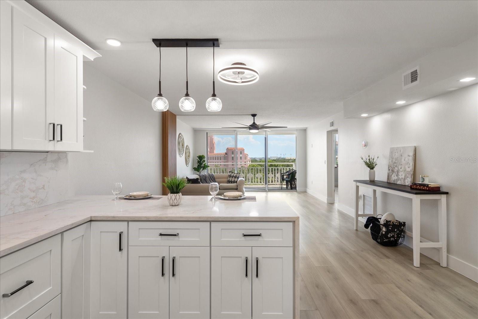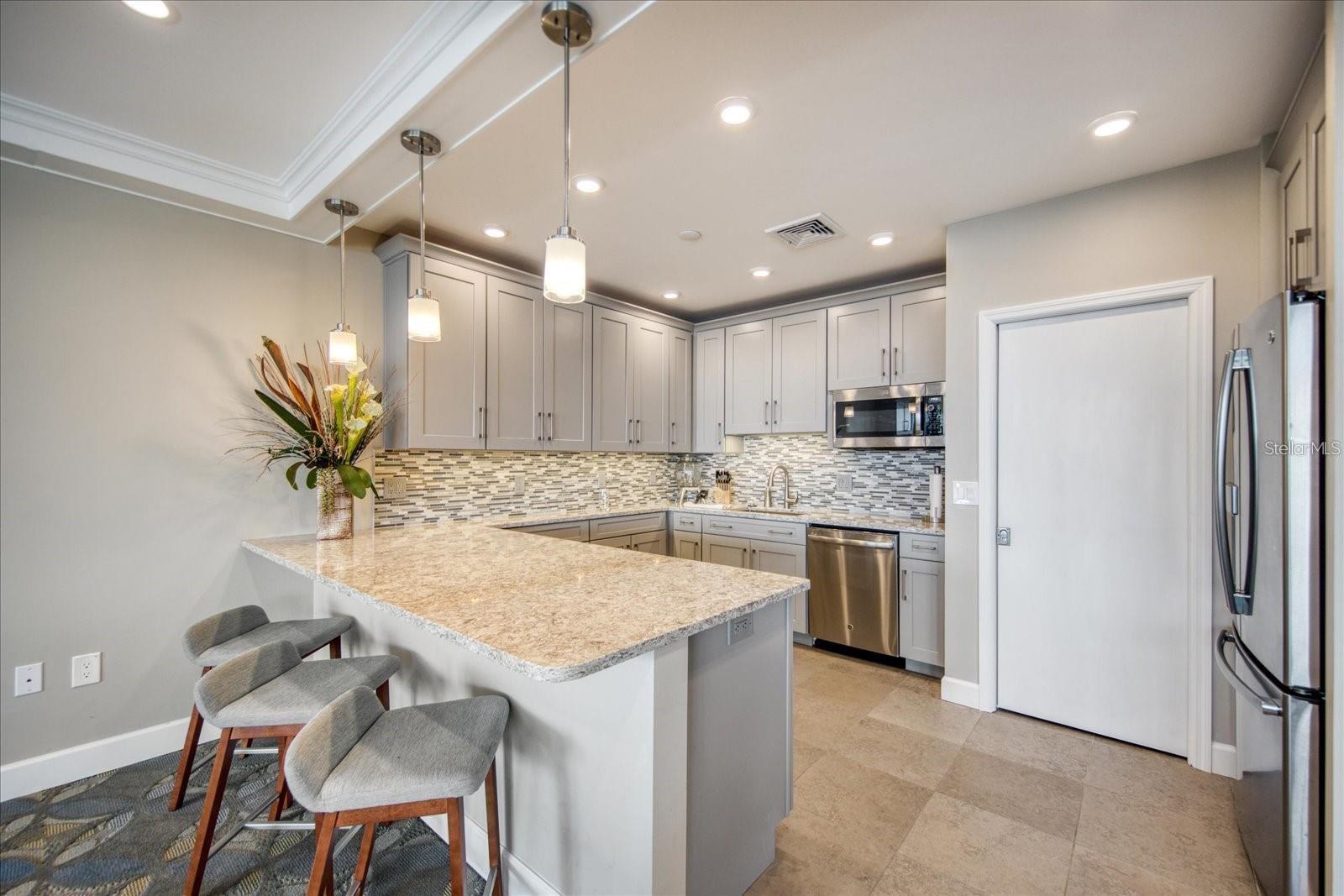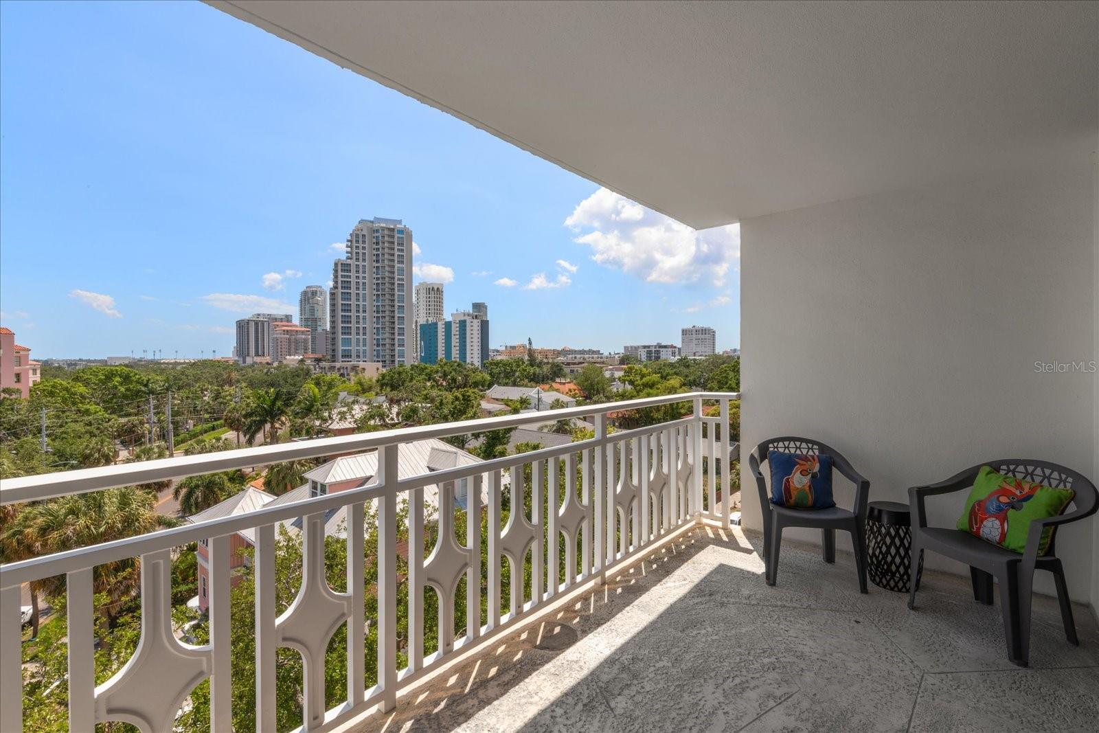 ABSOLUTELY SWEEPING DAY AND STUNNING BREATHTAKING NIGHT VIEWS! Enjoy the wide open city views of downtown St Petersburg and Tampa Bay plus the night views of thousands of lights from every room in this seventh floor condo on sought after Beach Drive location in the wonderful 55+ Harbor Hill Complex. This unit has been completely remodeled with exquiste decorator touches throughout. The spacious wide open floor plan allows easy furniture placement and wonderful entertaining opportunties. The unit is ehanced with Luxury Vinyl Plank Flooring and new wafer can LED lighting, 6 inch baseboards, doors and retextured ceiling and walls thourghout. The Kitchen has oodles of raised paneled soft close cabinets complete with two corner lazy susans and a pull out spice rack, gleaming quartz countertops and backsplash plus a large breakfast bar for informal eating. The stainless steel top-of-the-line Frigerdaire Gallery appliances will surely please the fussiest of chefs. The extra spacious bedroom has a bank of hurricane rated Impact windows with awesome views and a custom designed walk in closet. The bathroom has been fully renovated with decorator vanity, commode and outstanding tile shower with roller glass enclosure. Just imagine sitting on your your prvate balcony sipping your favorite morning or evening beverage and watching awesome sunrises and evening moonrises! Included is a one car covered space in the gated covered garage, steps from a private entrance to the elevator and also included is a floor to ceiling storage closet right outside your door. The laundry room is just around the corner on the same floor. The 9th Floor Harbor Community Room is outstanding and has been beautifully remodeled. has an outstanding huge patio area with city and water views and boasts many social activities. So many amenities are within walking distance, Northshore Park & Pool, restaurants, shopping, museums and all the downtown happenings! The building is well managed, well funded and well maintaned and has a on-site property manager. Milestone Report has been completed and no assesmments. Don't delay, Call today and treat yourself to the Downtown Lifestyle!