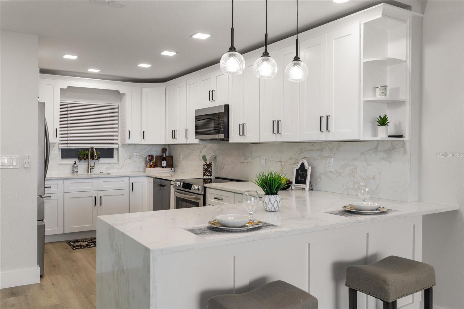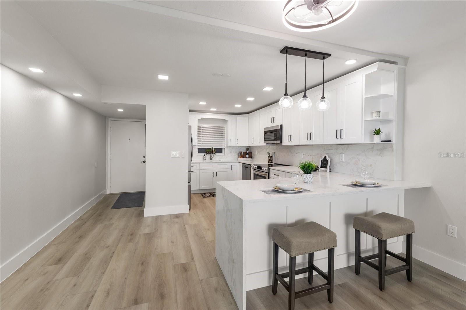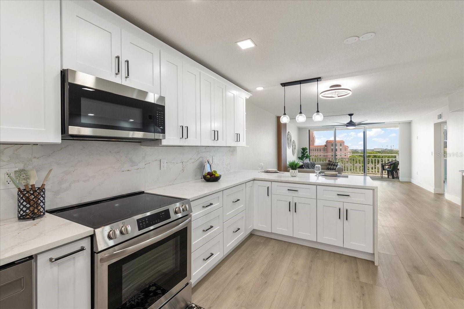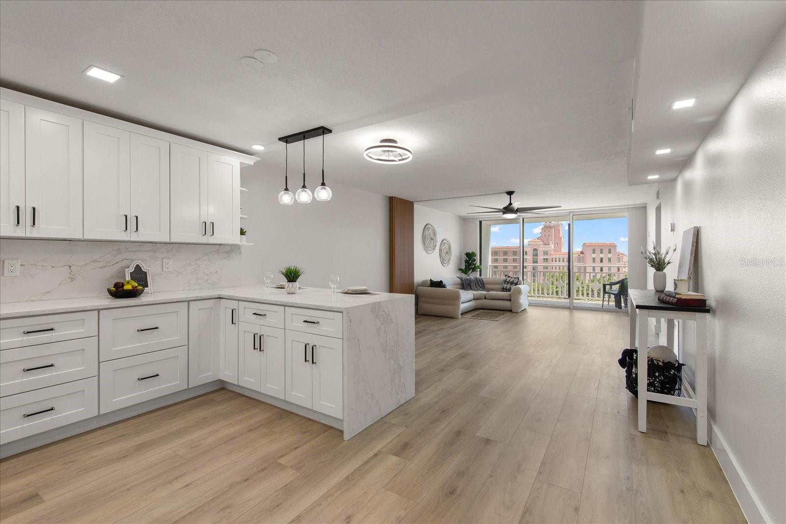 ABSOLUTELY SWEEPING DAY AND STUNNING BREATHTAKING NIGHT VIEWS! Enjoy the wide open city views of downtown St Petersburg and Tampa Bay plus the night views of thousands of lights from every room in this seventh floor condo on sought after Beach Drive location in the wonderful 55+ Harbor Hill Complex. This unit has been completely remodeled with exquiste decorator touches throughout. The spacious wide open floor plan allows easy furniture placement and wonderful entertaining opportunties. The unit is ehanced with Luxury Vinyl Plank Flooring and new wafer can LED lighting, 6 inch baseboards, doors and retextured ceiling and walls thourghout. The Kitchen has oodles of raised paneled soft close cabinets complete with two corner lazy susans and a pull out spice rack, gleaming quartz countertops and backsplash plus a large breakfast bar for informal eating. The stainless steel top-of-the-line Frigerdaire Gallery appliances will surely please the fussiest of chefs. The extra spacious bedroom has a bank of hurricane rated Impact windows with awesome views and a custom designed walk in closet. The bathroom has been fully renovated with decorator vanity, commode and outstanding tile shower with roller glass enclosure. Just imagine sitting on your your prvate balcony sipping your favorite morning or evening beverage and watching awesome sunrises and evening moonrises! Included is a one car covered space in the gated covered garage, steps from a private entrance to the elevator and also included is a floor to ceiling storage closet right outside your door. The laundry room is just around the corner on the same floor. The 9th Floor Harbor Community Room is outstanding and has been beautifully remodeled. has an outstanding huge patio area with city and water views and boasts many social activities. So many amenities are within walking distance, Northshore Park & Pool, restaurants, shopping, museums and all the downtown happenings! The building is well managed, well funded and well maintaned and has a on-site property manager. Milestone Report has been completed and no assesmments. Don't delay, Call today and treat yourself to the Downtown Lifestyle!