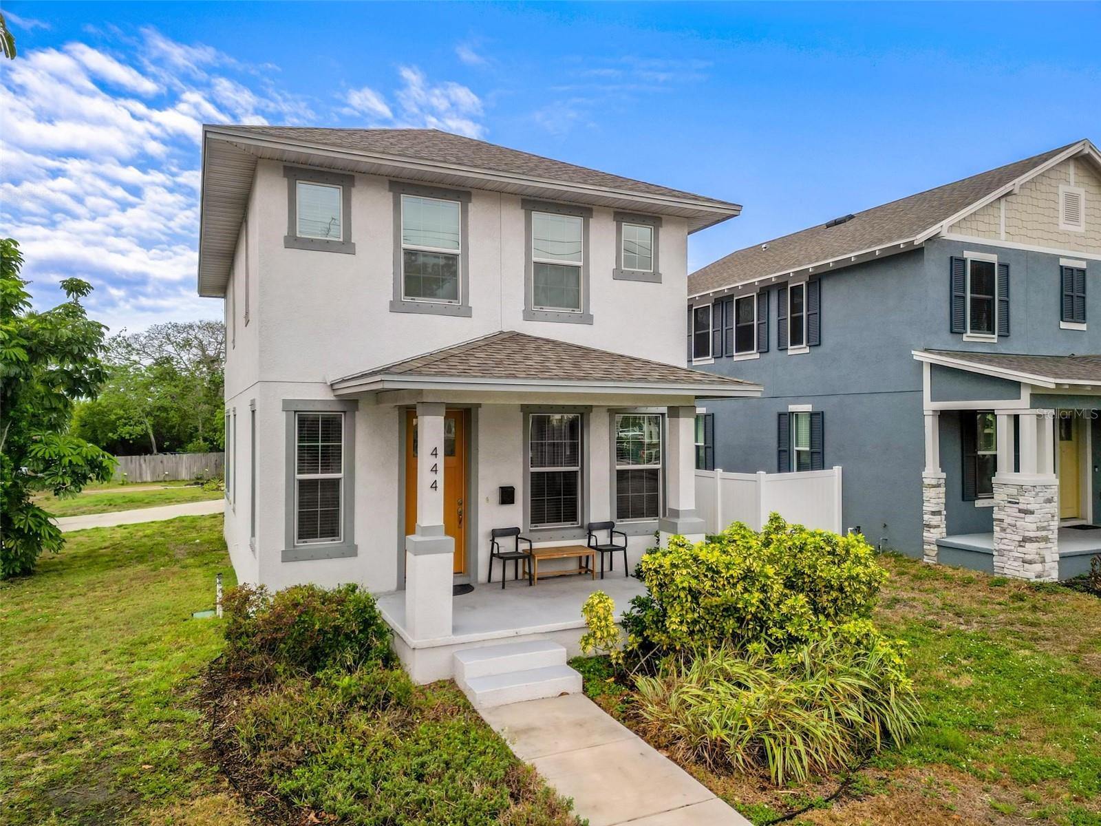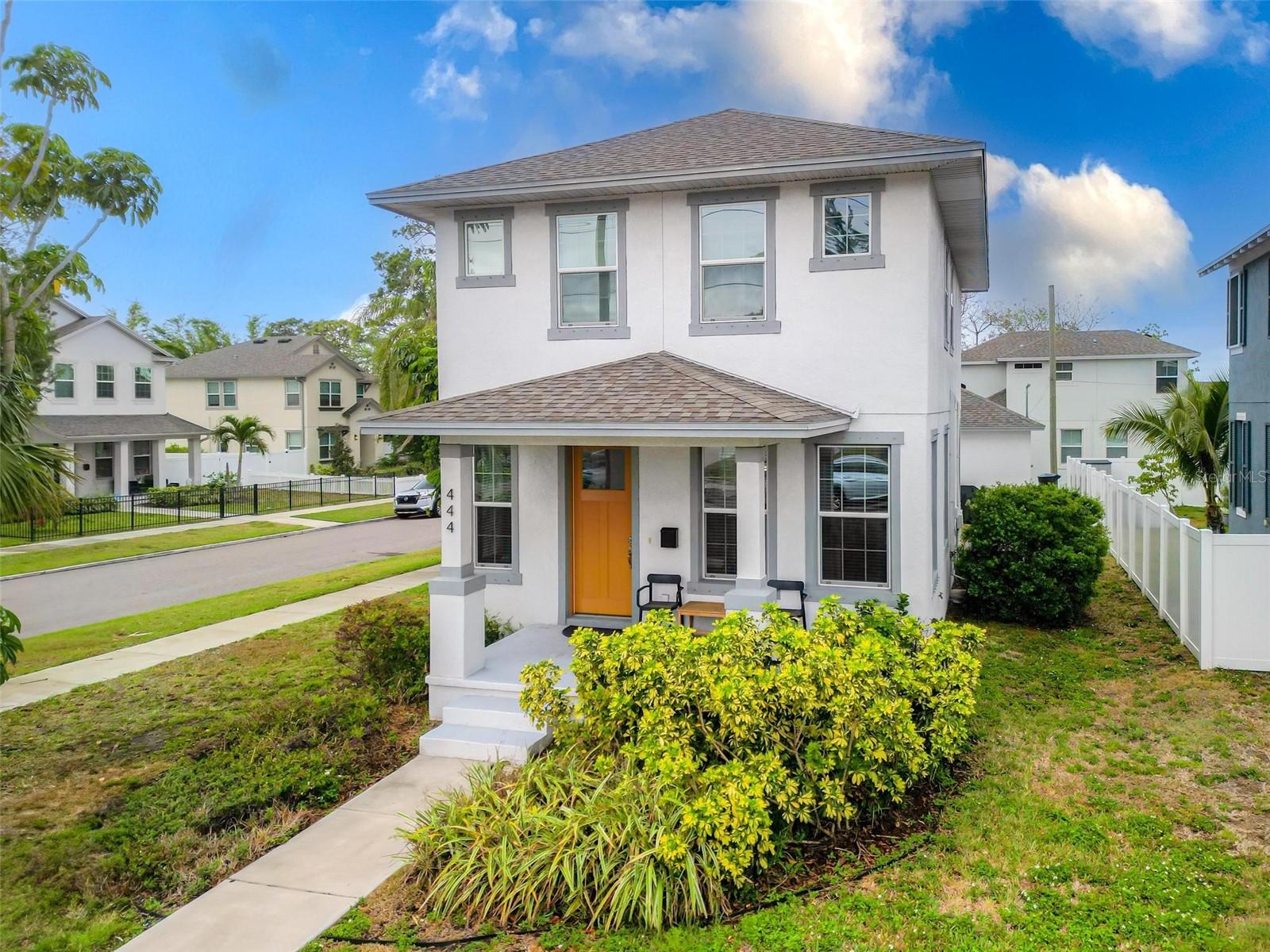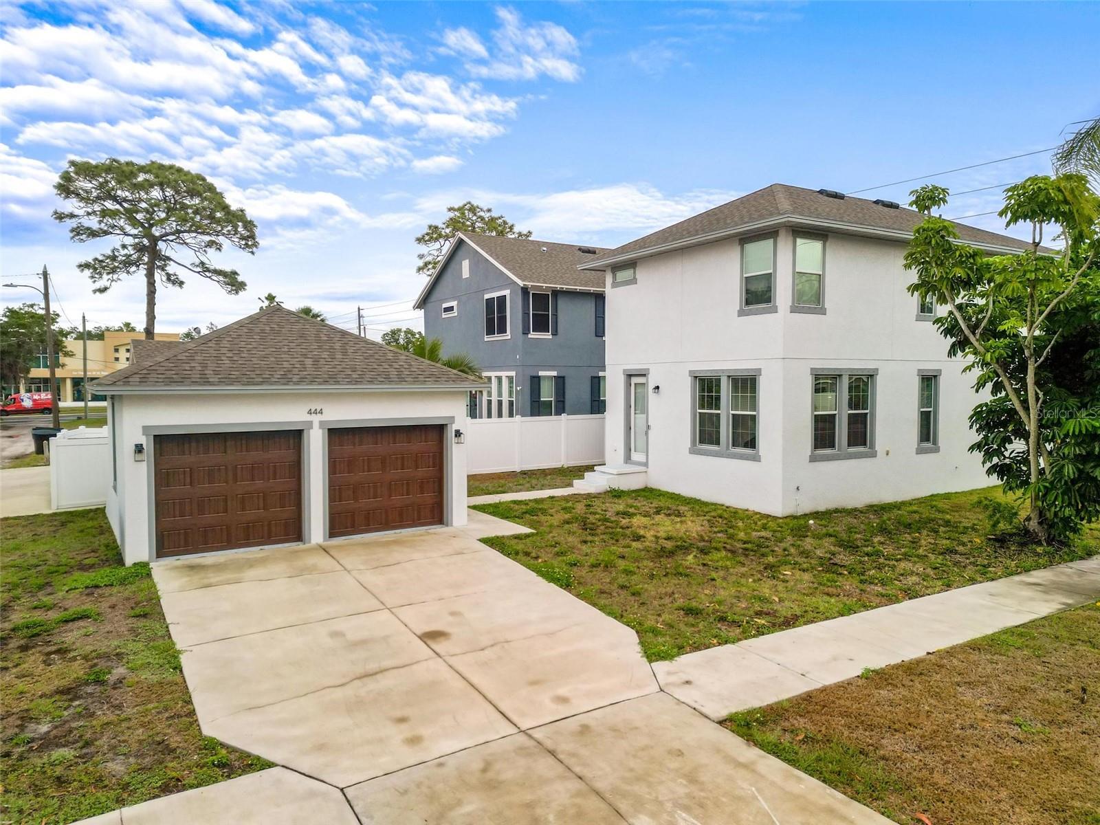 Turn-key home conveniently situated between the Gulf beaches of nearby St Pete and Treasure Island and the endless entertainment of downtown St Petersburg's Bayfront with endless dining, shopping, arts, sports arenas and lively nightlife. This 2020 constructed home did not flood and sits high and dry in Zone X. The Sanderling model features a covered front porch, a detached two-car garage and is equipped with hurricane shutters for added peace of mind. The first floor features an open floor plan with the kitchen open to the family room and a large kitchen island with an additional space for a formal dining room or home office. Other main floor highlights include a walk-in pantry, 2 large storage closets and a half bathroom. The three bedrooms and full-sized washer and dryer are located on the second floor as well as a Jack and Jill bathroom adjoining the two guest bedrooms. Enjoy the benefits of owning a recently constructed home which provides beneficial insurance discounts. Solid build concrete block home on slab with frame upper level. Less than 30 minutes to Tampa International, St Pete/Clearwater Airport and vibrant downtown Tampa Riverwalk/Armature Works. No HOA fees!