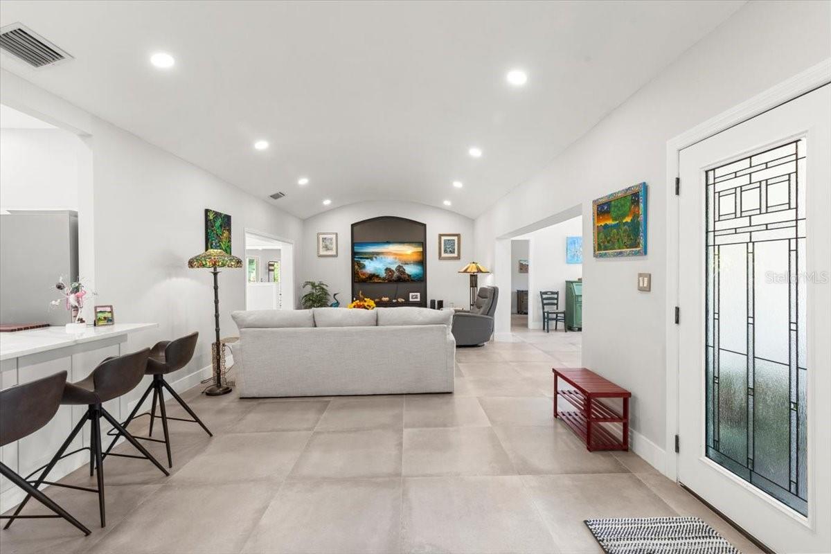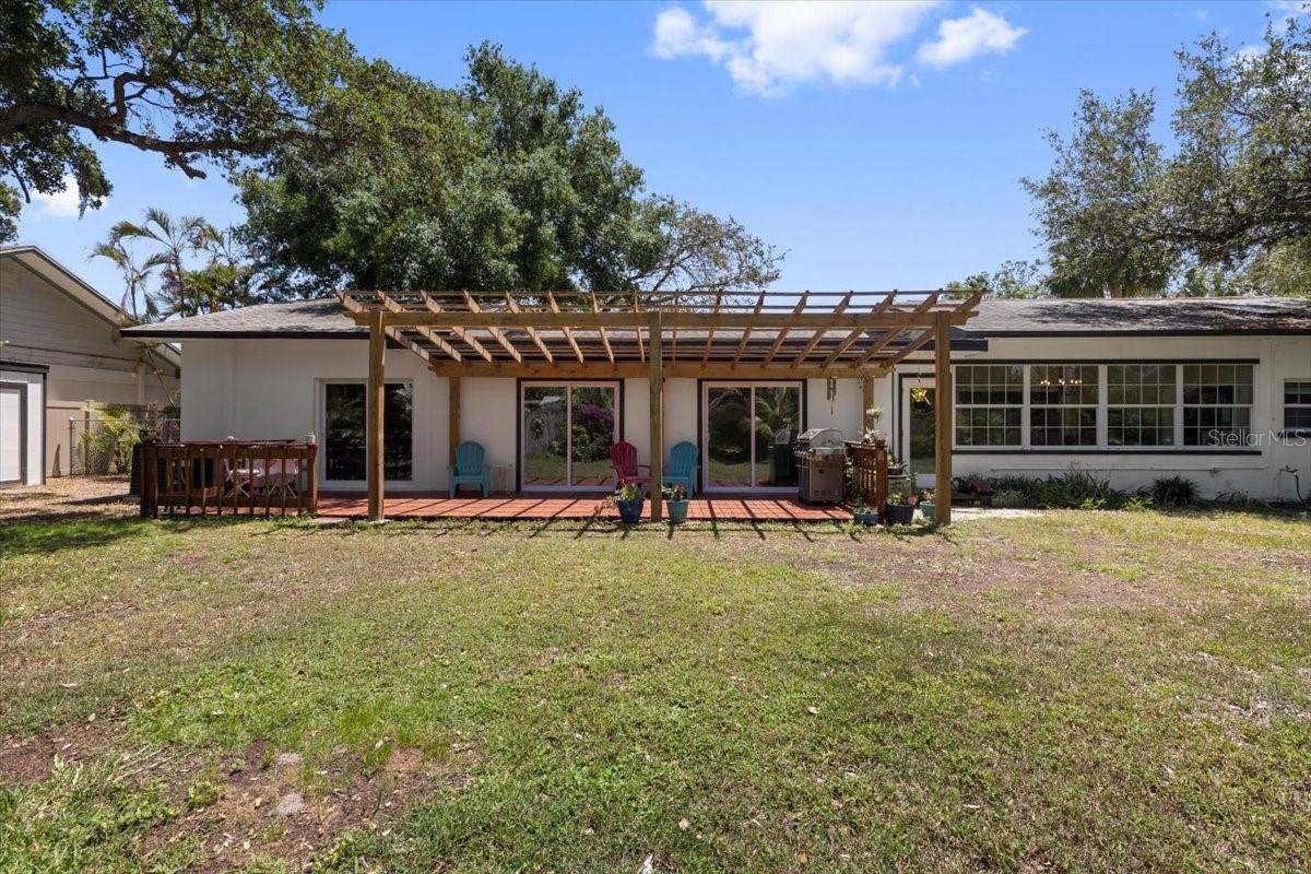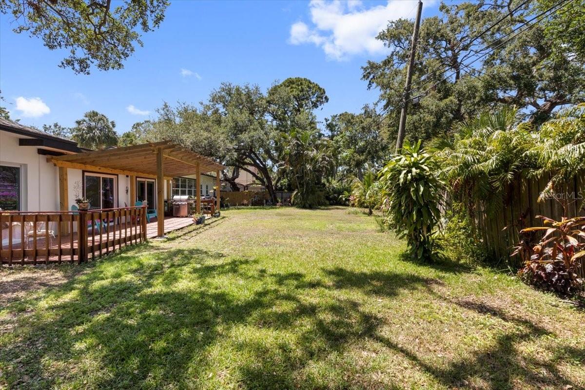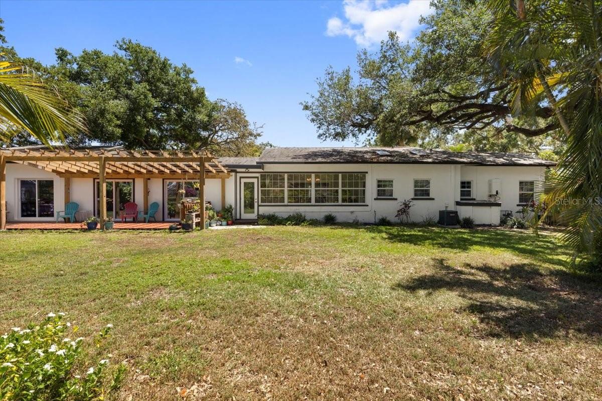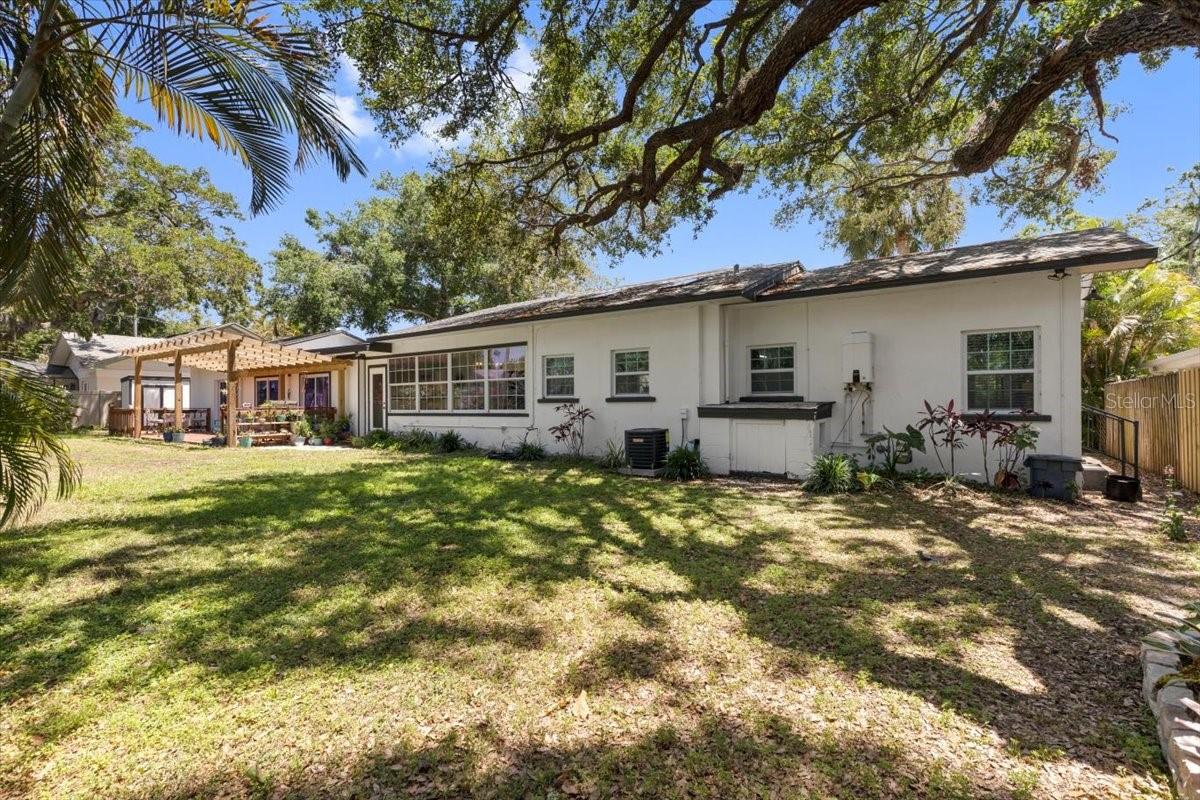 DRASTIC PRICE DROP!!!! NO FLOODING!!! Nestled in a quiet, prestigious, and sought-after neighborhood of Jungle Prada, just minutes from the beaches, this beautifully updated 4-bedroom, 2-bathroom block home offers the perfect blend of comfort, style, and convenience on a huge double lot. From the moment you arrive, you’ll notice the pride of ownership—manicured landscaping, a welcoming front entry, and a well-maintained exterior that sets the tone for what’s inside. Step into a light-filled open floor plan where natural light pours through large windows, showcasing modern and contemporary concrete floors and a spacious living area perfect for entertaining or relaxing. The modern kitchen is a chef’s dream, featuring sleek quartz countertops, newer stainless-steel appliances, custom cabinetry, and a breakfast bar that opens to the dining and living spaces—ideal for everyday living and hosting guests. Retreat to your tranquil primary suite with a private en-suite bath and ample closet space on one wing of the home, while three additional bedrooms provide flexibility for guests, a home office, studio, or playroom. The unique floor plan offers two separate private entrances and driveways, making this property ideal for a MULTIGENERATIONAL FAMILY. An IN-LAW SUITE OR A SEPARATE RENTAL UNIT can easily be created. (1 ADU* permitted by the city). Enjoy Florida living year-round in your expansive oversized backyard oasis—perfect for barbecues, gardening, or even a future pool. The lush private backyard with deck and pergola is a gardener’s paradise, with exotic birds and butterflies flitting among the mature oaks, colorful bougainvillea, palm trees and over 100 tropical and native flowering plants and herbs. A land survey was completed for possible pool/hot tub installation. Additional features include a, newer two zone AC system (2022), new attic insulation (2022), Natural Gas Line run to property (2022), Tankless Gas Water Heater (2022), Bosch Dishwasher (Super Quiet and Efficient 2022), Bosch French Door Refrigerator with Water Filter and Slow-Melting Cubes (2022), Frigidaire Induction Stove with Convection Oven (2024), Magic Chef Wine Refrigerator (2022), Maytag Washer & Dryer (2022), Sony Bravia 77” Television (Cinema Experience 2022), free Standing Bathtub (2022), New Pergola (2024), New Shed (2024), Upgraded Irrigation System connected to well (2025), Four new Impact-Rated Doors (3 Sliders and 1 Single) (2025) Located just a short drive to Treasure Island and the Gulf Beaches, Tyrone Square Mall, Central Avenue, top-rated schools such as Admiral Farragut Academy, Azalea Rec Center and Middle School, Walter Fuller Park (shady walking trail, courts, dog park, pool, day care, gym), Abercrombie Park (Sacred Lands), Bay Pines VA, and the annual Green Thumb Festival; this home offers the rare combination of turn-key living and prime location. Don’t miss this opportunity to own a solid, stylish, and centrally located home in one of St. Pete’s most desirable areas—schedule your private tour today! (Furniture Optional)