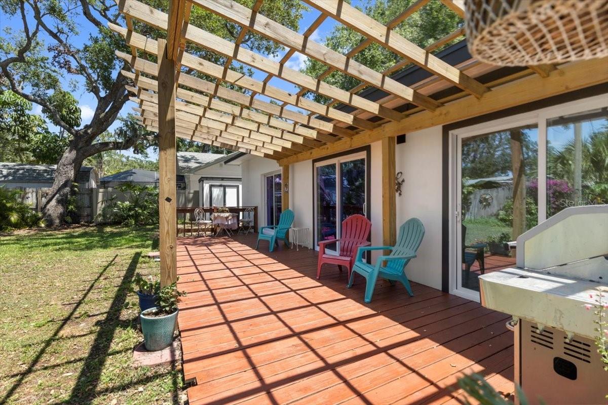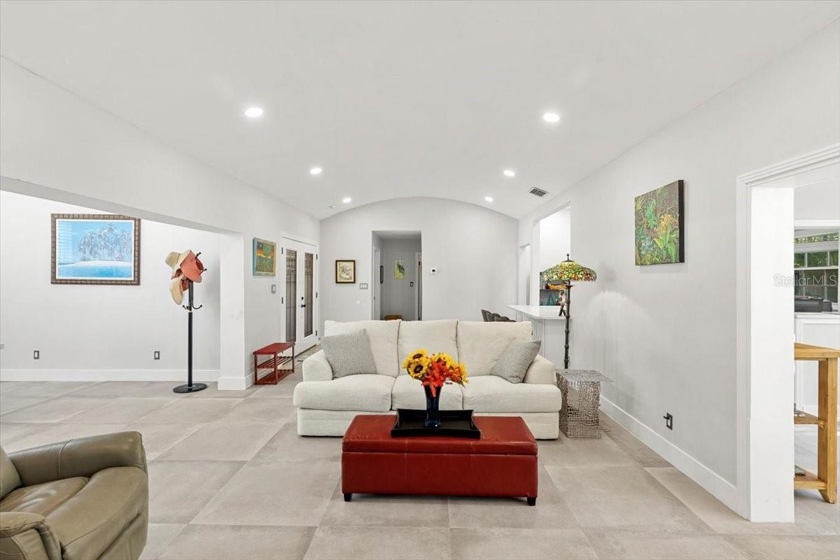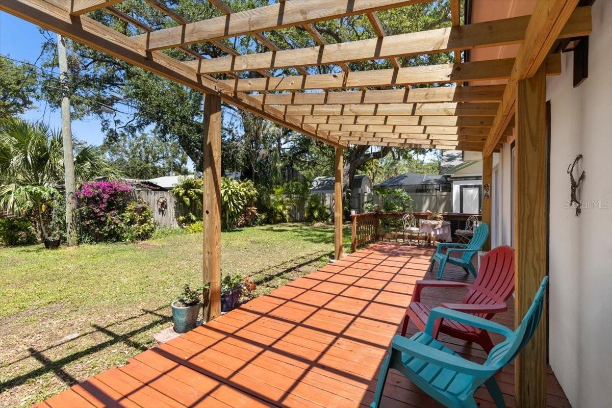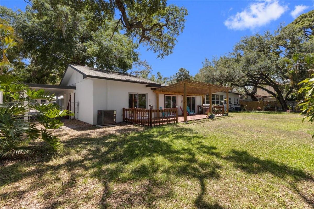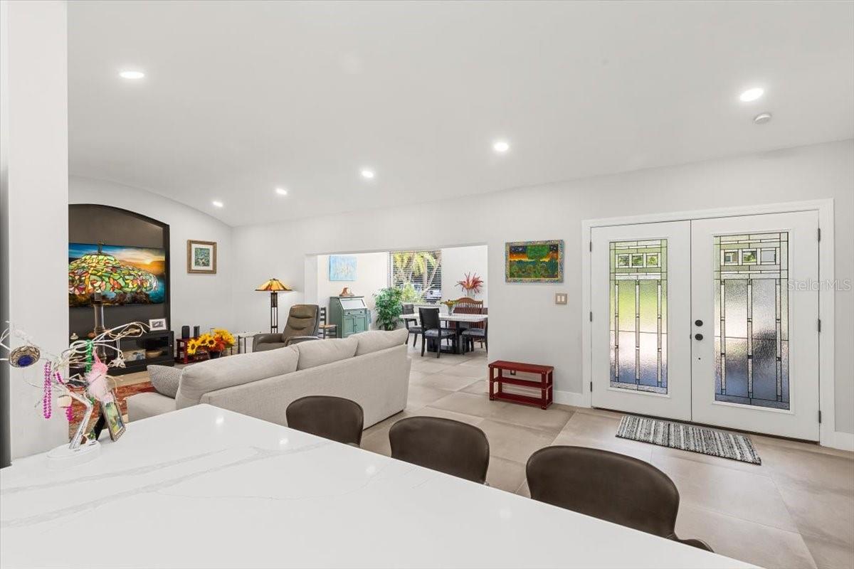 DRASTIC PRICE DROP!!!! NO FLOODING!!! Nestled in a quiet, prestigious, and sought-after neighborhood of Jungle Prada, just minutes from the beaches, this beautifully updated 4-bedroom, 2-bathroom block home offers the perfect blend of comfort, style, and convenience on a huge double lot. From the moment you arrive, you’ll notice the pride of ownership—manicured landscaping, a welcoming front entry, and a well-maintained exterior that sets the tone for what’s inside. Step into a light-filled open floor plan where natural light pours through large windows, showcasing modern and contemporary concrete floors and a spacious living area perfect for entertaining or relaxing. The modern kitchen is a chef’s dream, featuring sleek quartz countertops, newer stainless-steel appliances, custom cabinetry, and a breakfast bar that opens to the dining and living spaces—ideal for everyday living and hosting guests. Retreat to your tranquil primary suite with a private en-suite bath and ample closet space on one wing of the home, while three additional bedrooms provide flexibility for guests, a home office, studio, or playroom. The unique floor plan offers two separate private entrances and driveways, making this property ideal for a MULTIGENERATIONAL FAMILY. An IN-LAW SUITE OR A SEPARATE RENTAL UNIT can easily be created. (1 ADU* permitted by the city). Enjoy Florida living year-round in your expansive oversized backyard oasis—perfect for barbecues, gardening, or even a future pool. The lush private backyard with deck and pergola is a gardener’s paradise, with exotic birds and butterflies flitting among the mature oaks, colorful bougainvillea, palm trees and over 100 tropical and native flowering plants and herbs. A land survey was completed for possible pool/hot tub installation. Additional features include a, newer two zone AC system (2022), new attic insulation (2022), Natural Gas Line run to property (2022), Tankless Gas Water Heater (2022), Bosch Dishwasher (Super Quiet and Efficient 2022), Bosch French Door Refrigerator with Water Filter and Slow-Melting Cubes (2022), Frigidaire Induction Stove with Convection Oven (2024), Magic Chef Wine Refrigerator (2022), Maytag Washer & Dryer (2022), Sony Bravia 77” Television (Cinema Experience 2022), free Standing Bathtub (2022), New Pergola (2024), New Shed (2024), Upgraded Irrigation System connected to well (2025), Four new Impact-Rated Doors (3 Sliders and 1 Single) (2025) Located just a short drive to Treasure Island and the Gulf Beaches, Tyrone Square Mall, Central Avenue, top-rated schools such as Admiral Farragut Academy, Azalea Rec Center and Middle School, Walter Fuller Park (shady walking trail, courts, dog park, pool, day care, gym), Abercrombie Park (Sacred Lands), Bay Pines VA, and the annual Green Thumb Festival; this home offers the rare combination of turn-key living and prime location. Don’t miss this opportunity to own a solid, stylish, and centrally located home in one of St. Pete’s most desirable areas—schedule your private tour today! (Furniture Optional)