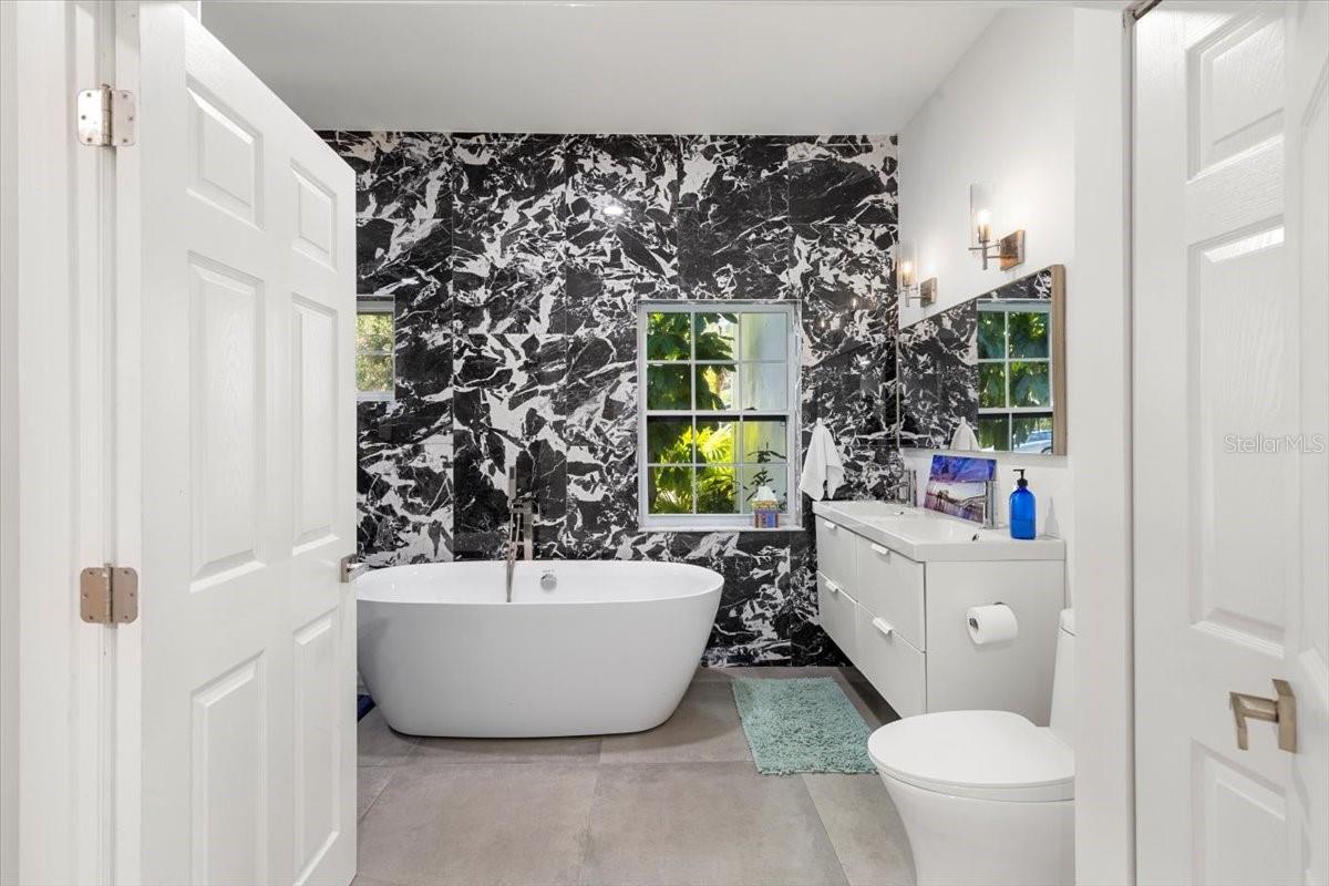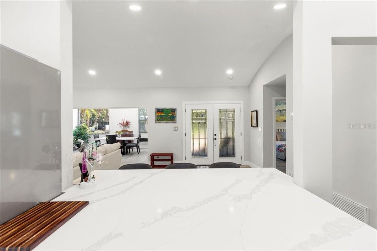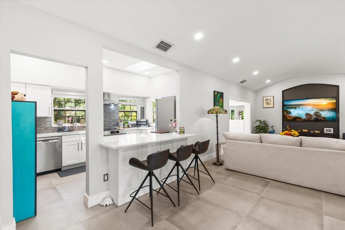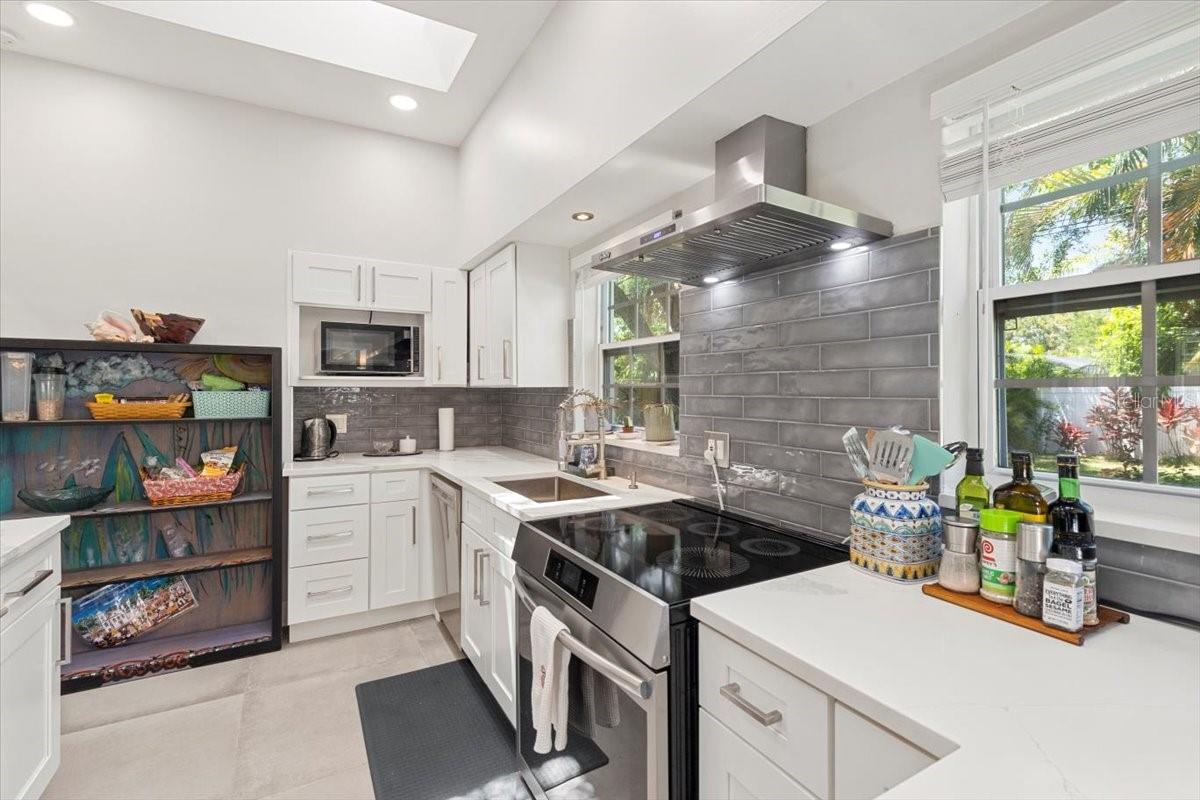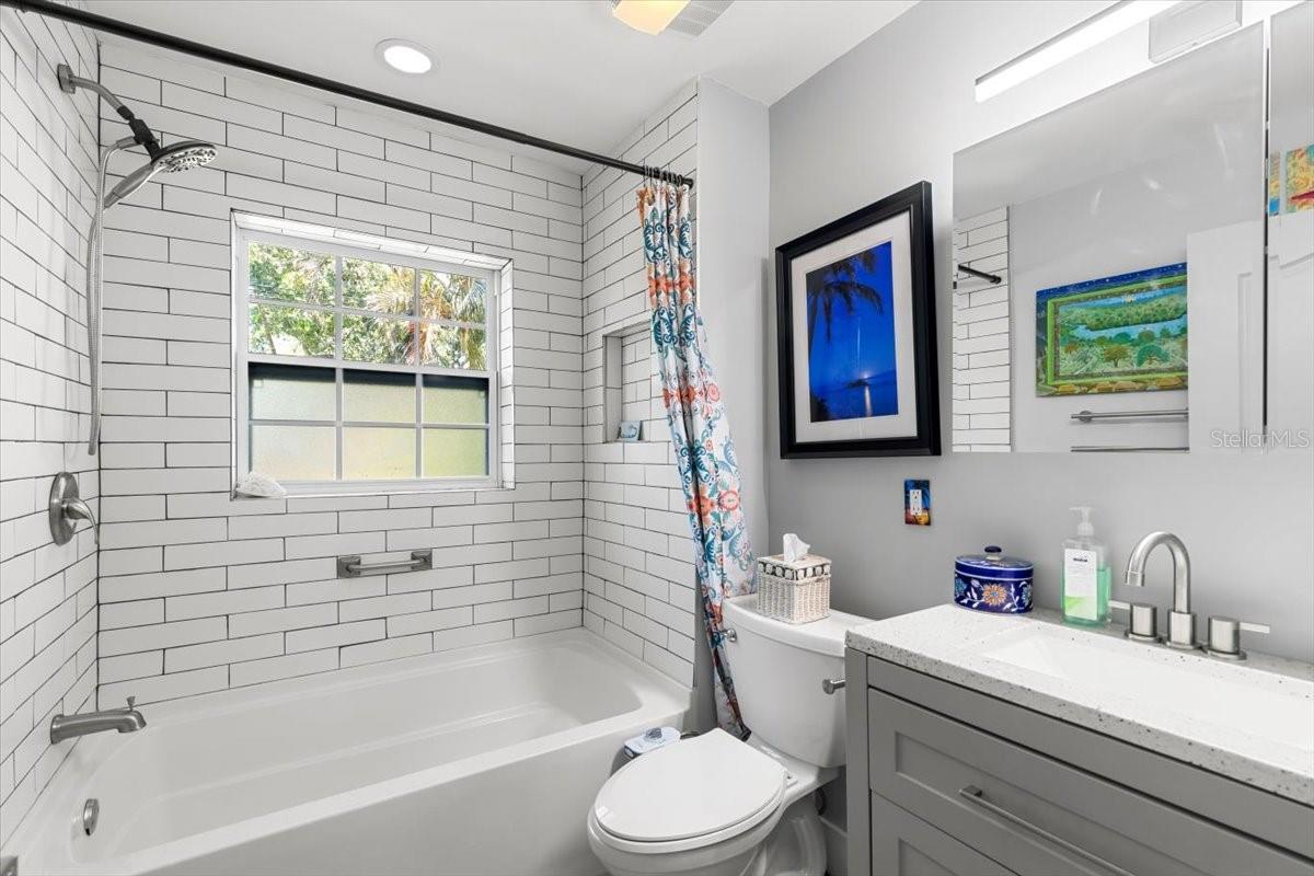 DRASTIC PRICE DROP!!!! NO FLOODING!!! Nestled in a quiet, prestigious, and sought-after neighborhood of Jungle Prada, just minutes from the beaches, this beautifully updated 4-bedroom, 2-bathroom block home offers the perfect blend of comfort, style, and convenience on a huge double lot. From the moment you arrive, you’ll notice the pride of ownership—manicured landscaping, a welcoming front entry, and a well-maintained exterior that sets the tone for what’s inside. Step into a light-filled open floor plan where natural light pours through large windows, showcasing modern and contemporary concrete floors and a spacious living area perfect for entertaining or relaxing. The modern kitchen is a chef’s dream, featuring sleek quartz countertops, newer stainless-steel appliances, custom cabinetry, and a breakfast bar that opens to the dining and living spaces—ideal for everyday living and hosting guests. Retreat to your tranquil primary suite with a private en-suite bath and ample closet space on one wing of the home, while three additional bedrooms provide flexibility for guests, a home office, studio, or playroom. The unique floor plan offers two separate private entrances and driveways, making this property ideal for a MULTIGENERATIONAL FAMILY. An IN-LAW SUITE OR A SEPARATE RENTAL UNIT can easily be created. (1 ADU* permitted by the city). Enjoy Florida living year-round in your expansive oversized backyard oasis—perfect for barbecues, gardening, or even a future pool. The lush private backyard with deck and pergola is a gardener’s paradise, with exotic birds and butterflies flitting among the mature oaks, colorful bougainvillea, palm trees and over 100 tropical and native flowering plants and herbs. A land survey was completed for possible pool/hot tub installation. Additional features include a, newer two zone AC system (2022), new attic insulation (2022), Natural Gas Line run to property (2022), Tankless Gas Water Heater (2022), Bosch Dishwasher (Super Quiet and Efficient 2022), Bosch French Door Refrigerator with Water Filter and Slow-Melting Cubes (2022), Frigidaire Induction Stove with Convection Oven (2024), Magic Chef Wine Refrigerator (2022), Maytag Washer & Dryer (2022), Sony Bravia 77” Television (Cinema Experience 2022), free Standing Bathtub (2022), New Pergola (2024), New Shed (2024), Upgraded Irrigation System connected to well (2025), Four new Impact-Rated Doors (3 Sliders and 1 Single) (2025) Located just a short drive to Treasure Island and the Gulf Beaches, Tyrone Square Mall, Central Avenue, top-rated schools such as Admiral Farragut Academy, Azalea Rec Center and Middle School, Walter Fuller Park (shady walking trail, courts, dog park, pool, day care, gym), Abercrombie Park (Sacred Lands), Bay Pines VA, and the annual Green Thumb Festival; this home offers the rare combination of turn-key living and prime location. Don’t miss this opportunity to own a solid, stylish, and centrally located home in one of St. Pete’s most desirable areas—schedule your private tour today! (Furniture Optional)