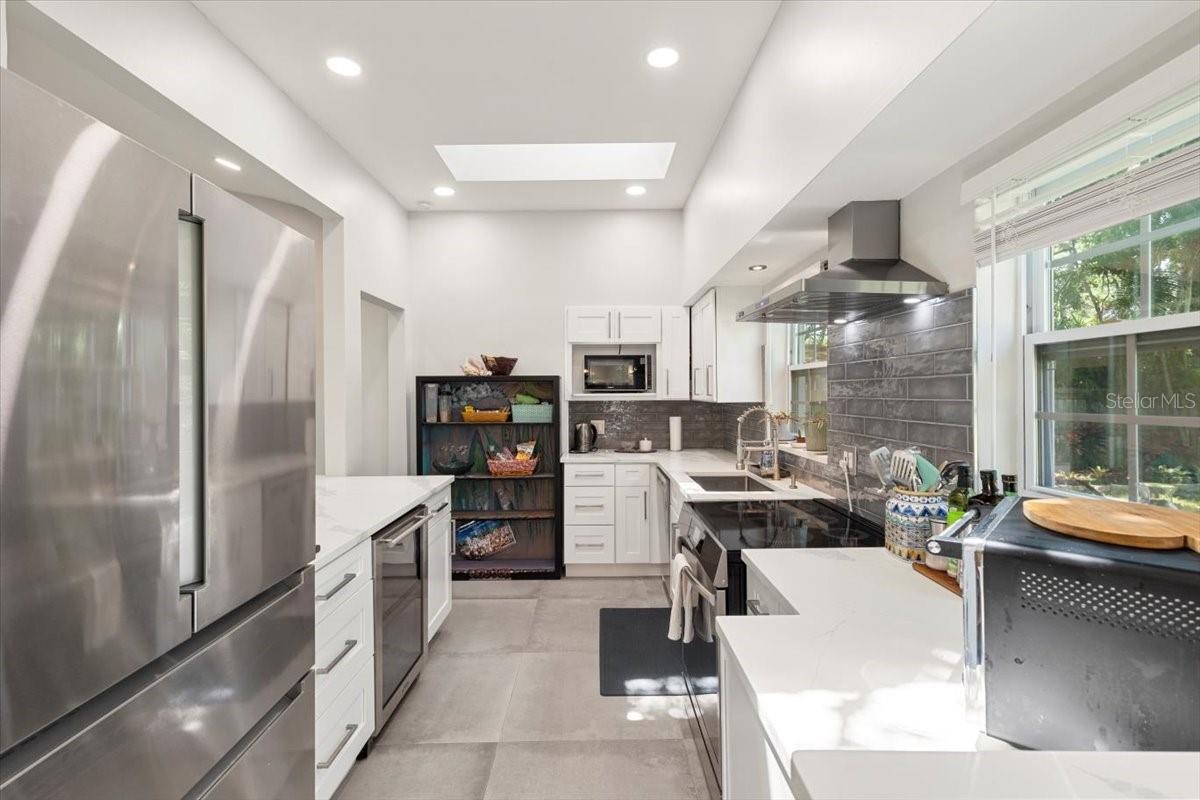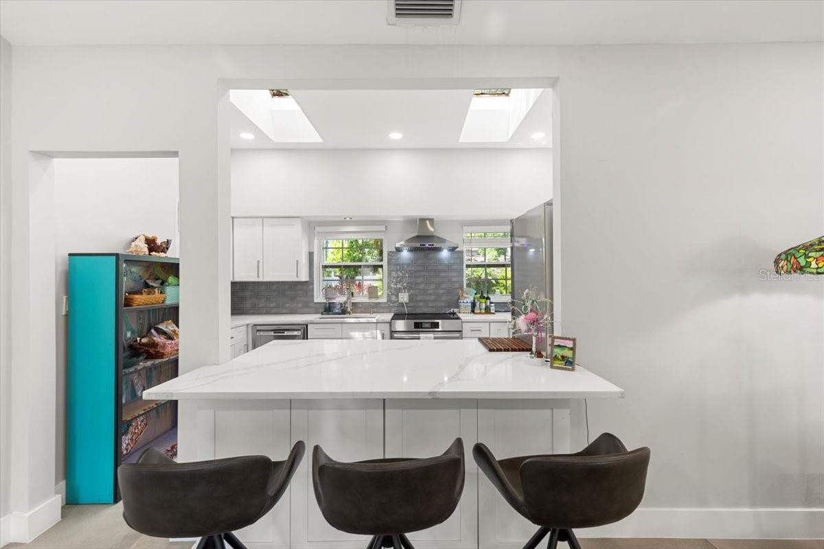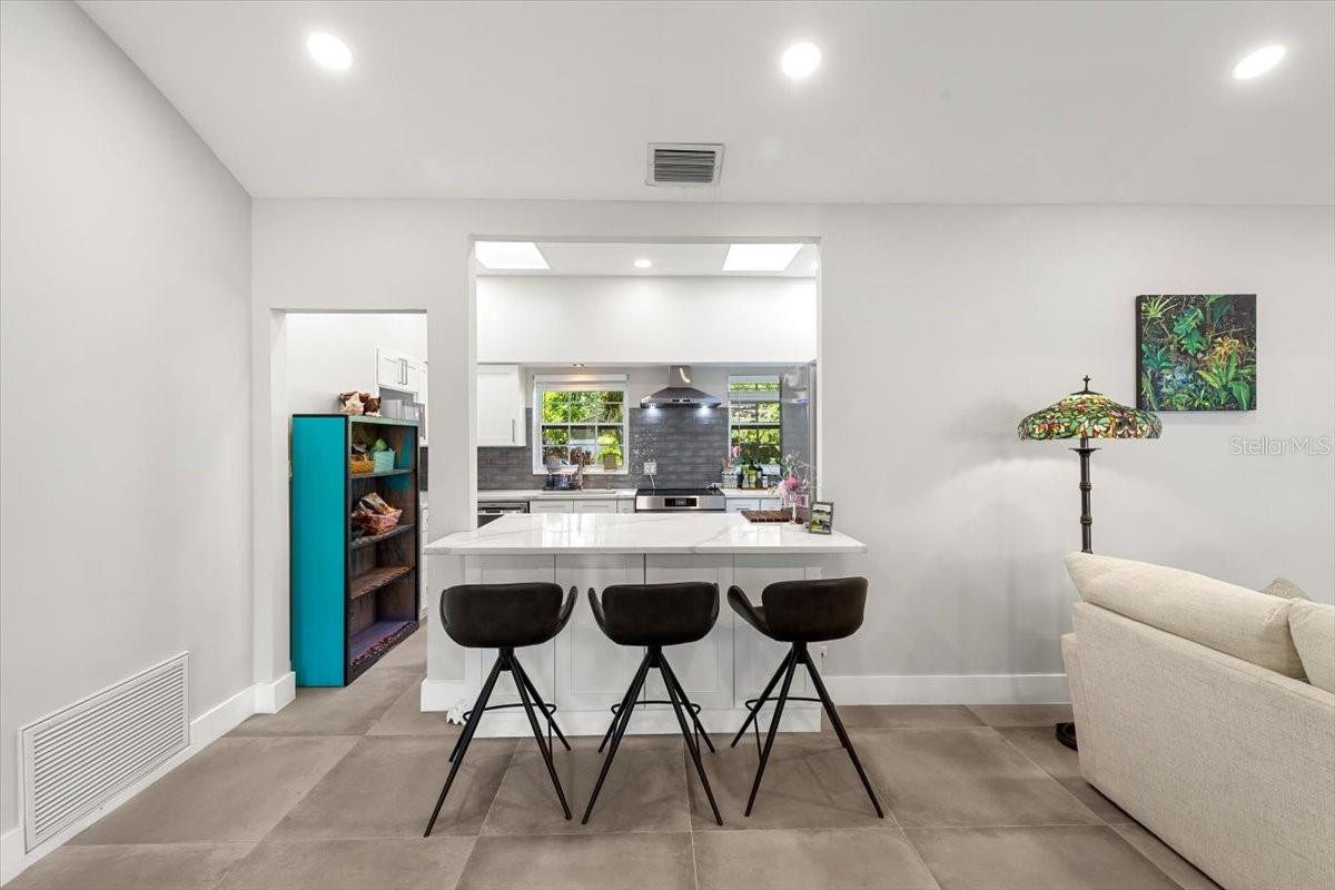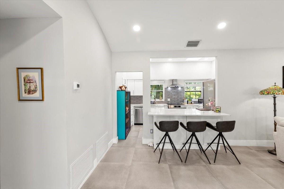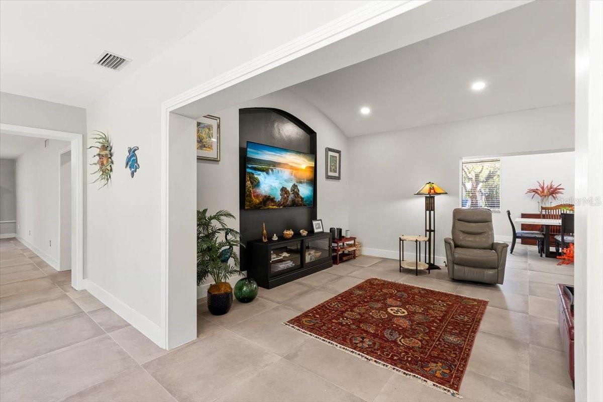 DRASTIC PRICE DROP!!!! NO FLOODING!!! Nestled in a quiet, prestigious, and sought-after neighborhood of Jungle Prada, just minutes from the beaches, this beautifully updated 4-bedroom, 2-bathroom block home offers the perfect blend of comfort, style, and convenience on a huge double lot. From the moment you arrive, you’ll notice the pride of ownership—manicured landscaping, a welcoming front entry, and a well-maintained exterior that sets the tone for what’s inside. Step into a light-filled open floor plan where natural light pours through large windows, showcasing modern and contemporary concrete floors and a spacious living area perfect for entertaining or relaxing. The modern kitchen is a chef’s dream, featuring sleek quartz countertops, newer stainless-steel appliances, custom cabinetry, and a breakfast bar that opens to the dining and living spaces—ideal for everyday living and hosting guests. Retreat to your tranquil primary suite with a private en-suite bath and ample closet space on one wing of the home, while three additional bedrooms provide flexibility for guests, a home office, studio, or playroom. The unique floor plan offers two separate private entrances and driveways, making this property ideal for a MULTIGENERATIONAL FAMILY. An IN-LAW SUITE OR A SEPARATE RENTAL UNIT can easily be created. (1 ADU* permitted by the city). Enjoy Florida living year-round in your expansive oversized backyard oasis—perfect for barbecues, gardening, or even a future pool. The lush private backyard with deck and pergola is a gardener’s paradise, with exotic birds and butterflies flitting among the mature oaks, colorful bougainvillea, palm trees and over 100 tropical and native flowering plants and herbs. A land survey was completed for possible pool/hot tub installation. Additional features include a, newer two zone AC system (2022), new attic insulation (2022), Natural Gas Line run to property (2022), Tankless Gas Water Heater (2022), Bosch Dishwasher (Super Quiet and Efficient 2022), Bosch French Door Refrigerator with Water Filter and Slow-Melting Cubes (2022), Frigidaire Induction Stove with Convection Oven (2024), Magic Chef Wine Refrigerator (2022), Maytag Washer & Dryer (2022), Sony Bravia 77” Television (Cinema Experience 2022), free Standing Bathtub (2022), New Pergola (2024), New Shed (2024), Upgraded Irrigation System connected to well (2025), Four new Impact-Rated Doors (3 Sliders and 1 Single) (2025) Located just a short drive to Treasure Island and the Gulf Beaches, Tyrone Square Mall, Central Avenue, top-rated schools such as Admiral Farragut Academy, Azalea Rec Center and Middle School, Walter Fuller Park (shady walking trail, courts, dog park, pool, day care, gym), Abercrombie Park (Sacred Lands), Bay Pines VA, and the annual Green Thumb Festival; this home offers the rare combination of turn-key living and prime location. Don’t miss this opportunity to own a solid, stylish, and centrally located home in one of St. Pete’s most desirable areas—schedule your private tour today! (Furniture Optional)