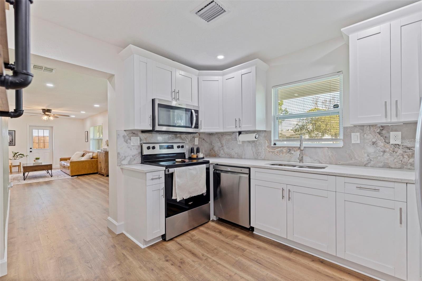 Under contract. Accepting backup offers. Welcome home to your fully renovated, peaceful escape! Located on a quiet street in the heart of Pinellas, this split floorplan home is the one you’ve been looking for. If a move-in-ready home with all the big-ticket upgrades already taken care of is at the top of your wish list - stop scrolling, you’ve found The One. This spacious home was renovated in 2021 and no detail was spared. The Highlights: New roof / New HVAC / 200-amp electric panel / Water heater / Impact windows / A gorgeous new kitchen / Two thoughtfully remodeled bathrooms and more – all new in 2021. This means the big-ticket items are taken care of for years to come. Upon entry, the open living/dining area allows you to entertain or relax in comfort. Whether hosting a cozy gathering or a lively celebration, the living room's design ensures everyone feels at home. To make indoor/outdoor living a breeze, an exterior door off the living room leads to your wonderful backyard and screened lanai. New interior paint in a fresh clean palette, thoughtful upgrades, modern fixtures and finishes add a contemporary touch to the whole interior. The kitchen is the heart of the home and this one delivers. Gorgeous counters and backsplash, soft close cabinetry, oversized pantry, stainless steel appliances and an efficient working layout make this one a dream to work in. Whether you're a Top Chef in training or just really good at takeout presentation, this kitchen shines. The primary suite is a spacious and welcoming retreat. Is a deluxe spa like bathroom on your wish list? The ensuite features an extra-long double sink vanity, a spa like shower experience, walk-in closet (housing the stack LG washer and dryer) and access to the screened lanai - you might not want to leave home. The two additional bedrooms are generously sized and thoughtfully tucked away. Perfect for family, guests or a home office/gym each has a spacious closet and plenty of natural light. The yard is set up to take advantage of our wonderful Florida lifestyle. The screened lanai has room to lounge as well as dine. The fully fenced yard includes a shed, side gates, fire pit, patio for outdoor cooking and still room for a pool if you like. Sunday football in the lanai, room for pets to roam, host a BBQ or enjoy a fire under the stars. It’s here and ready for you. Conveniently close to shopping, dining, parks, and major roadways—everything you need is within reach. Don’t miss out on this incredible opportunity to own a wonderful home in a prime, central Pinellas location. Schedule your showing today! (Televisions and their mounts do not convey with the sale of the home.)