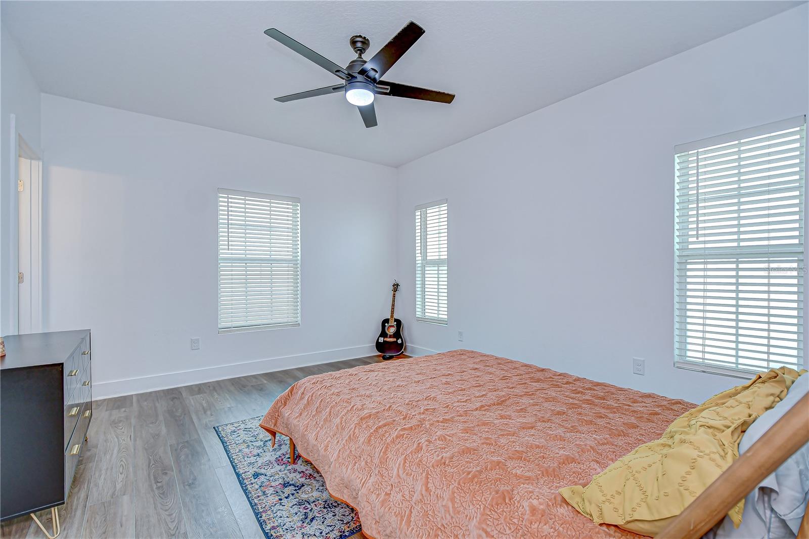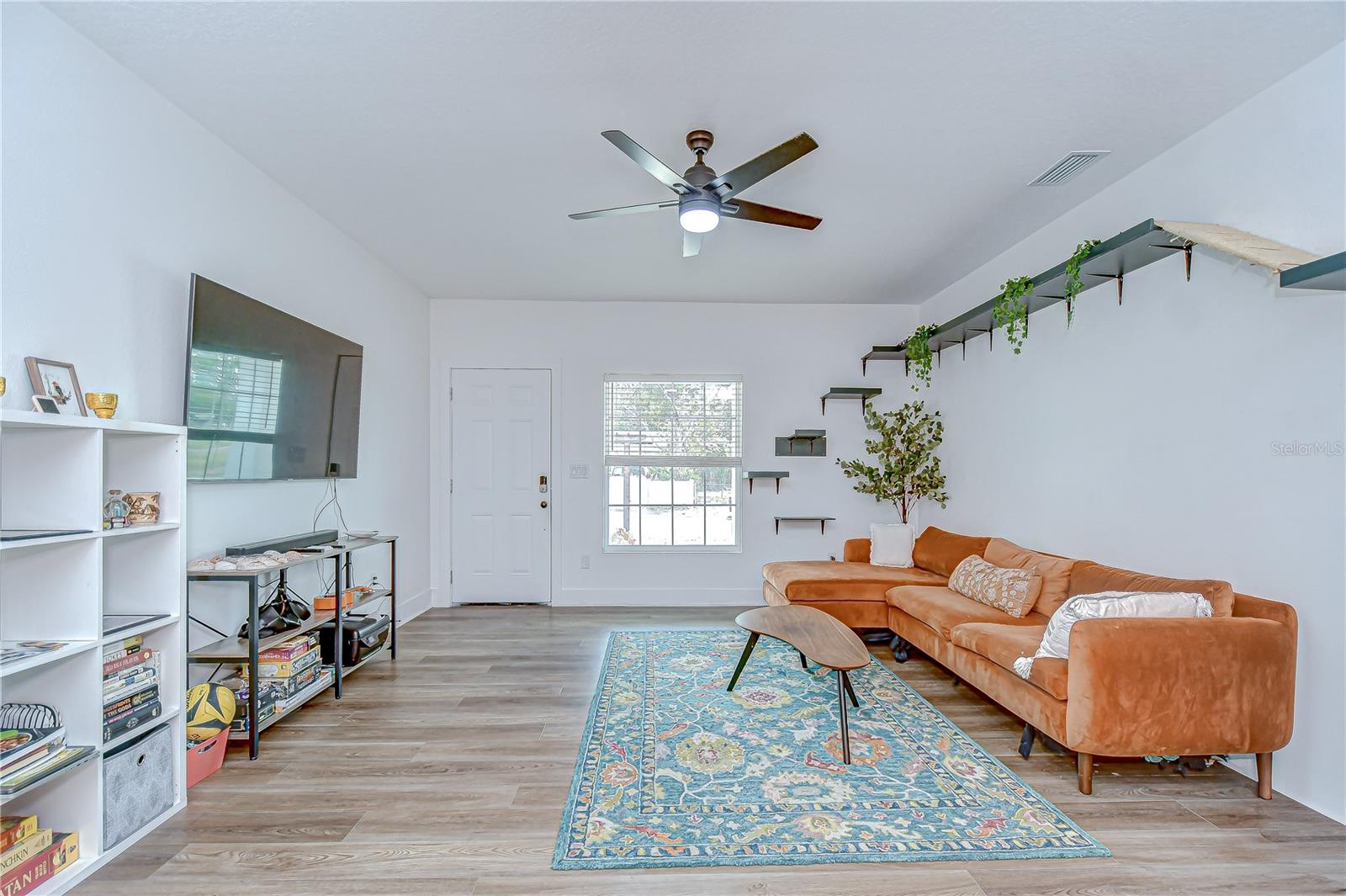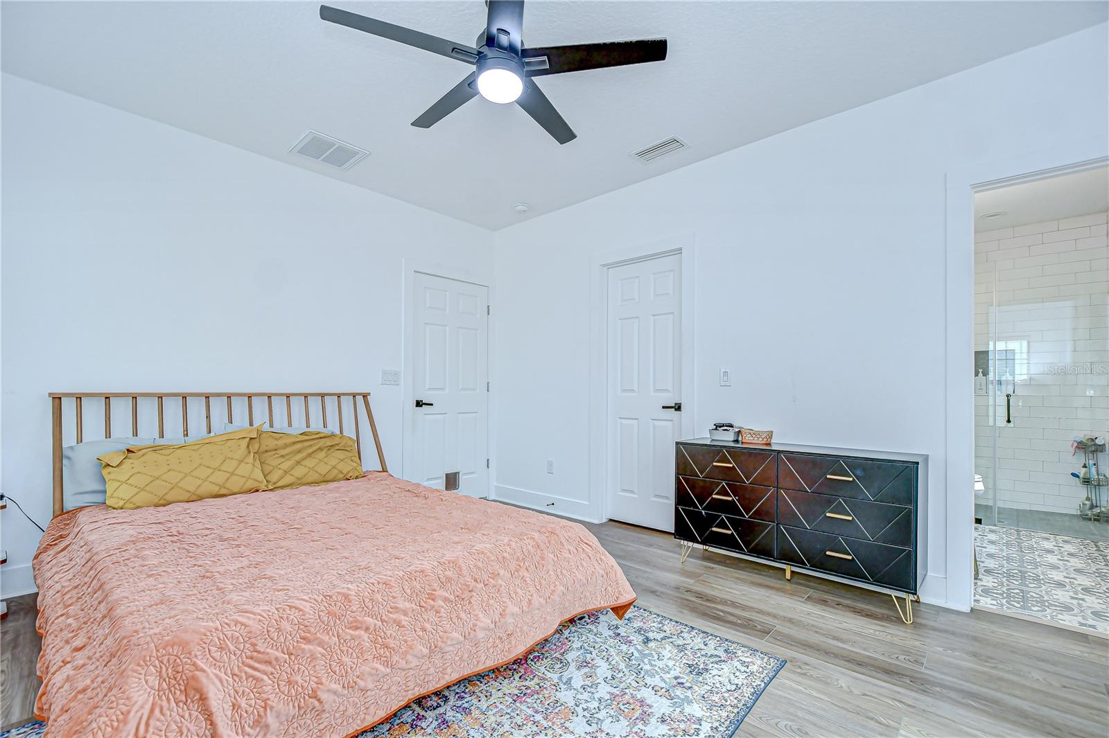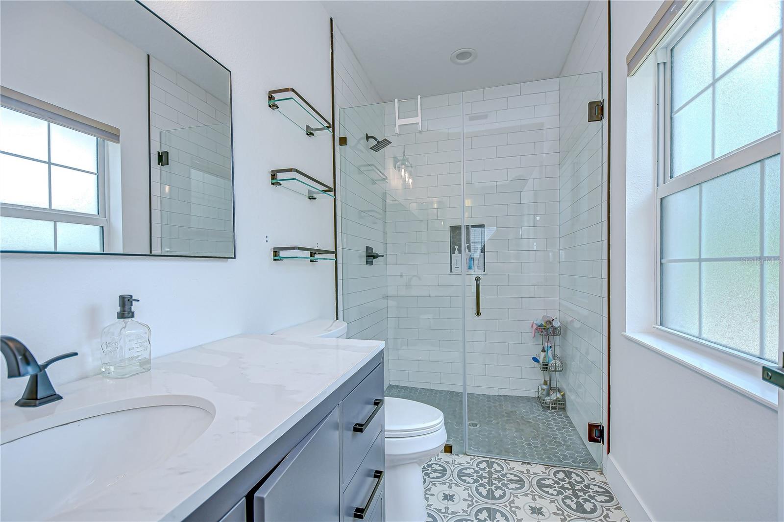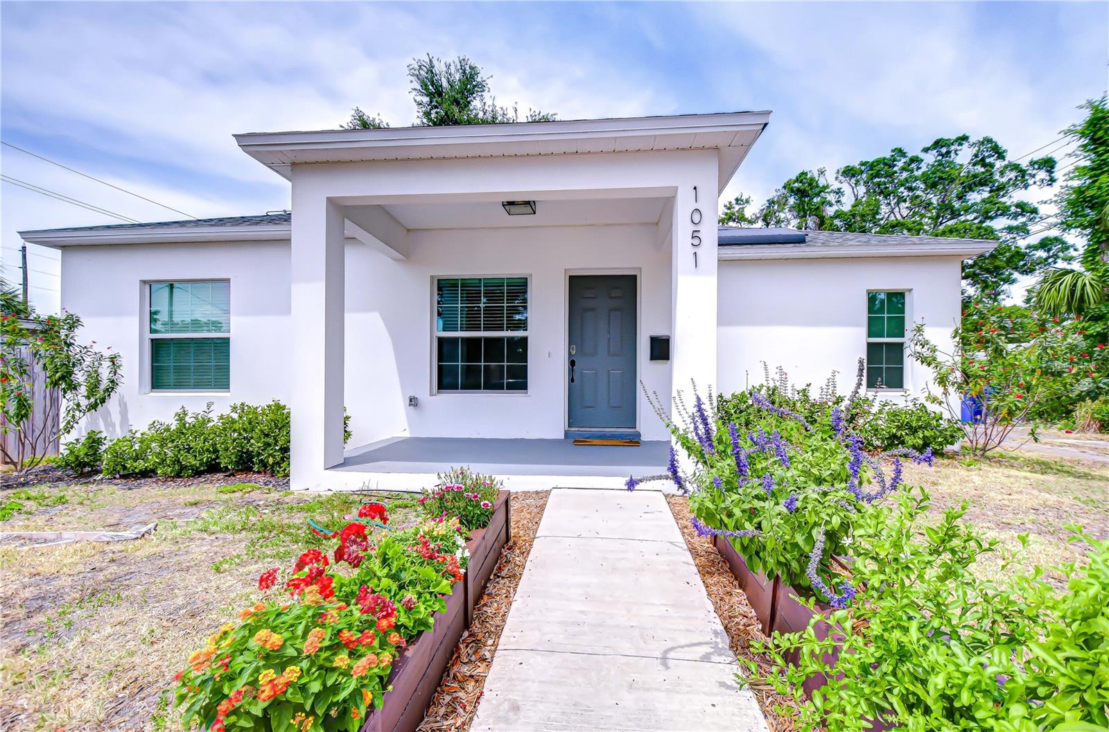 Step into stylish Florida living with this newer-construction 3-bedroom, 2-bath home, built in 2022 and designed with both comfort and contemporary appeal in mind. Skip the wait and hassle of building—this move-in-ready home offers all the advantages of modern construction and the peace of mind that comes with newer materials and craftsmanship. Bathed in natural sunlight, this thoughtfully designed home features an open and inviting floor plan with clean lines and sleek black accents that add a bold modern touch. The heart of the home is the expansive living area that effortlessly flows into the dining space and kitchen—ideal for entertaining or everyday comfort. The kitchen is a standout with its large center island perfect for casual dining or meal prep, complemented by quartz countertops, custom cabinetry, and stainless steel appliances that create a polished, gourmet feel. The split-bedroom layout offers privacy and functionality, with the primary suite tucked away on one side of the home. The suite features a generous walk-in closet and a beautifully designed en-suite bath with a large walk-in shower. The two additional bedrooms are bright and well-sized, each with ample closet space, and share a stylish hall bathroom with a tub and shower combo. Luxury vinyl plank flooring flows throughout the living spaces, while the bathrooms feature eye-catching designer tile. The side-entry 2-car garage offers added privacy and convenience, with direct access to the kitchen and laundry room—perfect for rainy days or bringing in groceries. Energy-conscious buyers will love the added bonus of solar panels on the roof, offering increased energy efficiency and reduced utility costs year-round. Located just minutes from vibrant Downtown St. Pete, the eclectic charm of Gulfport and the area's award-winning beaches, this home is perfectly situated. Hurry, schedule your appt to view today before it's gone!