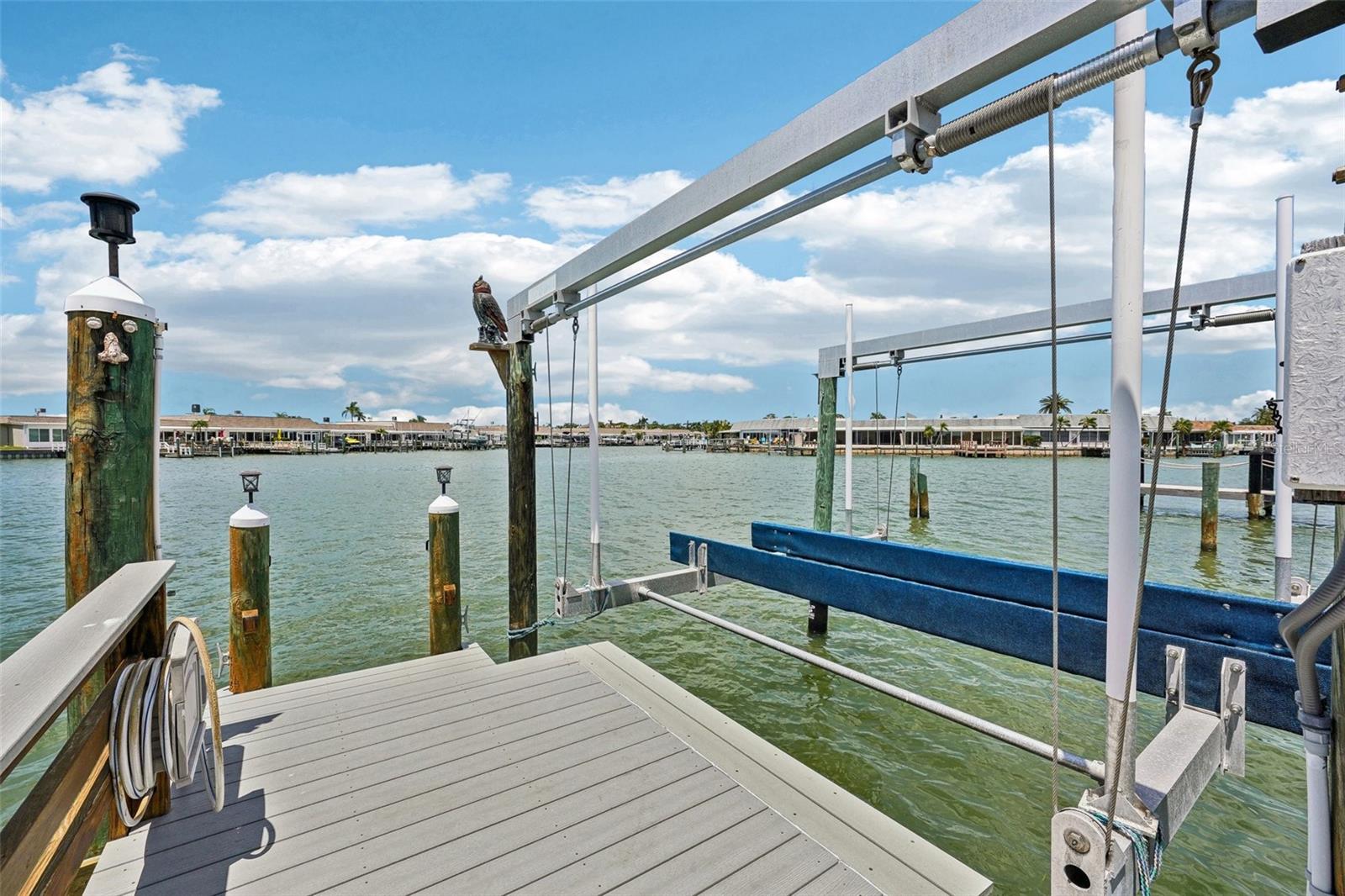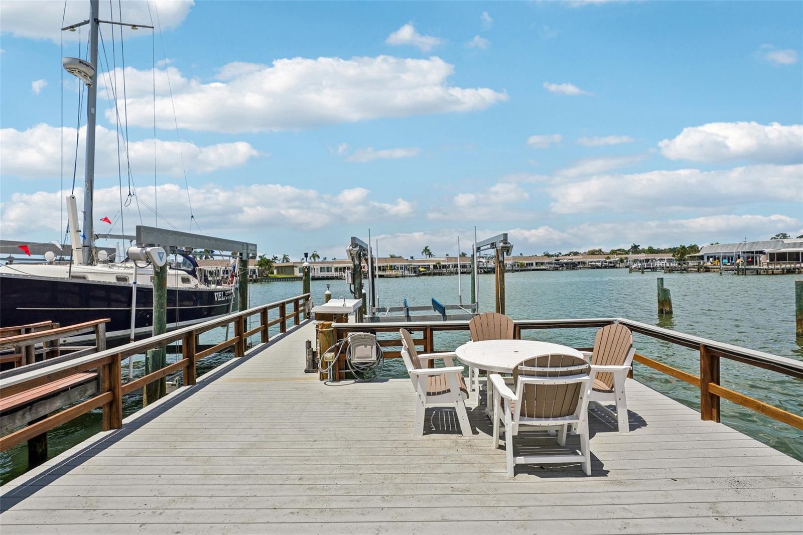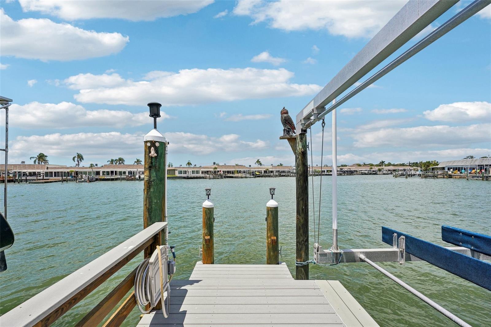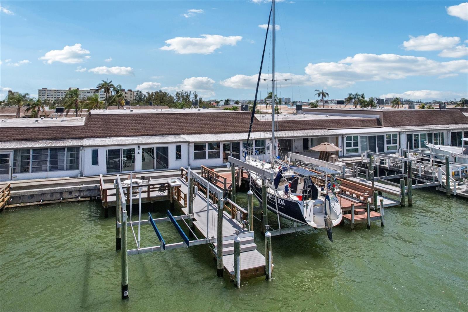 Waterfront Perfection in Boca Ciega Point (a 55+ Active Community in St. Petersburg) – Fully Renovated 2 Bedroom/2 Bathroom 1400SF Villa with Boat Lift, Flood Protection, & Luxury Upgrades. A Brand New $30,000 (per residence - Already Paid by Seller) Garrison Flood Gate System is being installed—a high-performance aluminum barrier system designed to protect your home from flooding, providing peace of mind in all seasons. 467 Boca Ciega Point Blvd S offers the ideal blend of style, comfort, and functionality—with direct water access, luxury finishes, and maintenance-free living. Enjoy over 300SF of additional living space in the finished Florida room, which opens out to your private waterfront deck and 10,000 lb boat lift on the widest part of the canal—just 60 seconds to the Intracoastal Waterway and minutes to the Gulf via John’s Pass. Inside, no detail was spared: the open-concept layout features a stunning kitchen with all-new stainless steel appliances, dramatic 11-foot quartz island, custom cabinetry, modern backsplash, and a dry bar with beverage cooler—perfect for entertaining. The entire home is adorned with designer tile flooring, modern 5¼" baseboards, and two spa-like bathrooms with custom walk-in showers. This light-filled home featured tinted sliding glass doors throughout, complete with built-in blinds, helping keep the home cool while offering expansive water views from the kitchen, living room, sun-room, and primary suite. Both bedrooms are oversized and comfortably fit king-sized sets. The garage is freshly painted, includes upper storage cabinetry, and still accommodates a vehicle. The private front courtyard offers a sunny retreat perfect for enjoying the Florida breeze. As part of Boca Ciega Point, you’ll enjoy world-class amenities: two clubhouses, heated pool, gym, putting green, saunas, boat club, tennis & pickle ball courts, shuffleboard, and regular community events including happy hours. Your HOA fees cover nearly everything: Multi-Peril/Flood insurance, 24-hour security gate, cable TV, internet, water, sewer, trash, grounds maintenance, and exterior upkeep—making this a truly worry-free, maintenance-free lifestyle. Why pay more elsewhere? This is your opportunity to own a like-new waterfront home with premier boating access, at a fraction of the cost and taxes of similar properties. Schedule your private tour today and discover the ultimate lifestyle in Florida waterfront living!