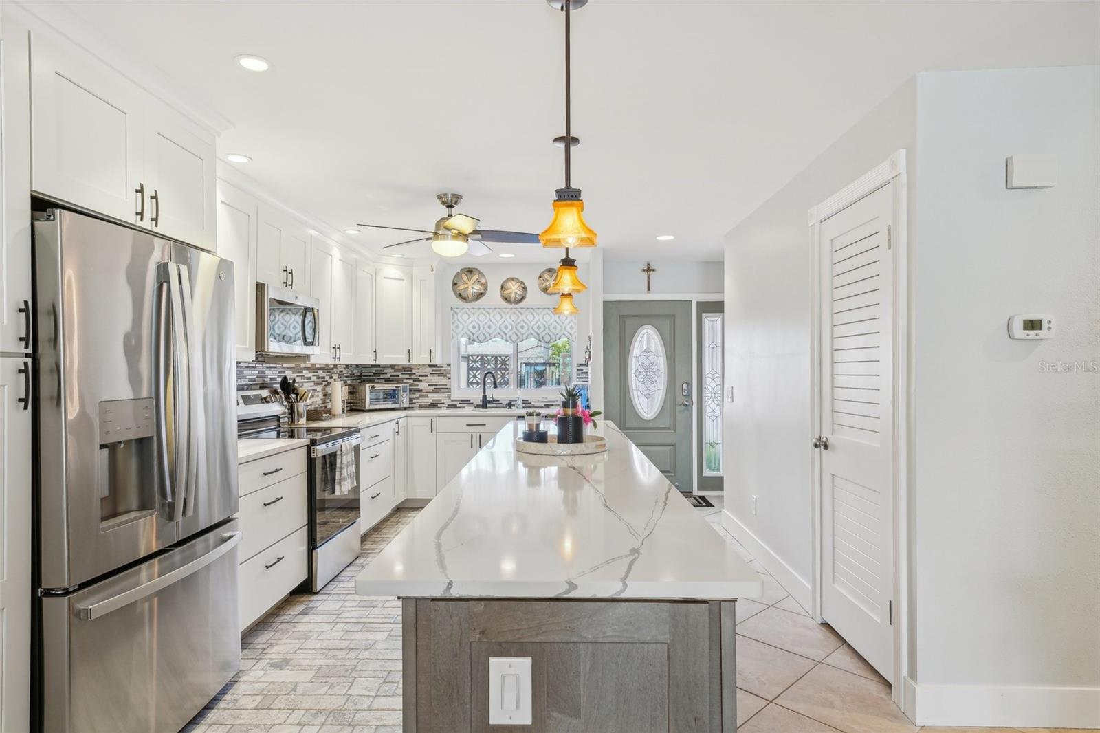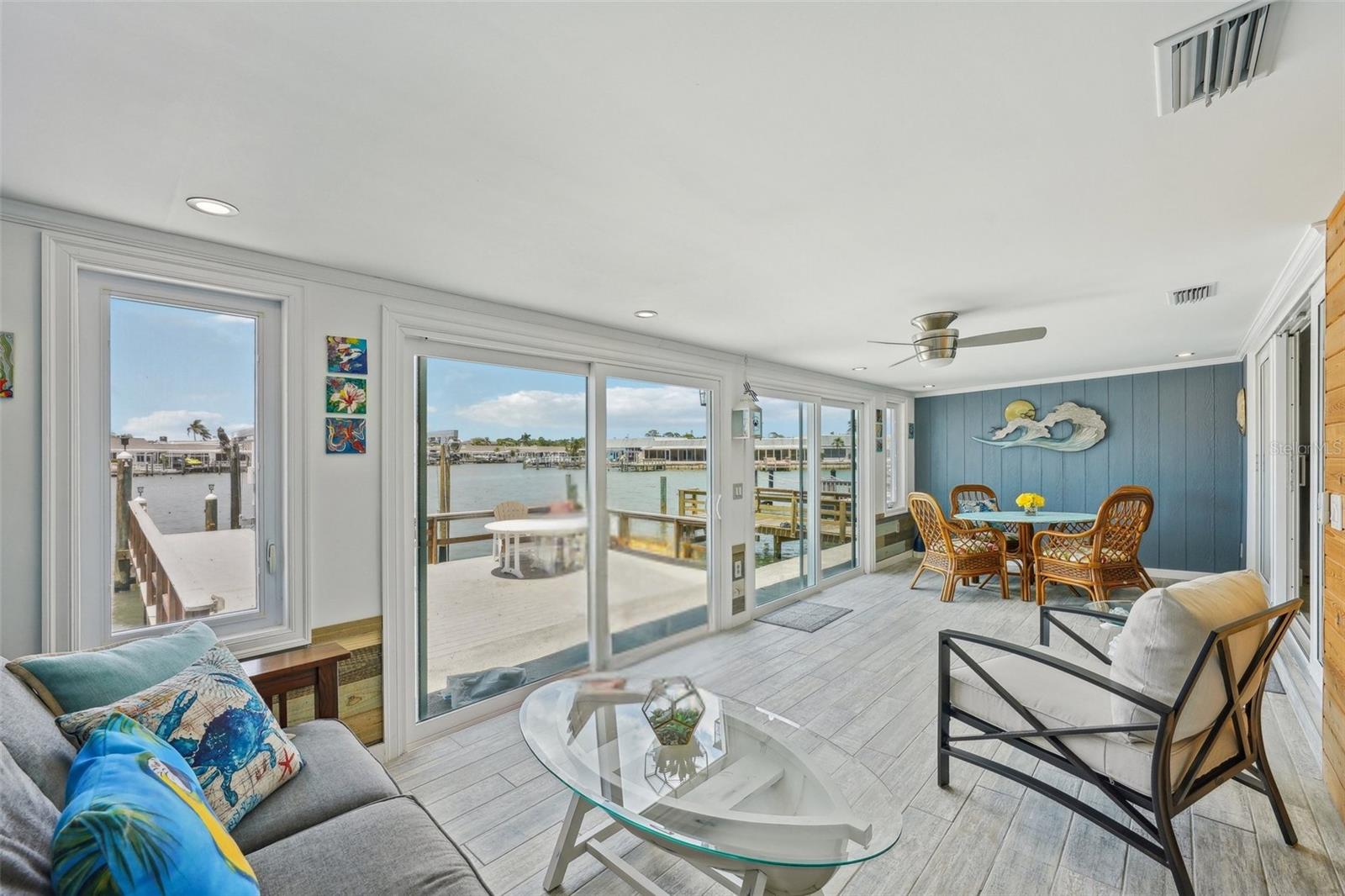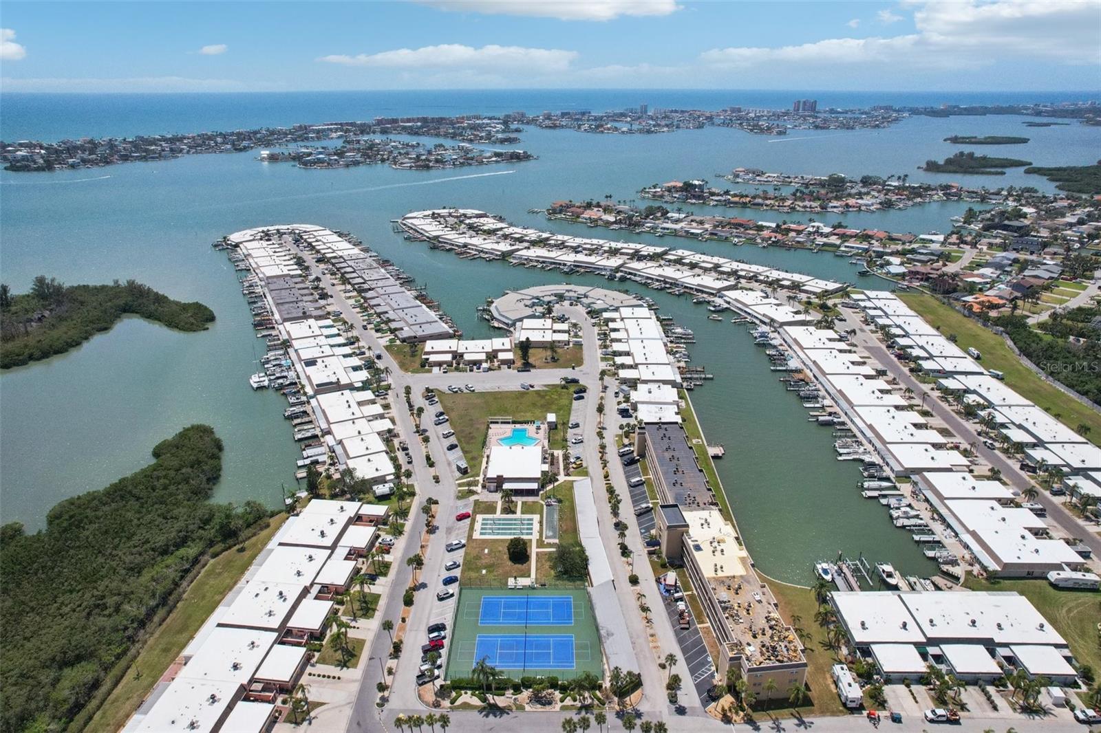 Waterfront Perfection in Boca Ciega Point (a 55+ Active Community in St. Petersburg) – Fully Renovated 2 Bedroom/2 Bathroom 1400SF Villa with Boat Lift, Flood Protection, & Luxury Upgrades. A Brand New $30,000 (per residence - Already Paid by Seller) Garrison Flood Gate System is being installed—a high-performance aluminum barrier system designed to protect your home from flooding, providing peace of mind in all seasons. 467 Boca Ciega Point Blvd S offers the ideal blend of style, comfort, and functionality—with direct water access, luxury finishes, and maintenance-free living. Enjoy over 300SF of additional living space in the finished Florida room, which opens out to your private waterfront deck and 10,000 lb boat lift on the widest part of the canal—just 60 seconds to the Intracoastal Waterway and minutes to the Gulf via John’s Pass. Inside, no detail was spared: the open-concept layout features a stunning kitchen with all-new stainless steel appliances, dramatic 11-foot quartz island, custom cabinetry, modern backsplash, and a dry bar with beverage cooler—perfect for entertaining. The entire home is adorned with designer tile flooring, modern 5¼" baseboards, and two spa-like bathrooms with custom walk-in showers. This light-filled home featured tinted sliding glass doors throughout, complete with built-in blinds, helping keep the home cool while offering expansive water views from the kitchen, living room, sun-room, and primary suite. Both bedrooms are oversized and comfortably fit king-sized sets. The garage is freshly painted, includes upper storage cabinetry, and still accommodates a vehicle. The private front courtyard offers a sunny retreat perfect for enjoying the Florida breeze. As part of Boca Ciega Point, you’ll enjoy world-class amenities: two clubhouses, heated pool, gym, putting green, saunas, boat club, tennis & pickle ball courts, shuffleboard, and regular community events including happy hours. Your HOA fees cover nearly everything: Multi-Peril/Flood insurance, 24-hour security gate, cable TV, internet, water, sewer, trash, grounds maintenance, and exterior upkeep—making this a truly worry-free, maintenance-free lifestyle. Why pay more elsewhere? This is your opportunity to own a like-new waterfront home with premier boating access, at a fraction of the cost and taxes of similar properties. Schedule your private tour today and discover the ultimate lifestyle in Florida waterfront living!
