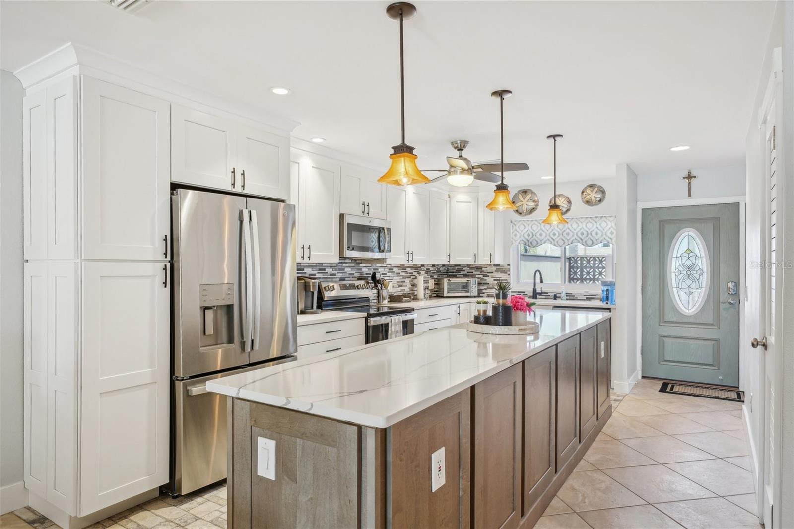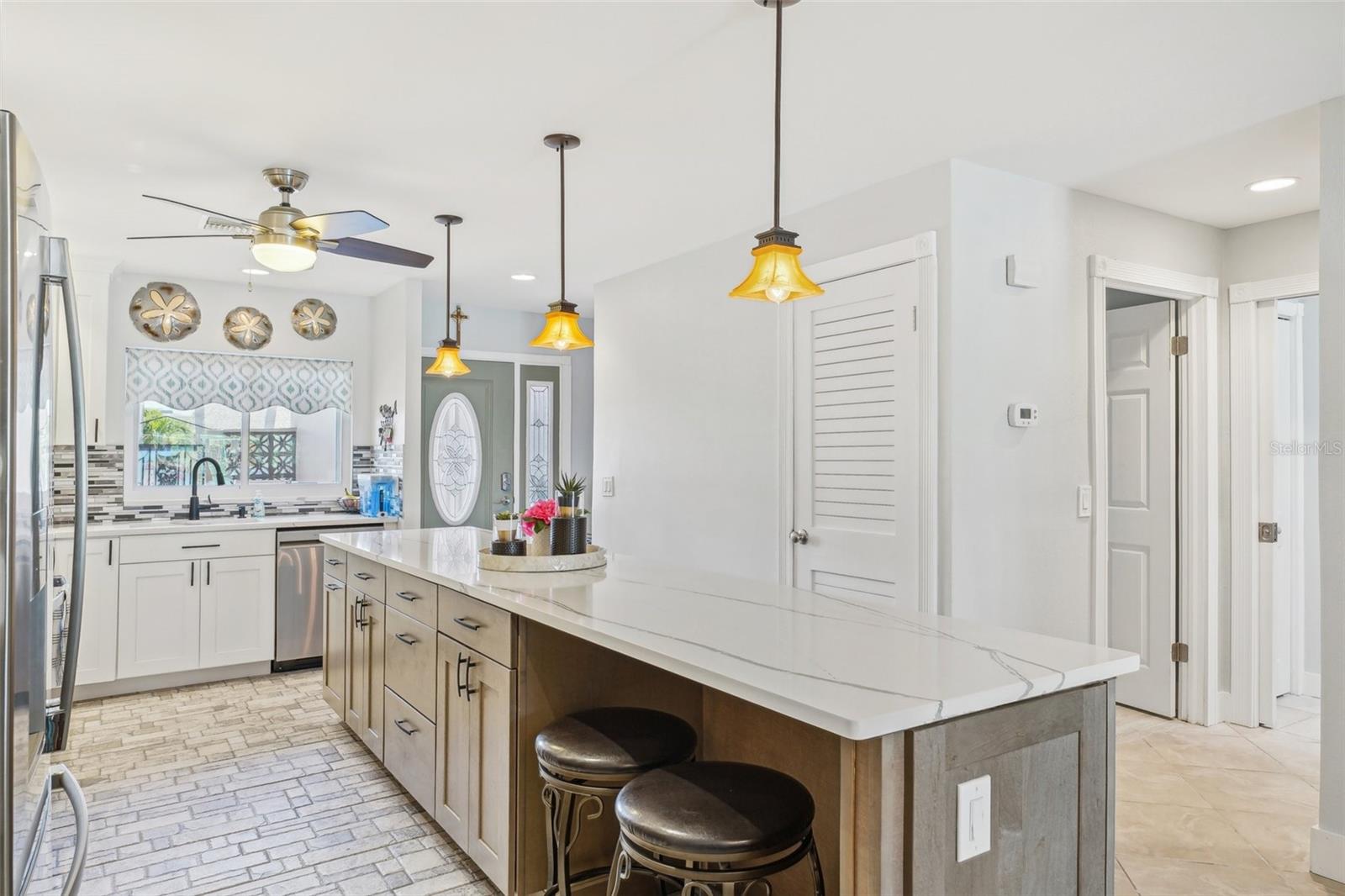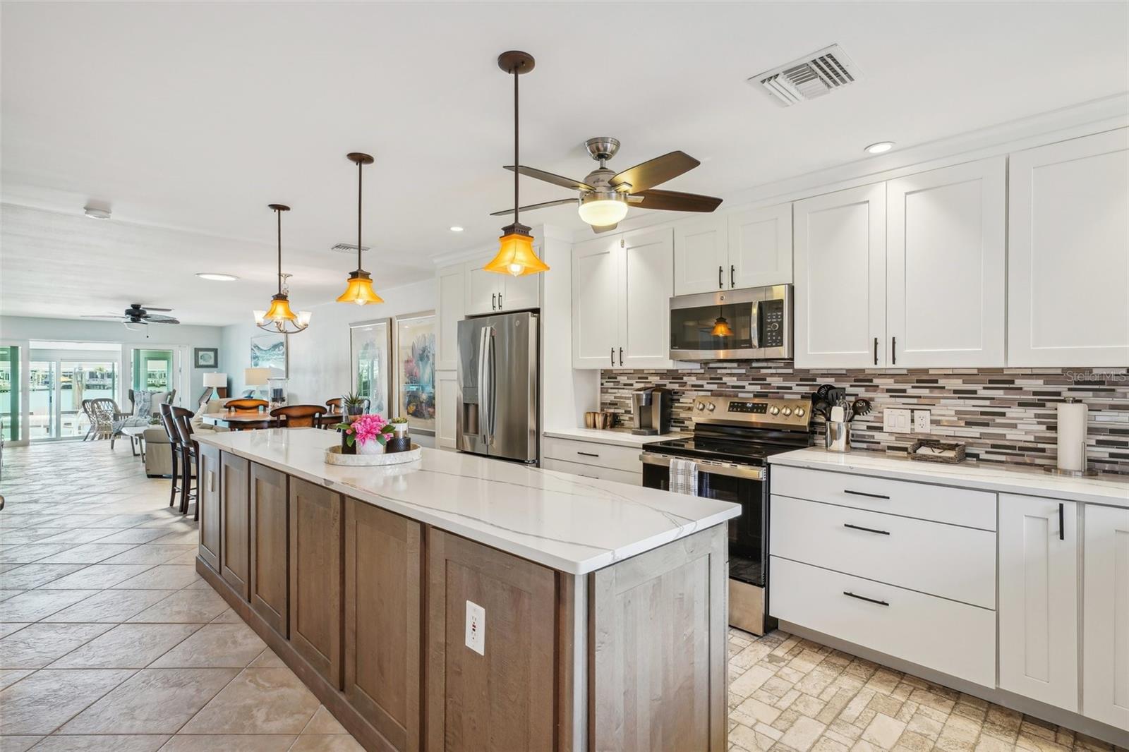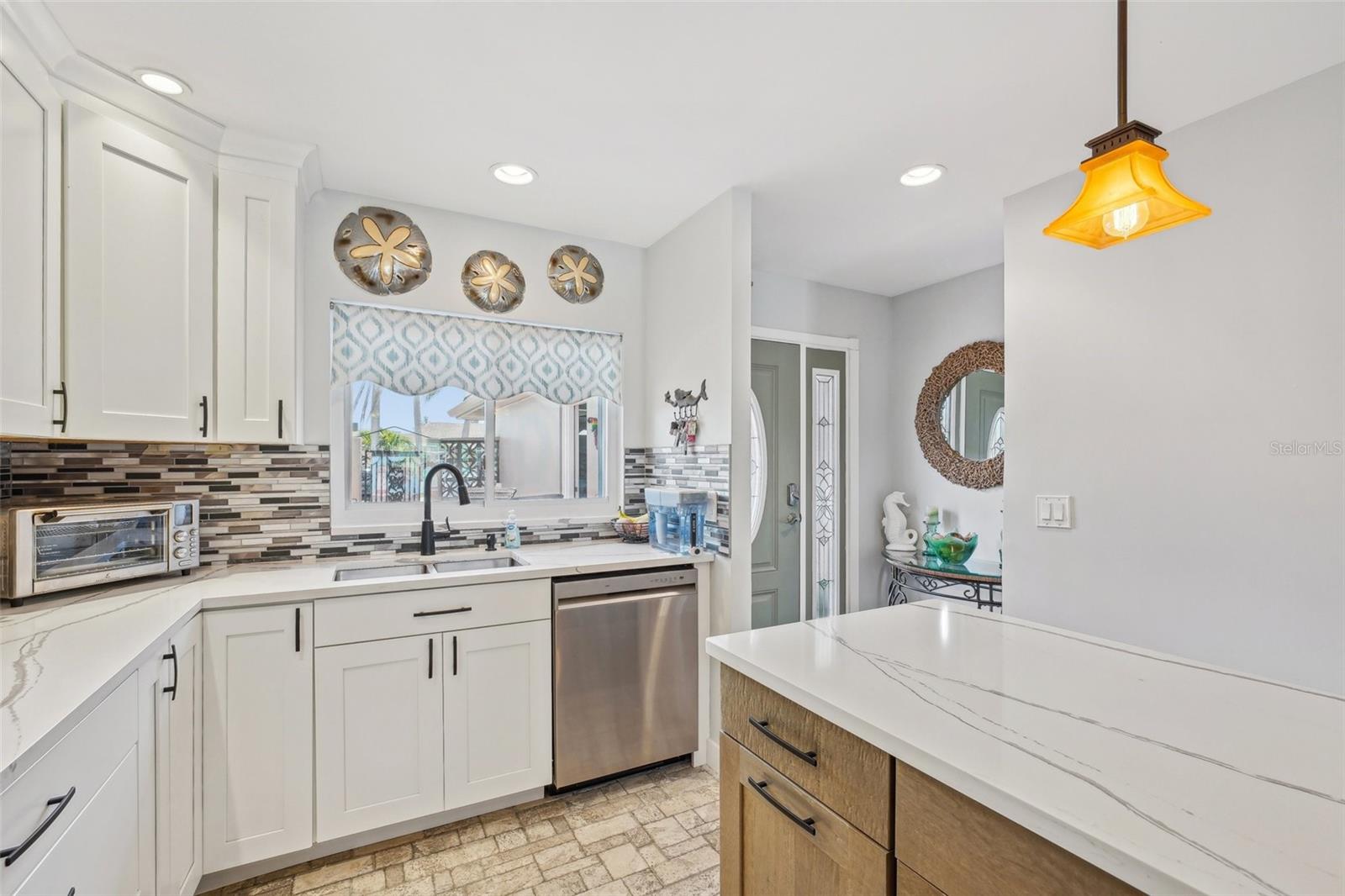 Waterfront Perfection in Boca Ciega Point (a 55+ Active Community in St. Petersburg) – Fully Renovated 2 Bedroom/2 Bathroom 1400SF Villa with Boat Lift, Flood Protection, & Luxury Upgrades. A Brand New $30,000 (per residence - Already Paid by Seller) Garrison Flood Gate System is being installed—a high-performance aluminum barrier system designed to protect your home from flooding, providing peace of mind in all seasons. 467 Boca Ciega Point Blvd S offers the ideal blend of style, comfort, and functionality—with direct water access, luxury finishes, and maintenance-free living. Enjoy over 300SF of additional living space in the finished Florida room, which opens out to your private waterfront deck and 10,000 lb boat lift on the widest part of the canal—just 60 seconds to the Intracoastal Waterway and minutes to the Gulf via John’s Pass. Inside, no detail was spared: the open-concept layout features a stunning kitchen with all-new stainless steel appliances, dramatic 11-foot quartz island, custom cabinetry, modern backsplash, and a dry bar with beverage cooler—perfect for entertaining. The entire home is adorned with designer tile flooring, modern 5¼" baseboards, and two spa-like bathrooms with custom walk-in showers. This light-filled home featured tinted sliding glass doors throughout, complete with built-in blinds, helping keep the home cool while offering expansive water views from the kitchen, living room, sun-room, and primary suite. Both bedrooms are oversized and comfortably fit king-sized sets. The garage is freshly painted, includes upper storage cabinetry, and still accommodates a vehicle. The private front courtyard offers a sunny retreat perfect for enjoying the Florida breeze. As part of Boca Ciega Point, you’ll enjoy world-class amenities: two clubhouses, heated pool, gym, putting green, saunas, boat club, tennis & pickle ball courts, shuffleboard, and regular community events including happy hours. Your HOA fees cover nearly everything: Multi-Peril/Flood insurance, 24-hour security gate, cable TV, internet, water, sewer, trash, grounds maintenance, and exterior upkeep—making this a truly worry-free, maintenance-free lifestyle. Why pay more elsewhere? This is your opportunity to own a like-new waterfront home with premier boating access, at a fraction of the cost and taxes of similar properties. Schedule your private tour today and discover the ultimate lifestyle in Florida waterfront living!