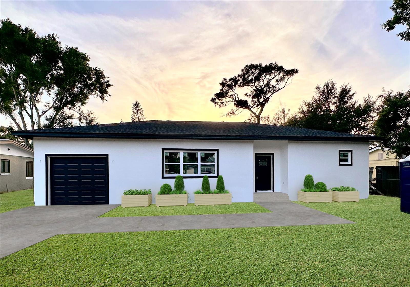 One or more photo(s) has been virtually staged. Under Construction. Under Construction – Estimated Completion June 2025! Discover this brand-new, block-constructed home in the heart of St. Petersburg, offering over 2,000 sq ft of stylish, modern living. This thoughtfully designed residence features 3 spacious bedrooms, 2 full baths, and a 1-car garage. Soaring 10-foot ceilings and an open-concept floor plan create a bright, expansive feel throughout. The gourmet kitchen is equipped with sleek quartz countertops, stainless steel appliances, an undermount sink, and contemporary finishes—perfect for everyday living and entertaining. The luxurious primary suite includes a dual-sink vanity, a spa-inspired bathroom, and a generous walk-in closet. Additional highlights include luxury vinyl plank flooring throughout and ceiling fans in every bedroom. Don’t miss the opportunity to own this beautifully crafted new build in a prime central location—convenient to beaches, downtown, shopping, and more!