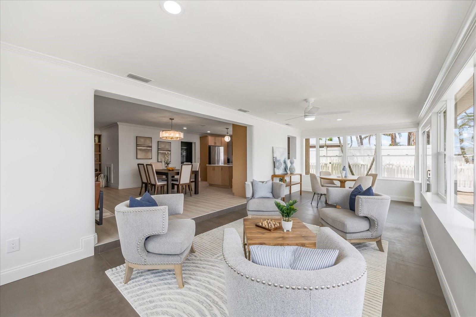 This is a must-see home—fully remodeled with impeccable taste and attention to detail throughout! Nestled in the highly desirable waterfront community of Causeway Isles, this stunning residence offers the perfect blend of luxury, style, and coastal living. Step inside to discover a bright, open floor plan, 4 bedrooms, 2 bathrooms, with all-new walls, outlets, luxury vinyl and tile flooring, solid wood cabinets, quartz countertops and backsplash. The chef’s kitchen shines with brand-new appliances, a double oven and a stylish wine bar complete with wine refrigerator—perfect for entertaining. Every detail has been thoughtfully upgraded: Gorgeous new light fixtures throughout, Modern vanities and sinks in fully renovated bathrooms, a sunroom featuring all-new hurricane impact windows and slider, perfect for game night or relaxing with a good book. Spacious pantry/mud room, with a plethora of cabinets for storage, and large laundry room for added function. Primary Bedroom has double vanity in the en-suite bathroom, walk-in closet with custom built-ins, and a slider direct to the pool and backyard. Outside, enjoy a private pool and spa, (salt system), boater’s dream amenities including a dock, davits, 10,000 lb boat lift, and no fixed bridges for quick Gulf access. New roof in 2021, paver driveway 2023. Installed after storms: new pool pump and pool heater, New HVAC system with warranty, new electric water heater. Property treated for pests inside and out monthly, lawn treated with fertilizer when appropriate, cut and trimmed weekly. Located just 2 miles from Treasure Island beaches and minutes from vibrant downtown St. Petersburg, you’ll love the proximity to dining, music, art, and the scenic Pinellas Trail. This turnkey coastal retreat truly has it all—schedule your private tour today!