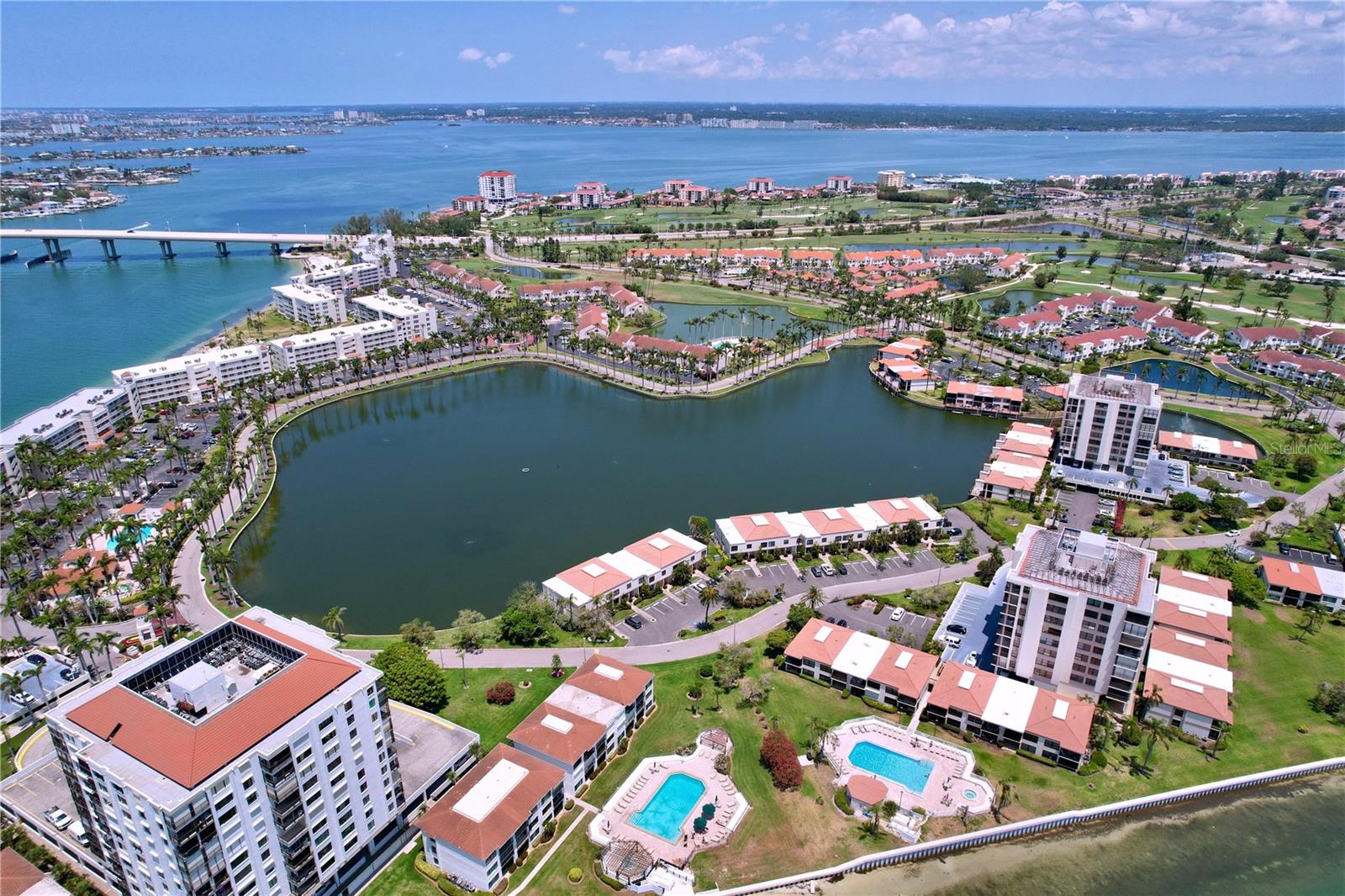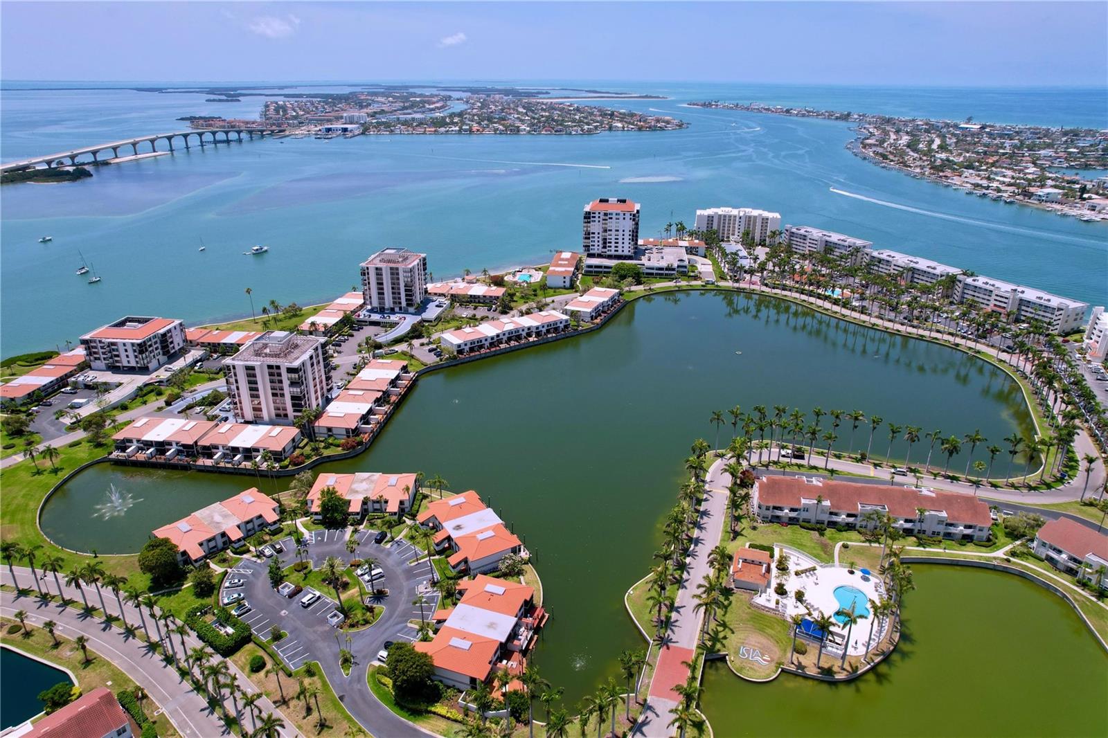 Island lifestyle awaits! Welcome to your Beautiful waterfront 3 bedroom, 2.5 bath townhome located directly on Bahia Del Mar Lake. This waterfront home features a spacious layout with the kitchen, open living/dining, half bath, storage and outdoor private deck all located on the first floor. The second floor features all living quarters complete with waterfront views from all 3 bedrooms. The two secondary bedrooms are both spacious and share a full bathroom with shower/tub combo. The primary bedroom with water views, features a walk in closet and ensuite bathroom. Enjoy morning coffee or evening refreshments from your 300+ sq spacious waterfront deck. Pool and hot tub sit on Boca Ciega Bay, located directly across the street from the unit. Updates include wood deck replaced (6/23), water softner (19), water heater (19), range (1/25) fridge (6/21), microwave (23).HOA includes basic cable & internet, water, sewer, trash, roof, fitness room, bike/kayak storage and 24 hour security within Bahia Del Mar. Excellent area for both beach enthusiasts and golf/tennis/pickleball enthusiasts. Membership for golf, tennis, pickleball, yacht and social as available for separate membership fee. Close to everything, just a quick bike ride or walk to award winning sugary sandy beaches. Ft Desota located on Tierra Verde features fishing piers, kayak rentals, bike paths, campground and opportunity to explore the fort, miles of beaches or the dedicated dog beach complete with views of the Skyway Bridge. Head West off and you will run directly on the Gulf coast line of St Pete Beach. You are just a short drive from Downtown St Pete featuring numerous restaurants, museums and the pier. There is always something going on nearby to keep all ages entertained. Easy drive to TIA and PIE airports. Close to it all but tucked away in a serene oasis. Looking for a part time Florida home, this could be the best fit as you can rent out the unit when you're not using it (30 day min). Call today to make this lifestyle yours!