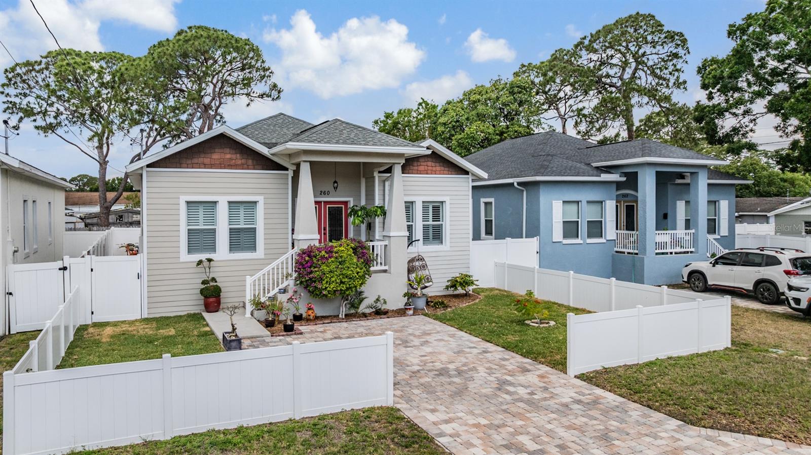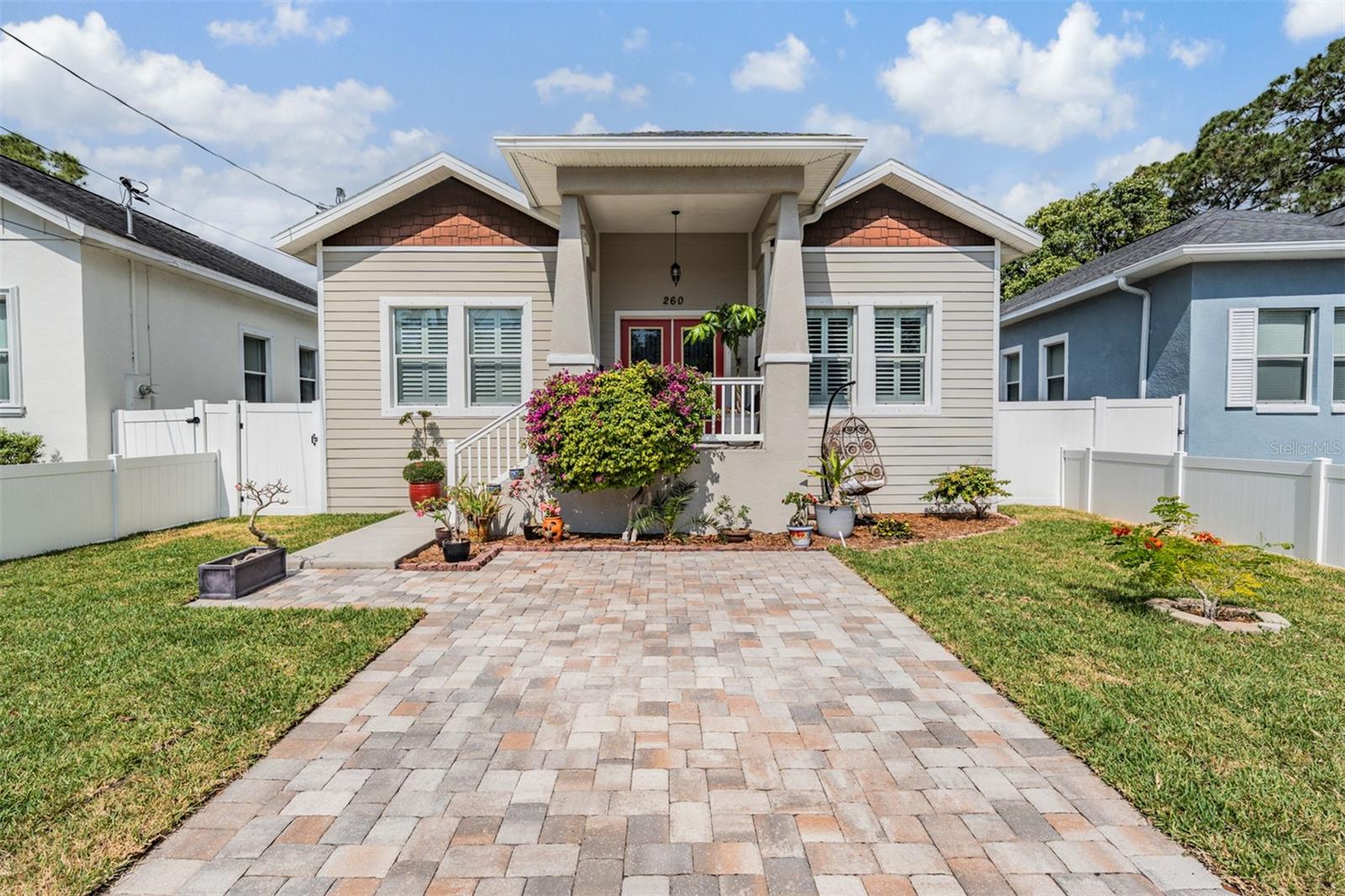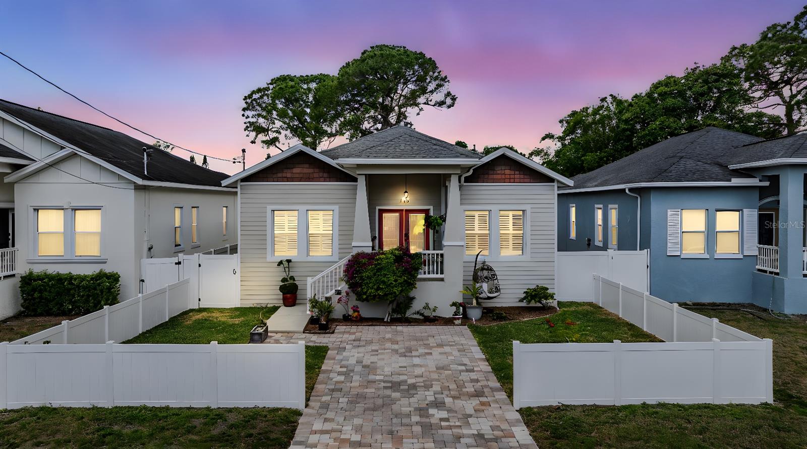 MOTIVATED SELLERS - NEW PRICE! Location, Location, Location on this Beautiful & Stylish, Fully Furnished Retreat in Sought-After Northeast St. Petersburg Experience effortless style in this impeccably maintained 3-bedroom, 2-bath residence built in 2018. It is ideally positioned in the heart of Northeast St. Petersburg. Just 8 years young, this beautifully appointed home blends timeless charm with modern sophistication and is offered fully furnished for a truly turnkey opportunity. You will appreciate the builder’s attention to detail to include a paver front driveway for your guests, tiled steps that lead you up to the beautiful glass French entry doors. Step inside to discover a sun-drenched open-concept layout designed for both relaxation and entertaining. The chef-inspired kitchen is a showstopper, featuring gleaming solid surface countertops, a generous island with breakfast bar seating, stainless steel appliances, and chic designer lighting that adds a touch of contemporary flair. The thoughtfully designed split-bedroom floor plan ensures privacy and tranquility. Retreat to the luxurious primary suite, where you'll find a spa-like en-suite bath with dual vanities, a frameless glass shower, and a custom walk-in closet designed for optimal organization. Two additional guest bedrooms share a sleek and stylish full bathroom. Additional highlights include a spacious indoor laundry room with the washer and dryer and an attached 1-car garage with convenient rear alley access. Outside, enjoy your own private oasis with a partially fenced front yard where a gate may be added and a fully fenced back yard that includes a cozy fire pit area for gathering under the stars. Plus a wonderful pergola for relaxing under. There is also ample space for a dog run and garden retreat. Built above flood level with No hurricane damage, this home offers peace of mind along with impressively low insurance rates—just $1,000/year for flood & IT IS Transferable and $2,500/year for homeowners. A large tankless water heater provides added efficiency and comfort. All of this just minutes from the vibrant energy of downtown St. Petersburg, where world-class dining, boutique shopping, and stunning waterfront parks and marinas await. Not to mention minutes from the Beaches and Airports! Don’t miss this rare opportunity to own a move-in-ready gem in one of Tampa Bay’s most desirable neighborhoods—schedule your private tour today.