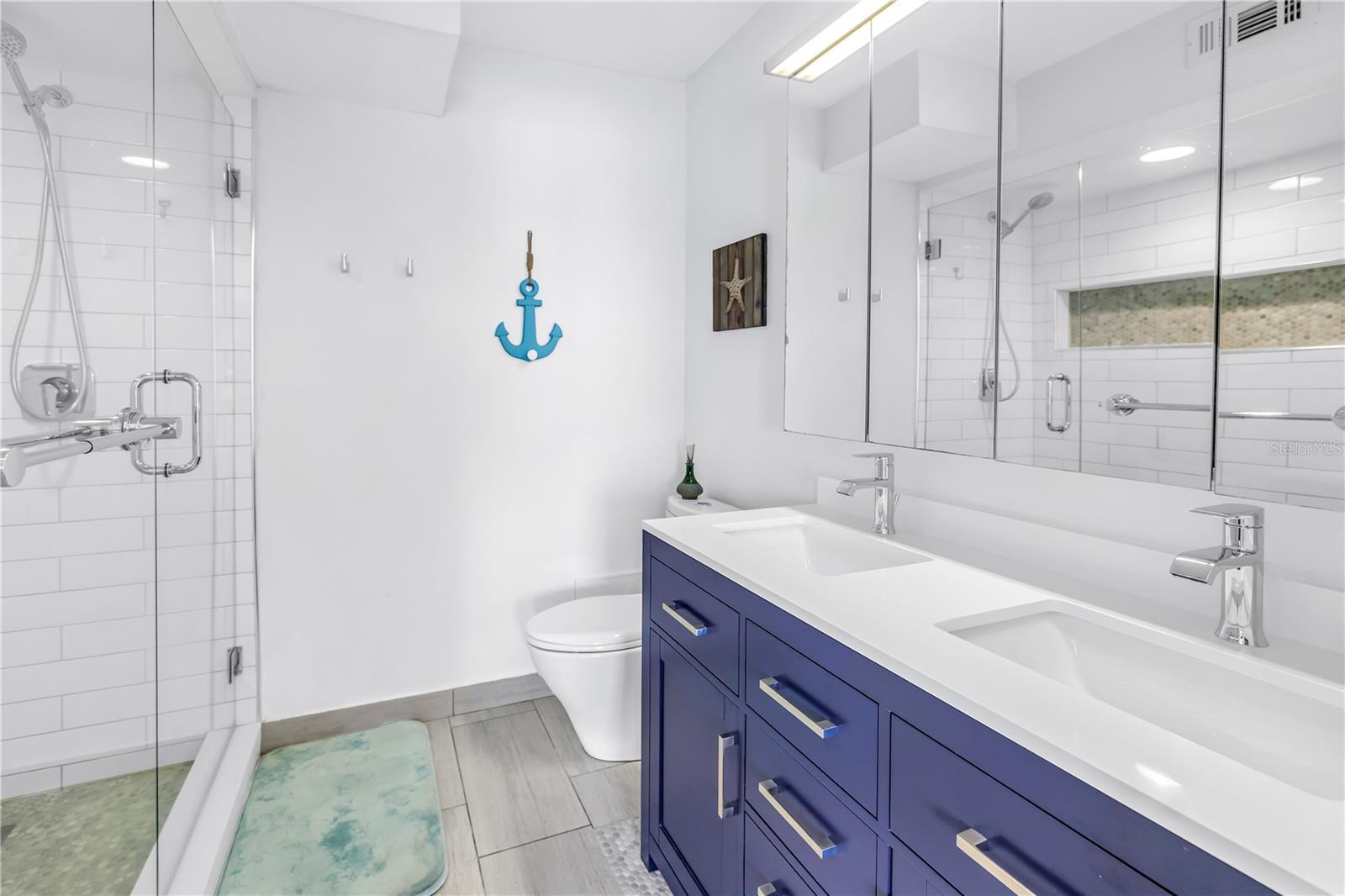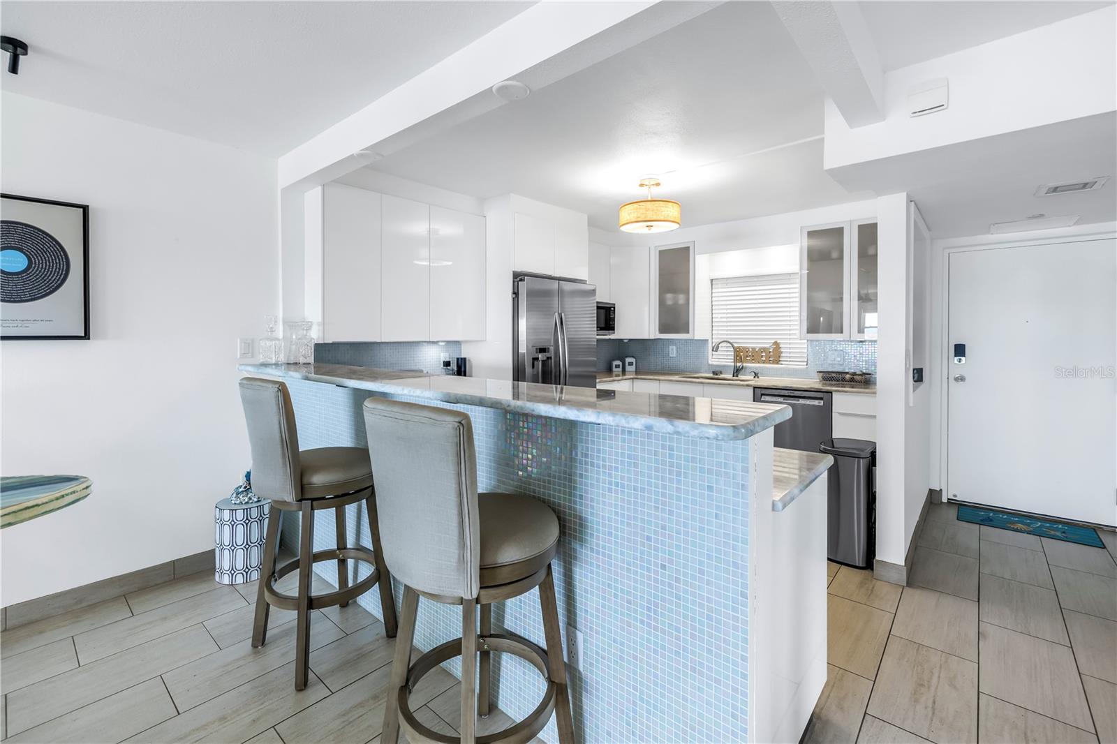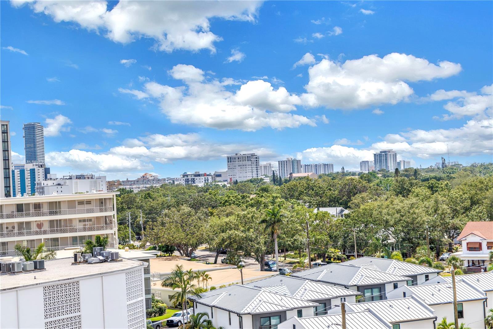 Priced to sell! Enjoy breathtaking, expansive VIEWS of TAMPA BAY from this BEAUTIFULLY UPDATED corner unit ideally located just minutes from major interstates and within easy walking distance to the heart of DOWNTOWN ST. PETERSBURG and BEACH DRIVE—including the iconic pier, art museums, concert venues, premier shopping, festivals, and numerous fantastic restaurants. Nestled near the sought-after Old Northeast neighborhood, this condo features some furniture, a desirable split-bedroom floor plan with a spacious, primary ensuite. The interior has been freshly painted and the the primary bathroom has been newly renovated with dual sinks, huge mirrored bathroom storage cabinets, tile shower and a linen closet. Throughout the home, you’ll find elegant tile flooring, stylish lighting and ceiling fans. The abundant natural lighting highlights the OPEN CONCEPT layout. The kitchen is a chef’s dream, featuring slide-out drawers, tile backsplash, a bar, stone countertops, stainless steel appliances, including a newer stove with an air fryer oven, and a newer microwave. Additional highlights include a LARGE WALK IN CLOSET in the primary bedroom, a sizeable hallway storage closet, and an additional storage unit. Residents enjoy access to exceptional community amenities including an outdoor workout facility, lighted beach volleyball & tennis courts, pool, park with a dog park, bike trail, beach and a serene palm tree botanical garden. Don’t miss this! BUILDING HAS PASSED MILESTONE INSPECTION and RESERVE STUDY is COMPLETED. ALL ASSESSMENTS HAVE BEEN PAID. ROOF REPLACED 2024. NO HURRICANE DAMAGE TO THIS UNIT or THE BUILDING.