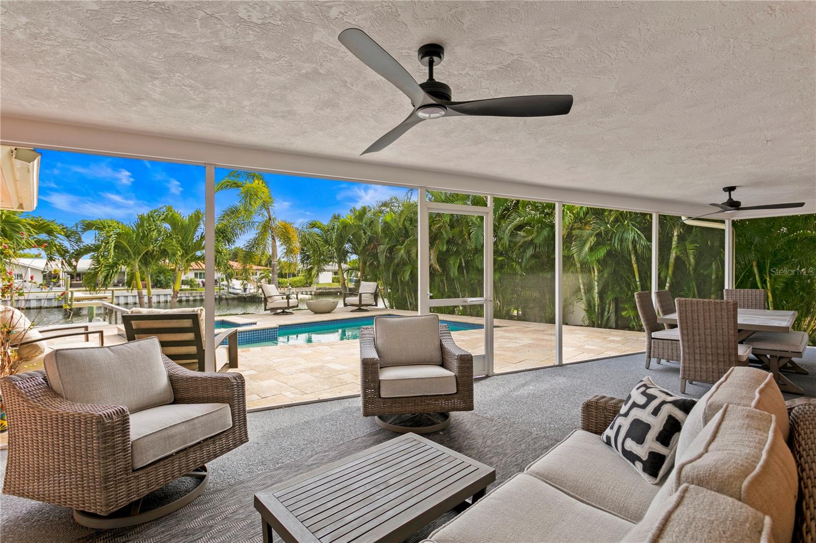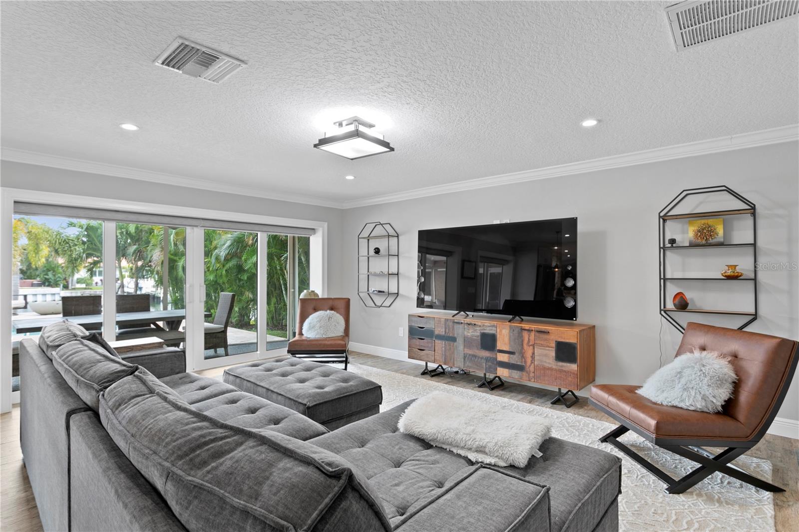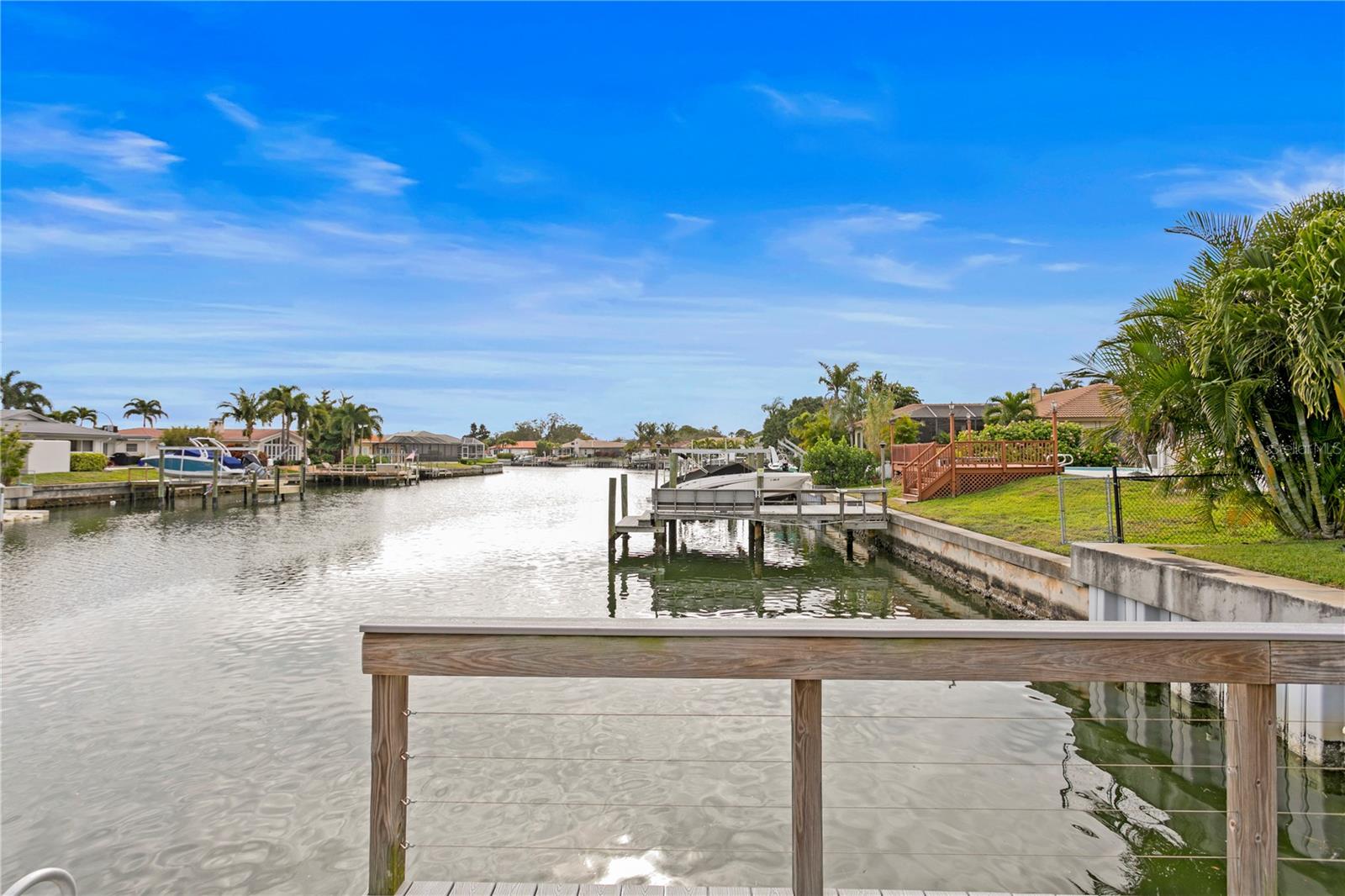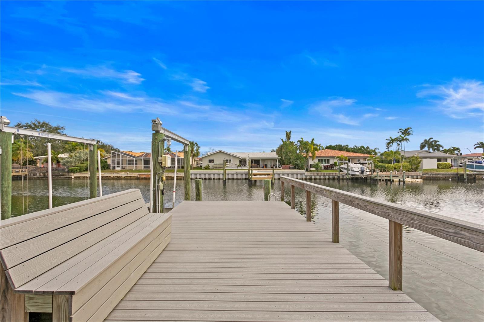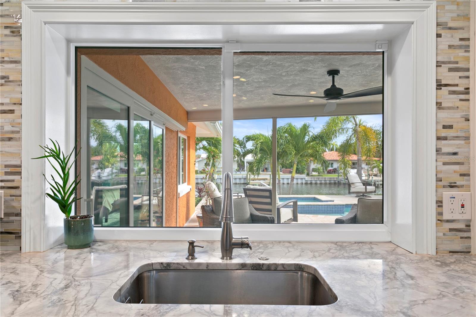 Don’t miss your opportunity to own this stunning home in the highly sought-after waterfront community of Venetian Isles! This beautiful 4-bedroom, 3-bath residence offers the perfect blend of luxury, comfort, and modern coastal living. Step inside to an expansive open-concept layout where the family room, kitchen, and dining area flow seamlessly into a screened lanai and beautifully landscaped backyard—perfect for effortless indoor-outdoor entertaining. The home welcomes you with a spacious foyer or a convenient mudroom entrance from the two-car garage. Throughout the living spaces, wood-look ceramic tile creates a warm, elegant ambiance. At the heart of the home, the chef’s dream kitchen features a large U-shaped eat-in island with marble countertops and backsplash, high-end Café series stainless steel appliances, and stylish custom cabinetry. The interior laundry room is as functional as it is beautiful, complete with Whirlpool Cabrio washer and dryer, built-in cabinetry, utility sink, and marble tile accents. Thoughtfully designed for privacy, the home offers a split bedroom layout. The first guest bedroom enjoys a beautifully appointed full bath, while two additional bedrooms in a separate wing share a spa-like bathroom with Danze fixtures and designer finishes. The private master suite is a true retreat, showcasing a luxurious marble bathroom and a generous walk-in closet. Enjoy true Florida living with hurricane-rated sliding glass doors that fully pocket back, connecting your main living spaces to the screened lanai and creating a seamless indoor-outdoor experience. Whether you're relaxing by the heated saltwater pool and spa, or enjoying tranquil canal views from the cozy firepit corner, this backyard oasis has it all. Boaters will appreciate the composite dock with electric, water, a 10,000 lb. boat lift, and updated seawall (2017). The lush landscaping provides ample privacy and is enhanced by elegant outdoor lighting for evening ambiance. Best of all, this home has experienced no water damage from any hurricanes—a testament to its strong construction and elevated location. Homes like this in Venetian Isles don’t come around often—schedule your private showing today!