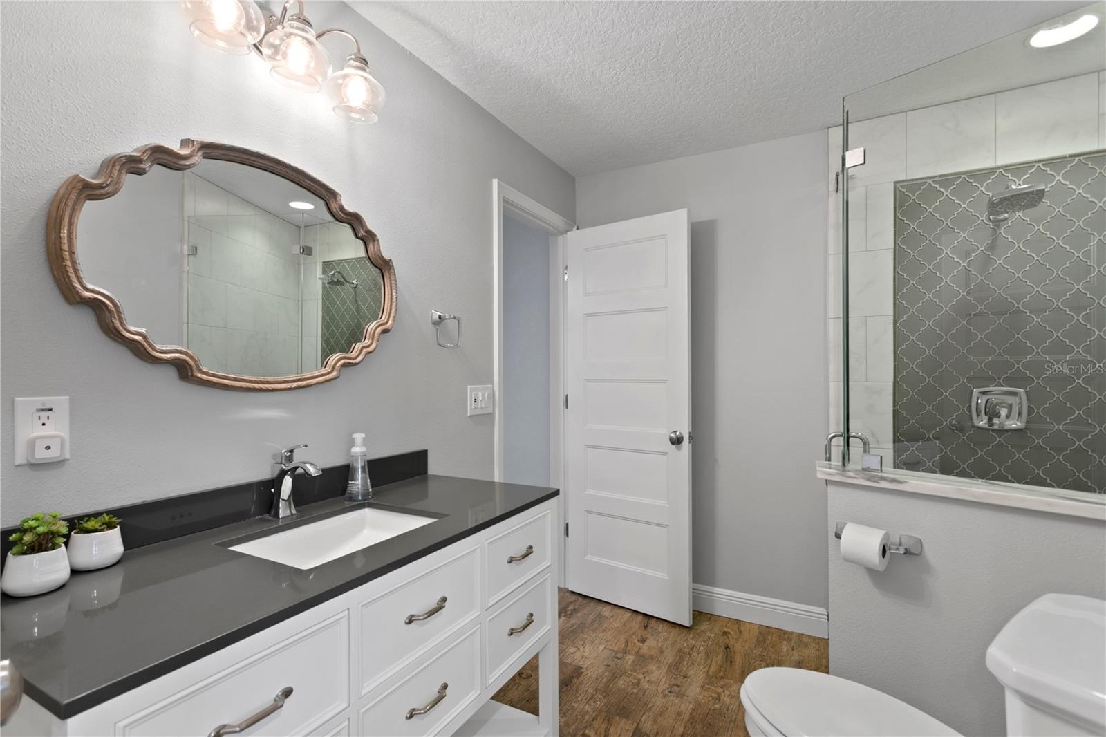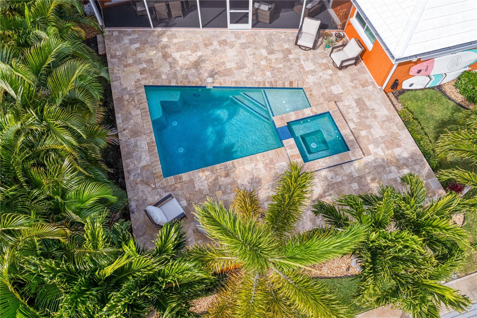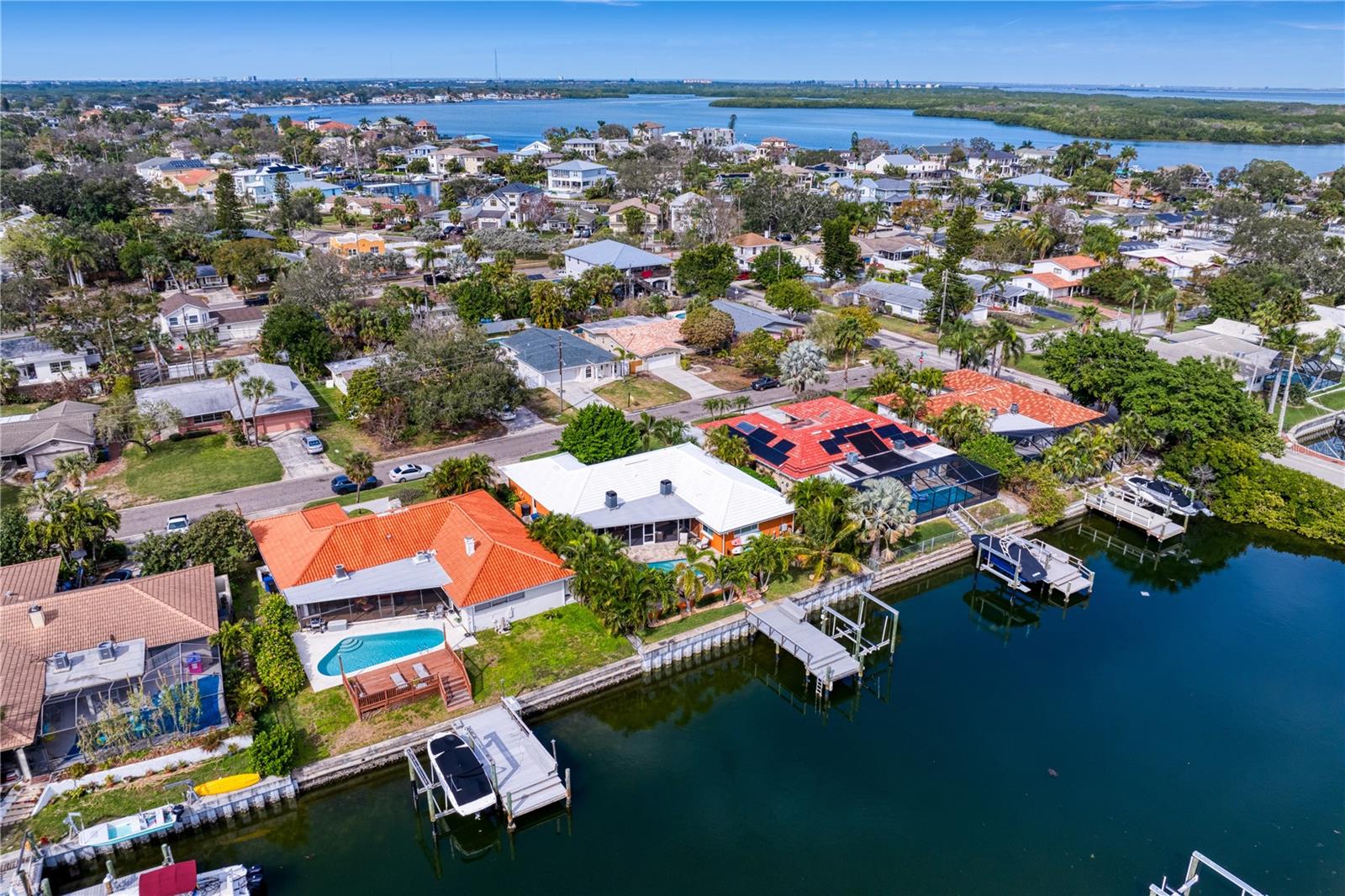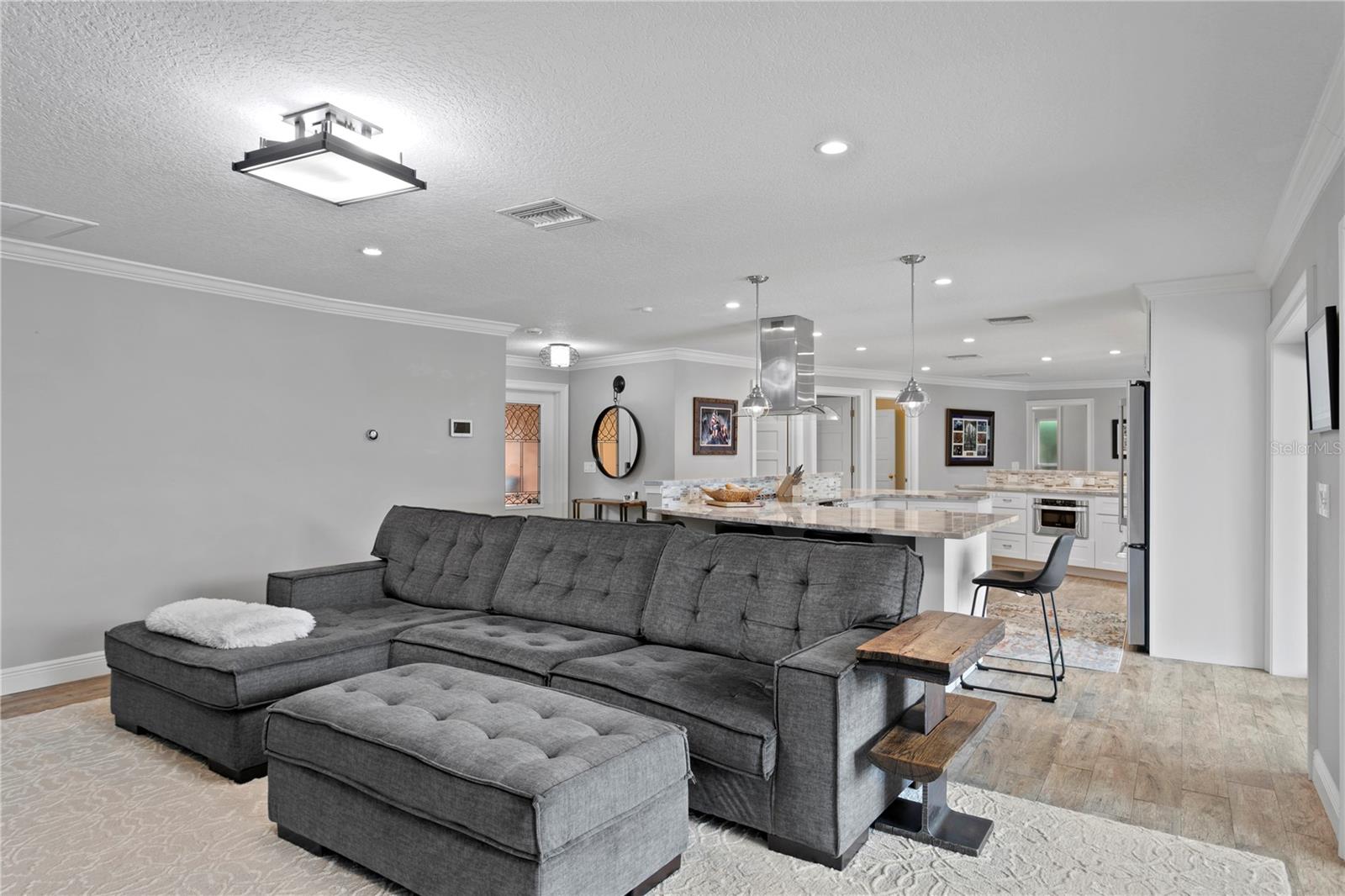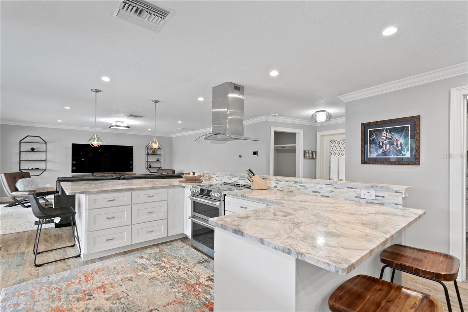 Don’t miss your opportunity to own this stunning home in the highly sought-after waterfront community of Venetian Isles! This beautiful 4-bedroom, 3-bath residence offers the perfect blend of luxury, comfort, and modern coastal living. Step inside to an expansive open-concept layout where the family room, kitchen, and dining area flow seamlessly into a screened lanai and beautifully landscaped backyard—perfect for effortless indoor-outdoor entertaining. The home welcomes you with a spacious foyer or a convenient mudroom entrance from the two-car garage. Throughout the living spaces, wood-look ceramic tile creates a warm, elegant ambiance. At the heart of the home, the chef’s dream kitchen features a large U-shaped eat-in island with marble countertops and backsplash, high-end Café series stainless steel appliances, and stylish custom cabinetry. The interior laundry room is as functional as it is beautiful, complete with Whirlpool Cabrio washer and dryer, built-in cabinetry, utility sink, and marble tile accents. Thoughtfully designed for privacy, the home offers a split bedroom layout. The first guest bedroom enjoys a beautifully appointed full bath, while two additional bedrooms in a separate wing share a spa-like bathroom with Danze fixtures and designer finishes. The private master suite is a true retreat, showcasing a luxurious marble bathroom and a generous walk-in closet. Enjoy true Florida living with hurricane-rated sliding glass doors that fully pocket back, connecting your main living spaces to the screened lanai and creating a seamless indoor-outdoor experience. Whether you're relaxing by the heated saltwater pool and spa, or enjoying tranquil canal views from the cozy firepit corner, this backyard oasis has it all. Boaters will appreciate the composite dock with electric, water, a 10,000 lb. boat lift, and updated seawall (2017). The lush landscaping provides ample privacy and is enhanced by elegant outdoor lighting for evening ambiance. Best of all, this home has experienced no water damage from any hurricanes—a testament to its strong construction and elevated location. Homes like this in Venetian Isles don’t come around often—schedule your private showing today!
