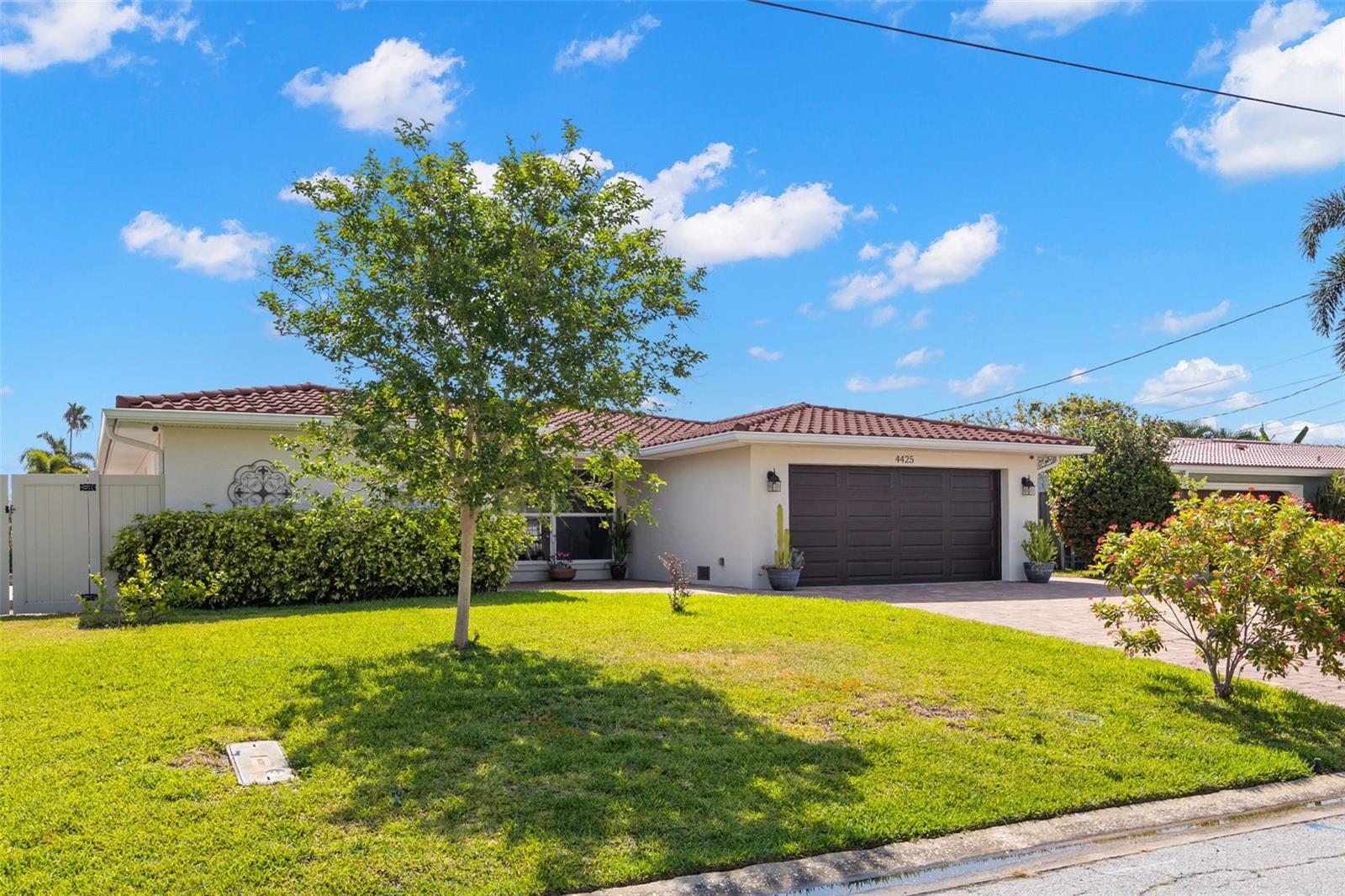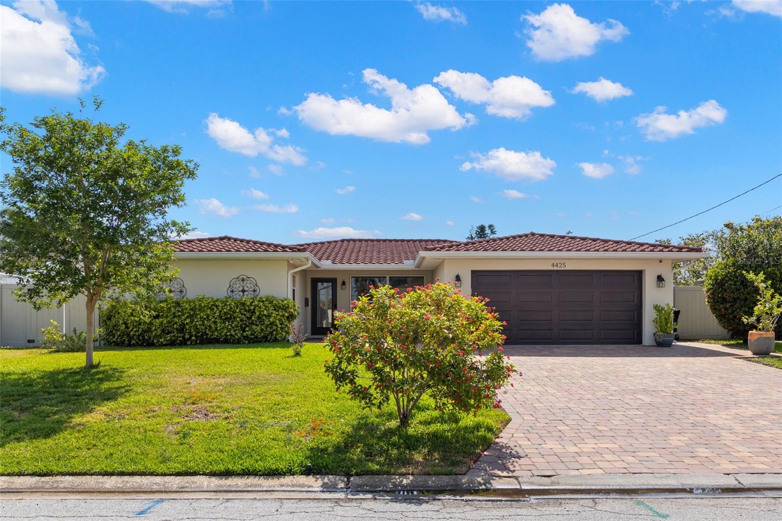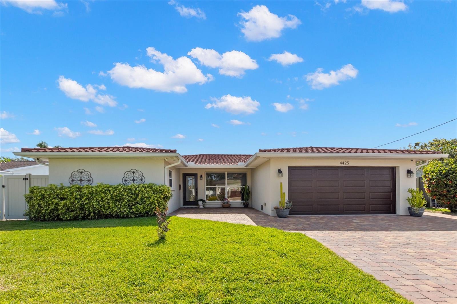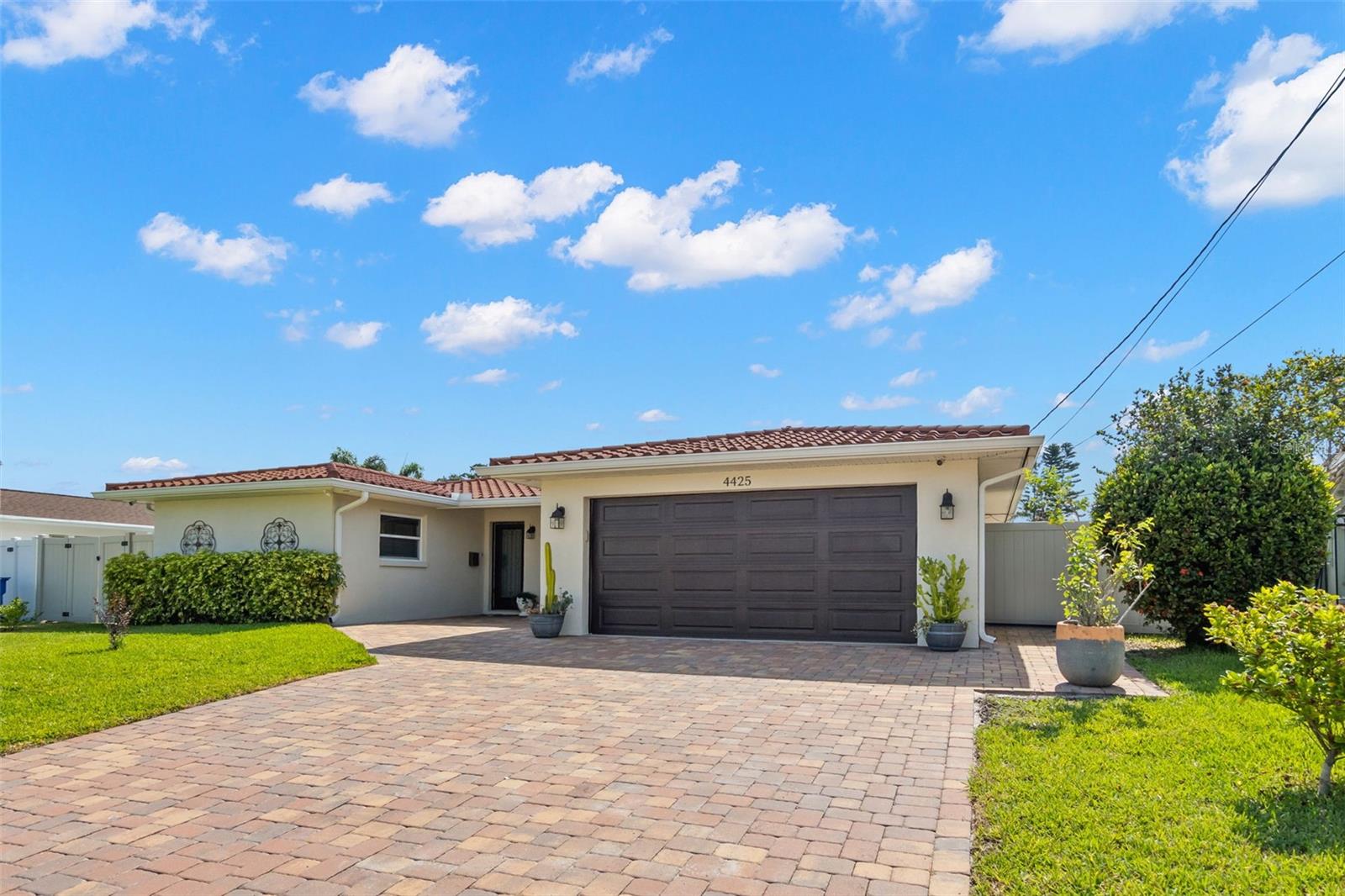 Coastal charm meets modern comfort at 4425 13th Way NE. *THIS HOME HAS NEVER EXPERIENCED FLOODING OR STORM DAMAGE* This fully renovated 3-bedroom, 2-bathroom block home offers the perfect blend of relaxed Florida living and updated, timeless design. With 1,622 square feet of thoughtfully updated space and 75 feet of pristine waterfront, it’s the kind of home that makes every day feel like a getaway. Inside, you’ll find an airy open layout and a lot of natural light. New flooring flows throughout the home, complementing the fresh finishes in every room. Both bathrooms feature stylish vanities and updated fixtures, while the completely remodeled kitchen is equipped with sleek appliances and designed to keep the water views front and center. Whether you're cooking, entertaining, or just enjoying a quiet morning coffee, the view is always there. The primary suite offers a peaceful retreat with calming waterfront views and room to relax. Two additional bedrooms are perfect for guests, family, or a home office setup. Additional upgrades include a new Decra metal barrel tile roof with an interlocking system that is known for its durability and long-lasting performance. This top of the line roof comes with a 50 year warranty, The oversized 2-car garage offers plenty of storage and the potential to convert part of the space into a convenient indoor laundry room or mudroom. Outside, you’ll find elegant pavers, a spacious patio area for outdoor living, and plenty of room to add a pool and truly make the backyard your own private oasis. Whether you're entertaining, watching dolphins from your dock, or simply soaking in the quiet waterfront views, this move-in ready home delivers the best of Florida living—just minutes from all the dining, shopping, and culture downtown St. Pete has to offer.