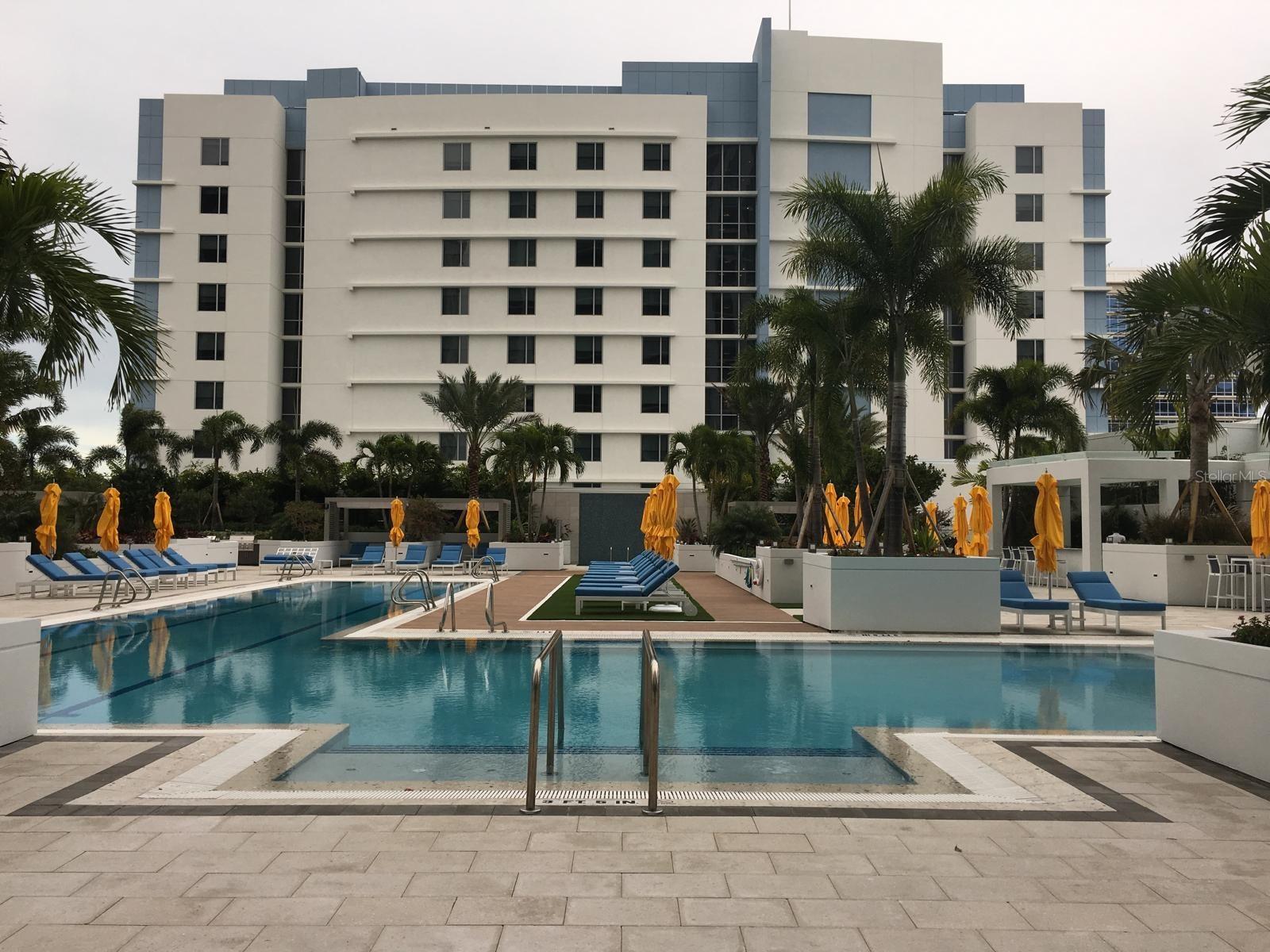 Live the ultimate urban lifestyle in this elegant 2-bedroom, 2.5-bath condo perfectly positioned in downtown St. Petersburg, just steps from the waterfront. Combining contemporary luxury with everyday convenience, this residence offers sweeping views, modern design, and unmatched walkability to premier shops, dining, and entertainment. The spacious open floor plan features floor-to-ceiling windows, sleek finishes, and an abundance of natural light. The gourmet kitchen is equipped with high-end appliances, custom cabinetry, and a large island perfect for hosting. Both bedrooms include en-suite full baths, while a stylish half bath provides added comfort for guests. Enjoy resort-style amenities including a state-of-the-art 5,000 sq. ft. fitness center, private cabanas, a lap pool, and a relaxing hot tub. Whether you’re unwinding at home or exploring the vibrant city scene, this waterfront condo is your sanctuary in the city.