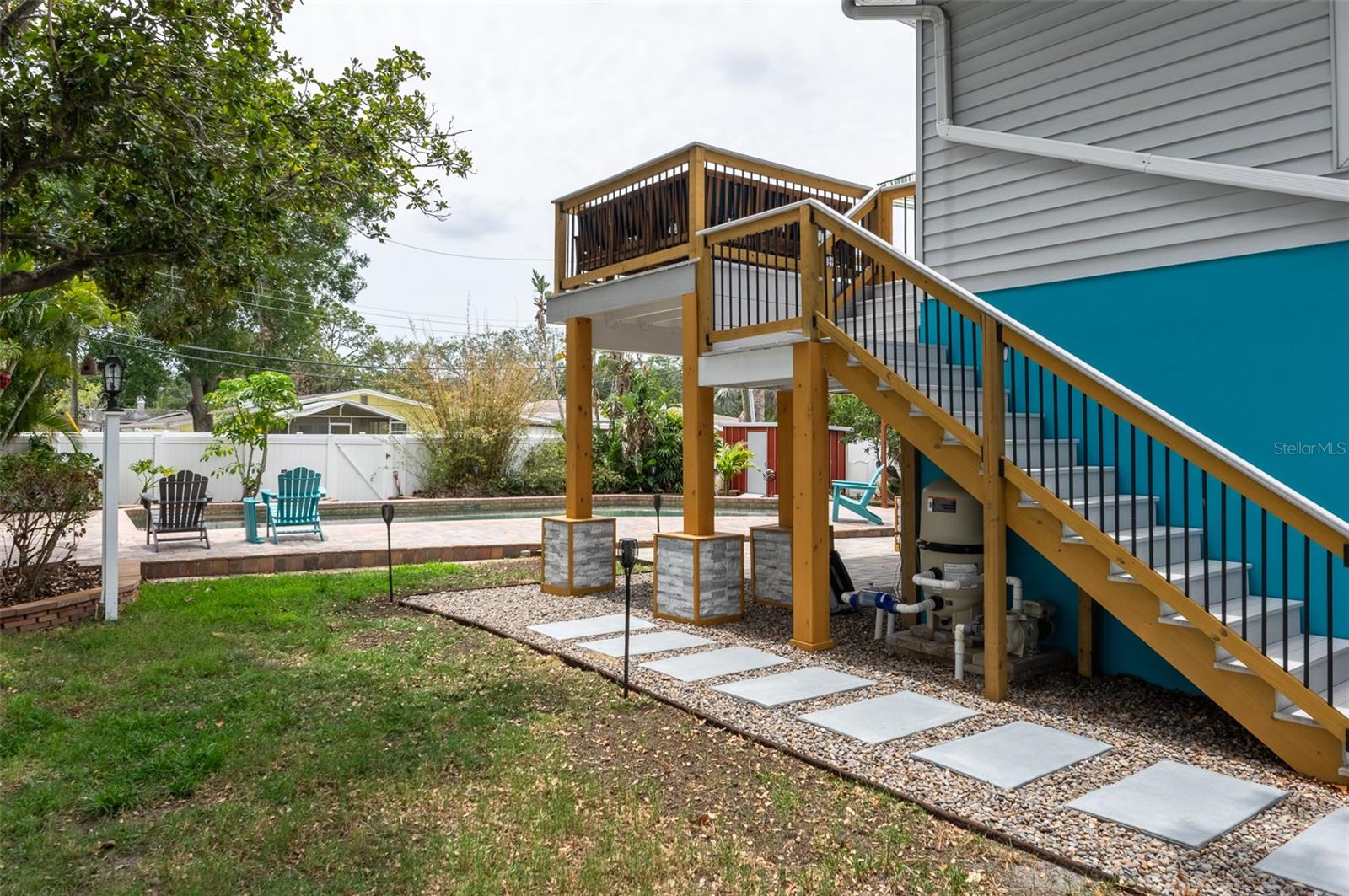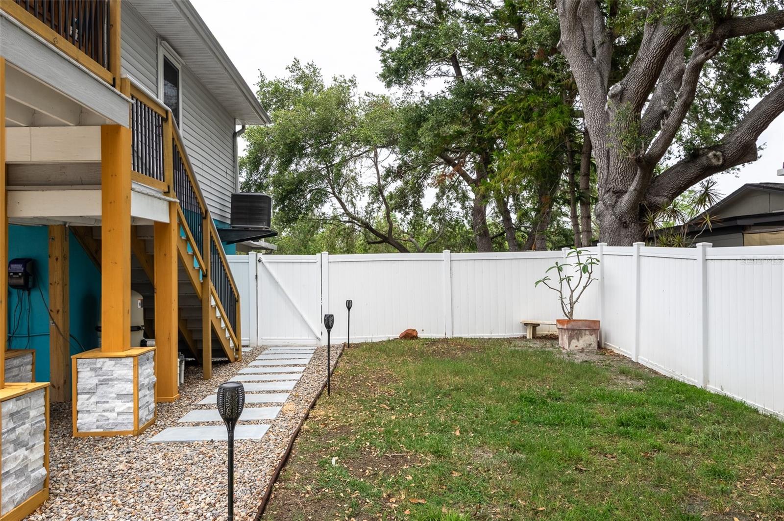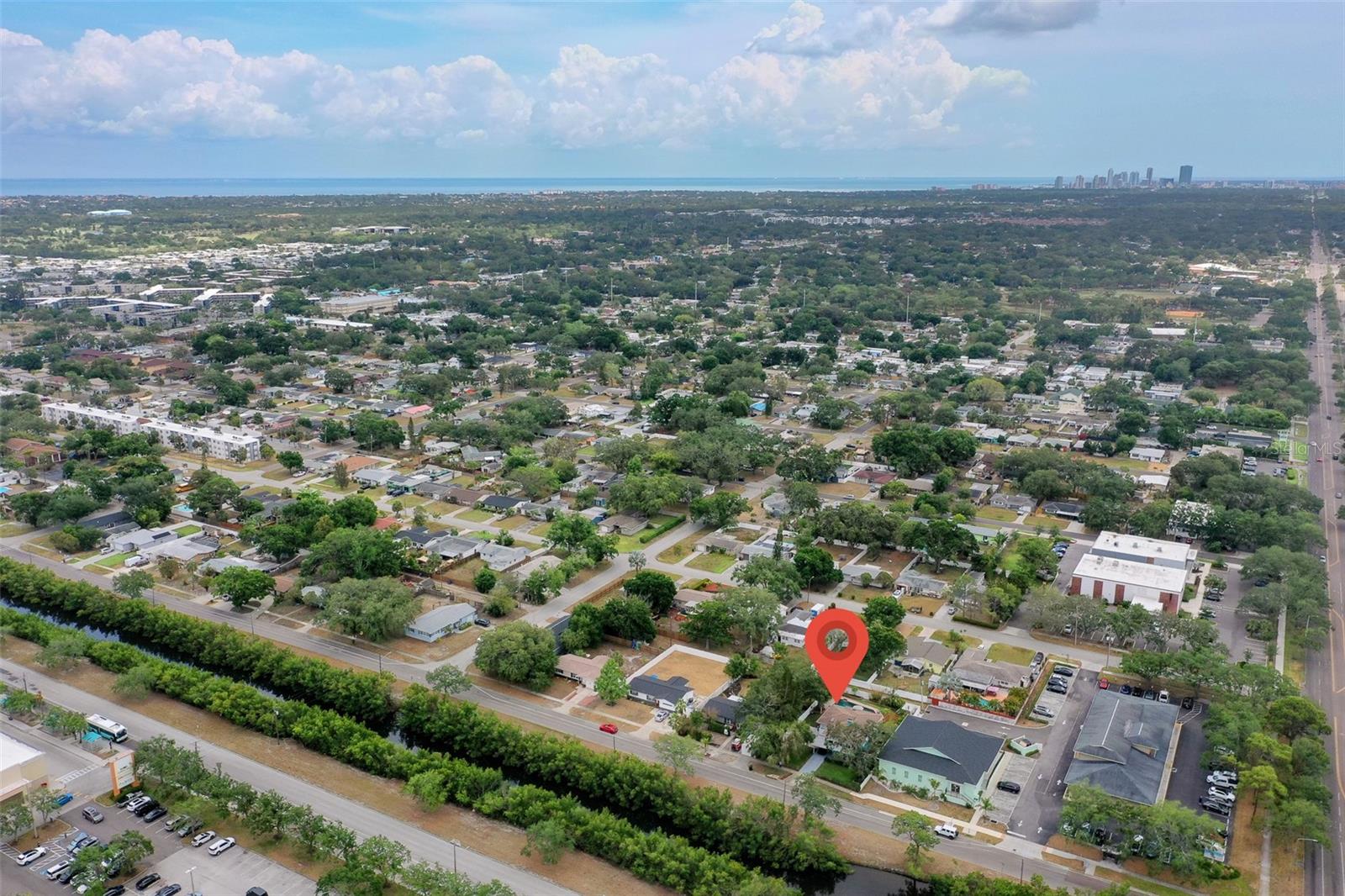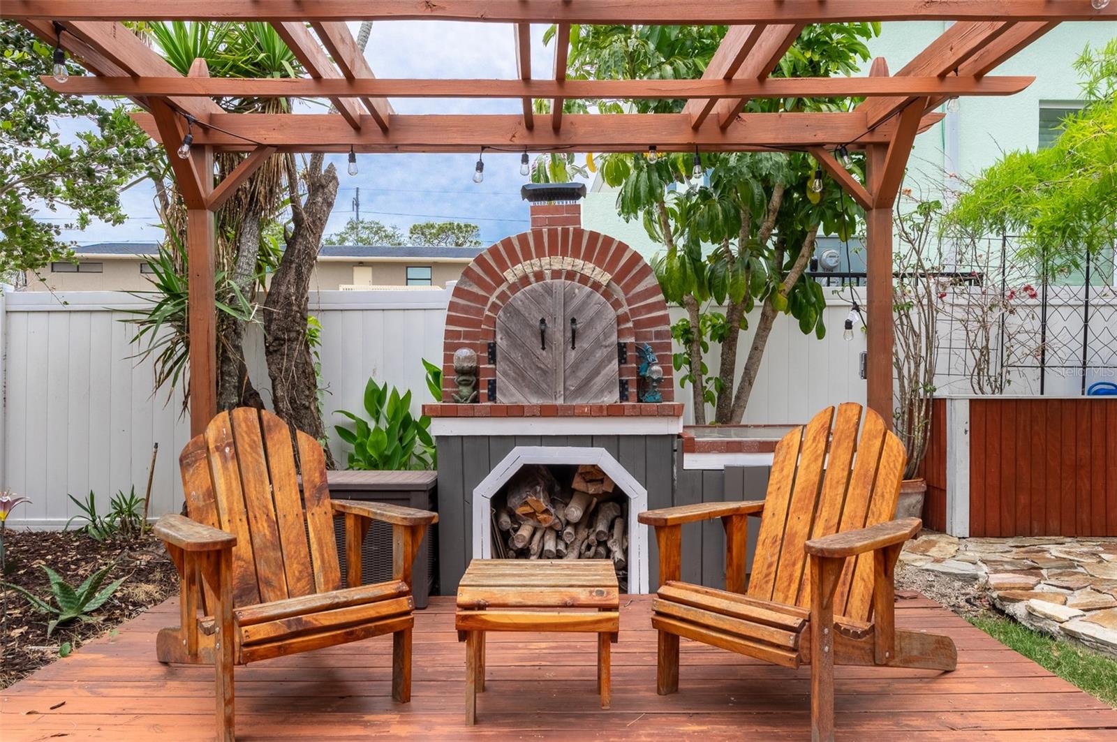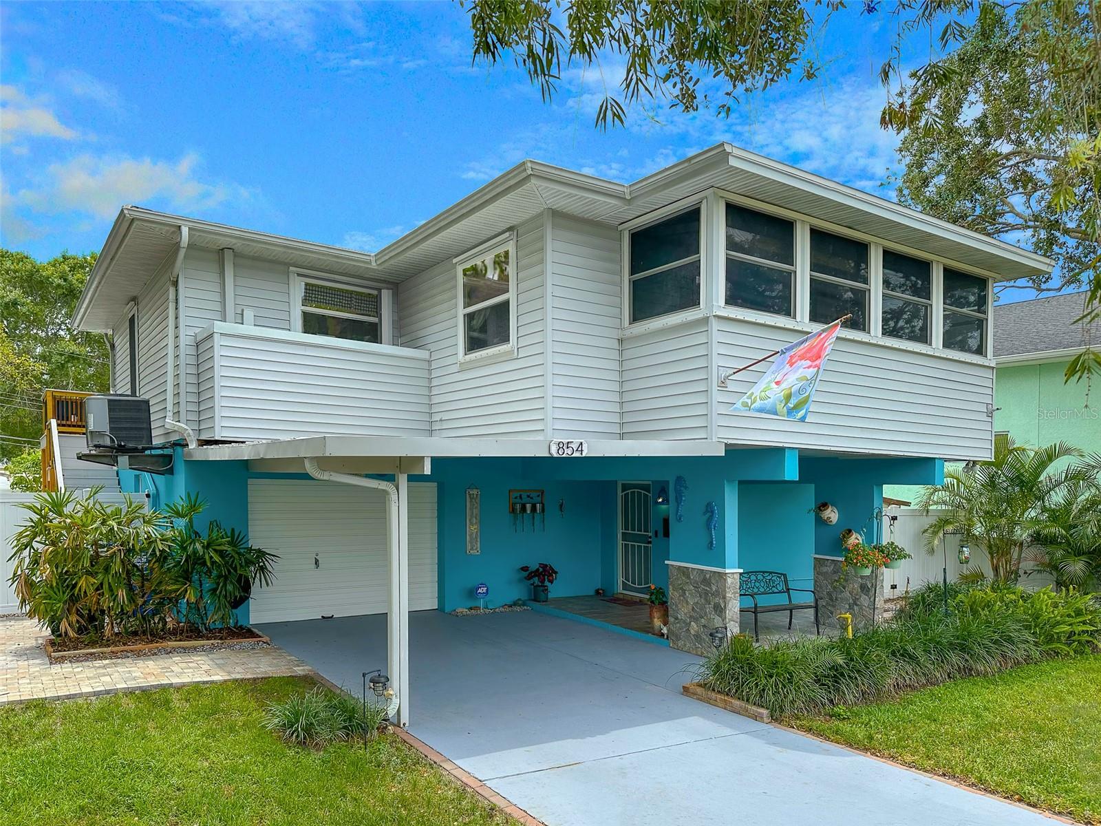 Your Personal Resort Awaits: Saltwater Serenity, Lush Privacy & Timeless Charm Welcome to 854 77th Avenue N, an enchanting sanctuary where every detail whispers "retreat." Nestled on an oversized 1.5 lot parcel in the heart of St. Petersburg, this private oasis effortlessly blends luxury and livability. Designed for those who crave everyday escape, the property offers a fully curated outdoor experience: a sparkling saltwater pool with new equipment(2024), a tranquil waterfall-fed pond, lighted pergola, outdoor oven, and over 400 square feet of premium composite decking; ideal for al fresco dining, yoga at sunrise, or cocktails under the stars. Step inside and discover nearly 1,600 square feet of elevated interiors, where even the bathrooms feel artfully composed. The carefully curated kitchen is anchored by sleek bamboo countertops, a warm and unexpected detail that elevates the space with natural sophistication and timeless style. The downstairs game room and bar beckon for lively nights in. A cozy wood-burning fireplace and hand-painted murals lend the upstairs living area warmth and whimsy, while sliding doors open to your upper-level breakfast nook overlooking the lush front garden and creek view below. Other thoughtful upgrades include a new irrigation system with pump (2024), hurricane shutters, new washer and dryer, and driveway with a garage and carport. The home’s flexible layout and generous outdoor footprint allow for a true multi-use lifestyle, be it quiet contemplation, playful gatherings, or simply living as if you're always on vacation. Located just 15 minutes to downtown St. Pete, 20 minutes to Tampa, and steps from Fossil Park, Gateway Mall, and the walkable treasures of North St. Pete, this home offers location and luxury in equal measure.