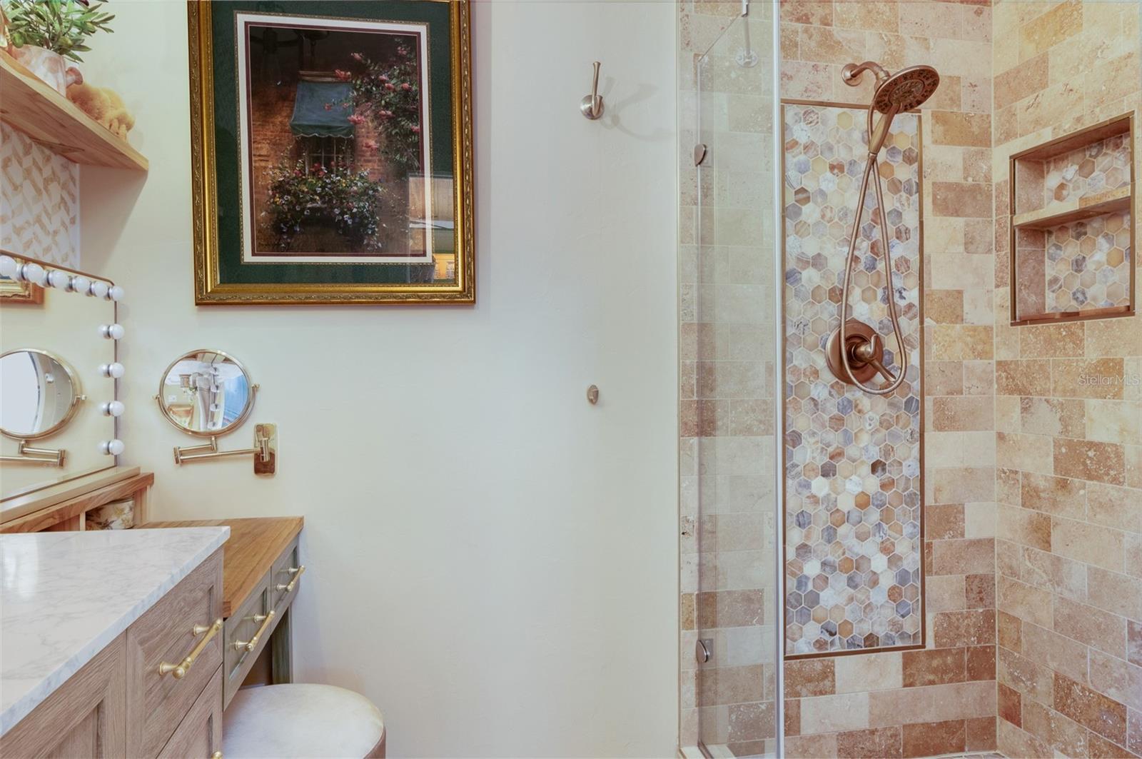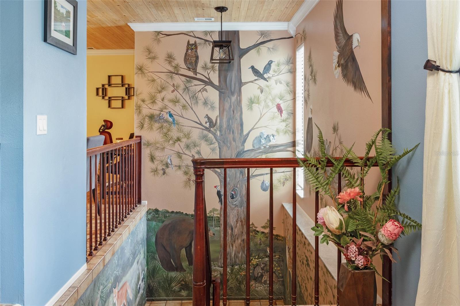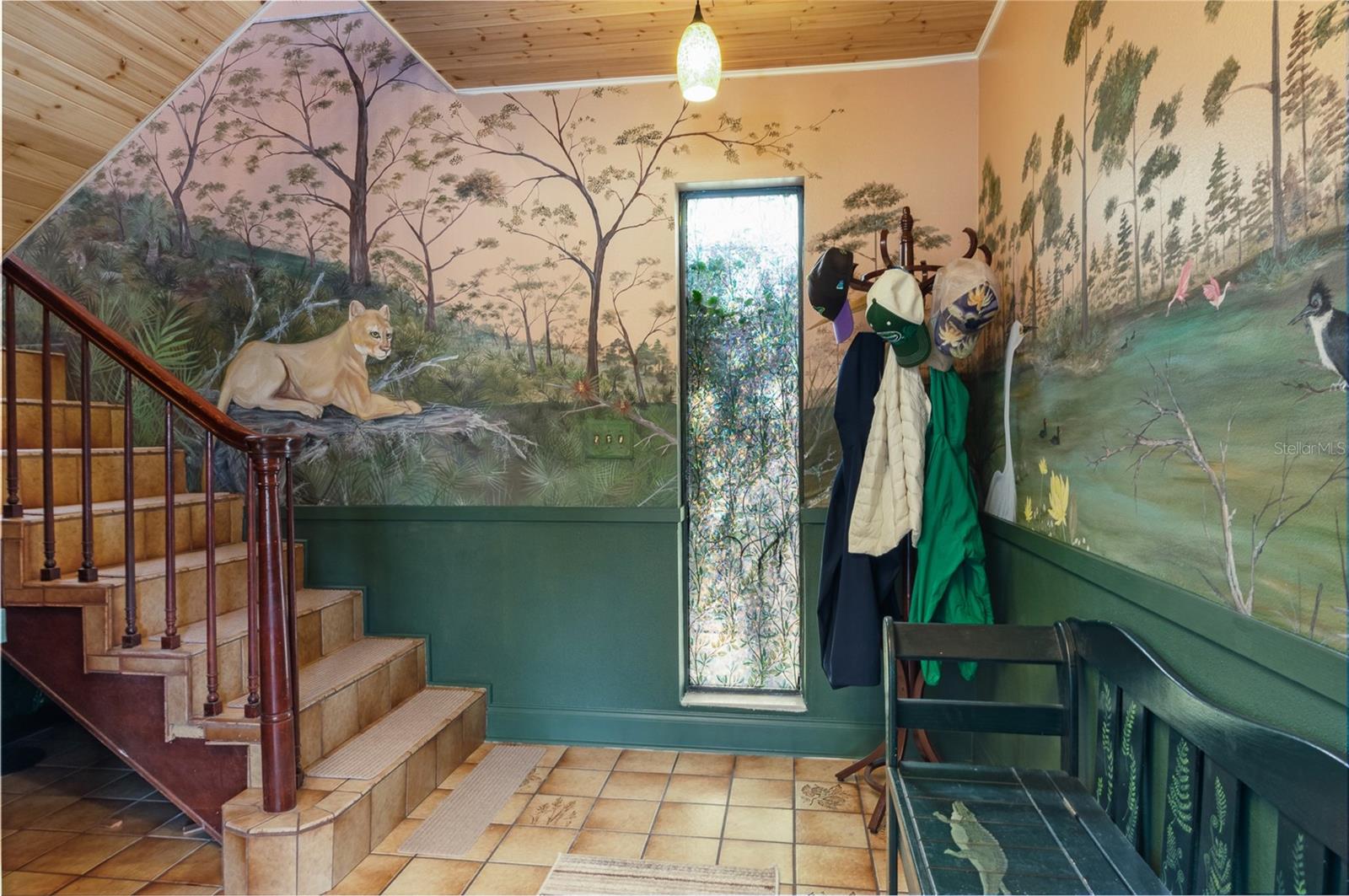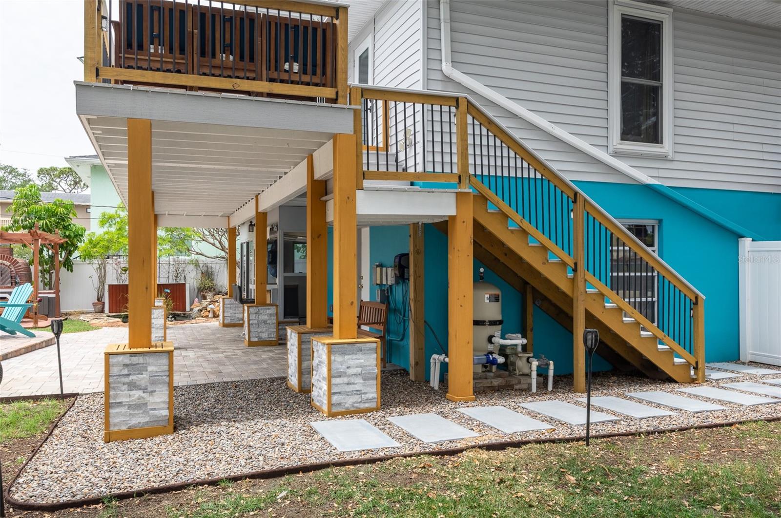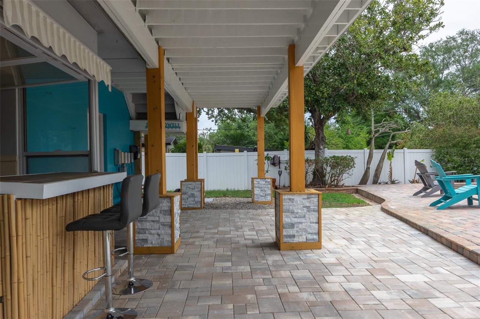 Your Personal Resort Awaits: Saltwater Serenity, Lush Privacy & Timeless Charm Welcome to 854 77th Avenue N, an enchanting sanctuary where every detail whispers "retreat." Nestled on an oversized 1.5 lot parcel in the heart of St. Petersburg, this private oasis effortlessly blends luxury and livability. Designed for those who crave everyday escape, the property offers a fully curated outdoor experience: a sparkling saltwater pool with new equipment(2024), a tranquil waterfall-fed pond, lighted pergola, outdoor oven, and over 400 square feet of premium composite decking; ideal for al fresco dining, yoga at sunrise, or cocktails under the stars. Step inside and discover nearly 1,600 square feet of elevated interiors, where even the bathrooms feel artfully composed. The carefully curated kitchen is anchored by sleek bamboo countertops, a warm and unexpected detail that elevates the space with natural sophistication and timeless style. The downstairs game room and bar beckon for lively nights in. A cozy wood-burning fireplace and hand-painted murals lend the upstairs living area warmth and whimsy, while sliding doors open to your upper-level breakfast nook overlooking the lush front garden and creek view below. Other thoughtful upgrades include a new irrigation system with pump (2024), hurricane shutters, new washer and dryer, and driveway with a garage and carport. The home’s flexible layout and generous outdoor footprint allow for a true multi-use lifestyle, be it quiet contemplation, playful gatherings, or simply living as if you're always on vacation. Located just 15 minutes to downtown St. Pete, 20 minutes to Tampa, and steps from Fossil Park, Gateway Mall, and the walkable treasures of North St. Pete, this home offers location and luxury in equal measure.