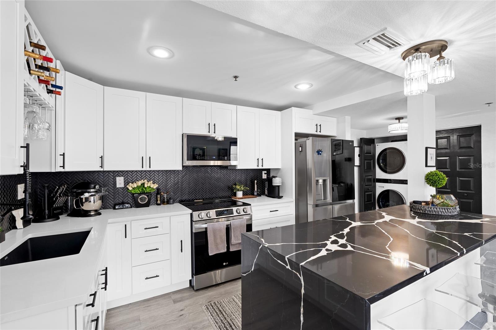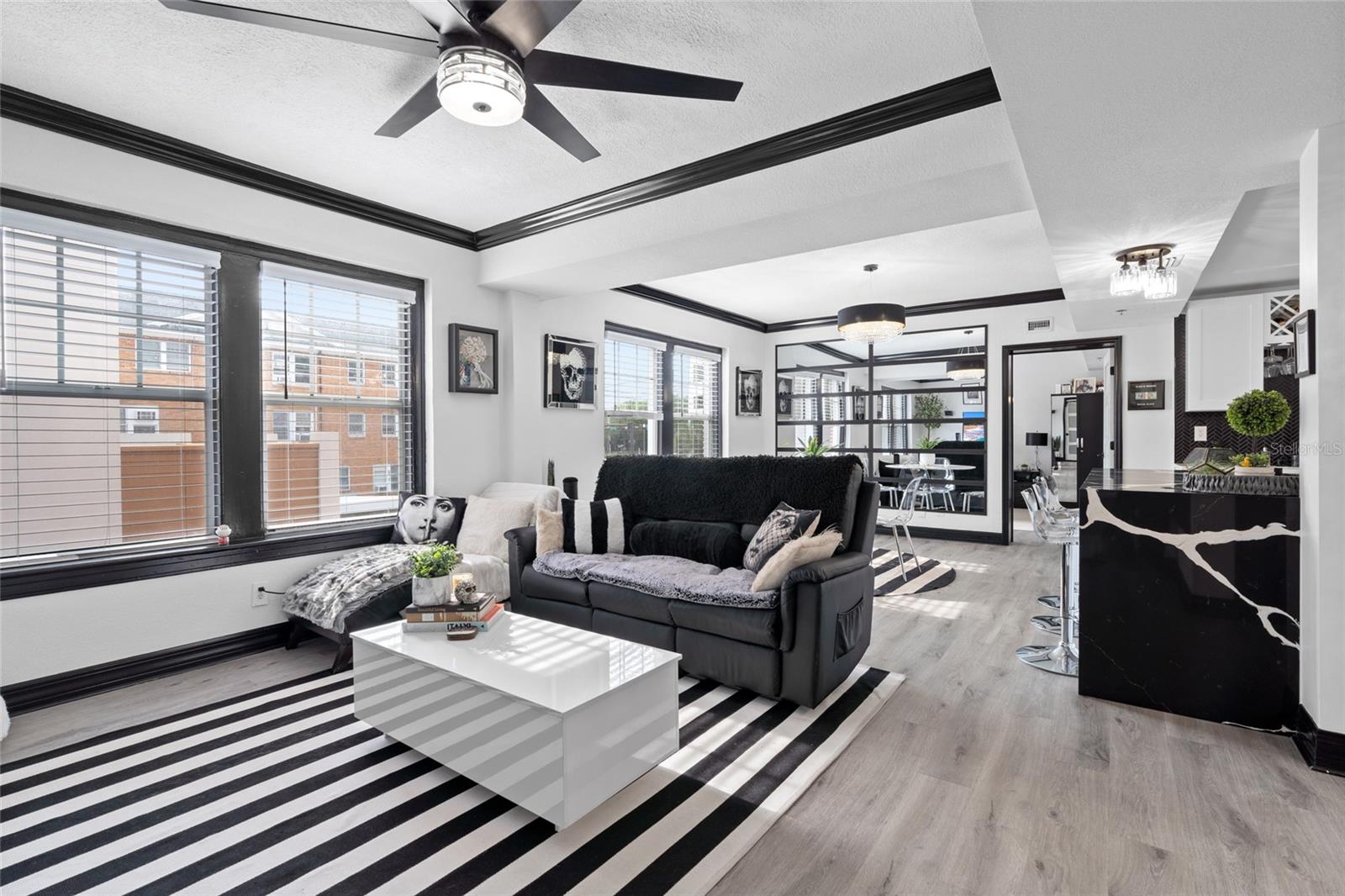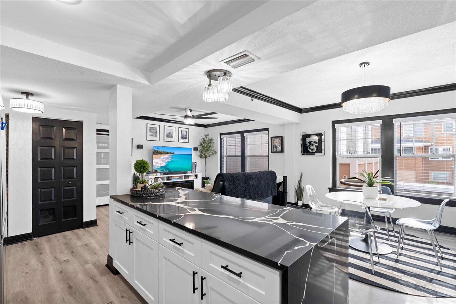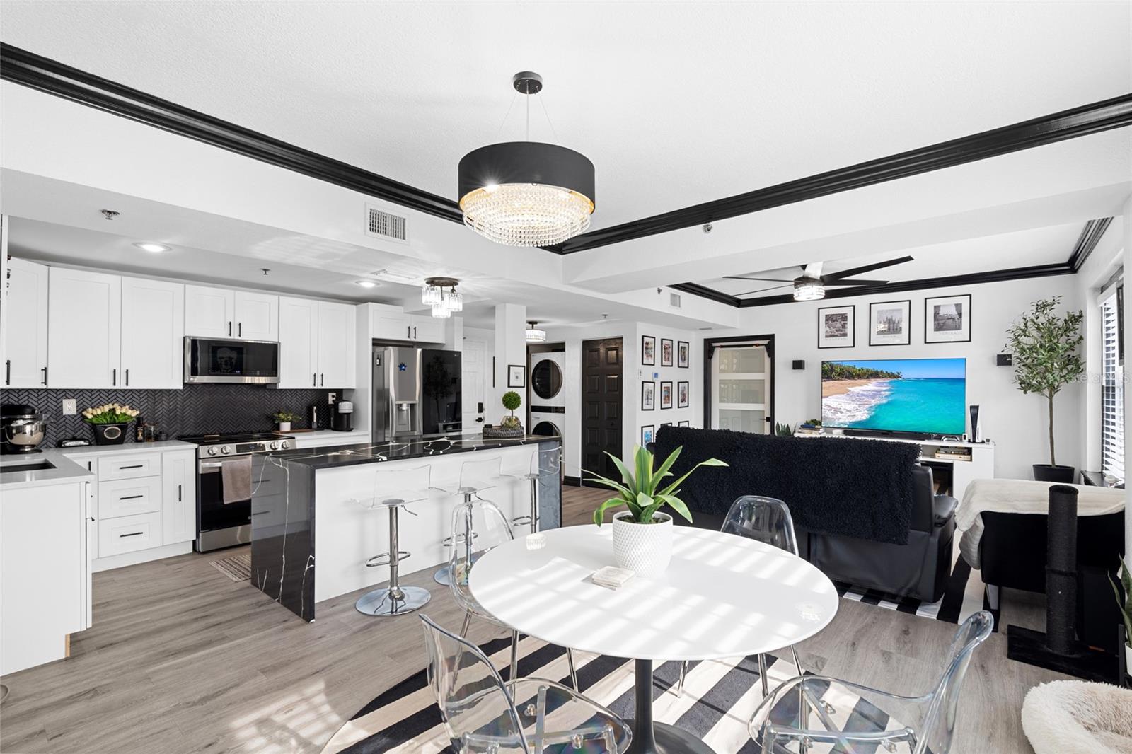 One or more photo(s) has been virtually staged. Welcome to 219 4th Ave N, Unit 201—where stylish downtown living meets modern comfort in this beautifully renovated 2-bedroom, 2-bath condo in the heart of vibrant St. Petersburg. No detail was overlooked in this top-to-bottom transformation in 2024, offering an elevated lifestyle just steps from Beach Drive, shopping, dining, and the waterfront. Step inside to rich, waterproof Pergo Pro+ WetProtect laminate flooring throughout, paired with fresh paint and sleek finishes that set a contemporary tone. The completely reimagined kitchen features all-new cabinetry, quartz countertops, a 2024 LG appliance suite (including fridge, oven, and microwave), custom lighting over the island, and even a pop-up countertop outlet for modern convenience. Both bathrooms have been completely gutted and rebuilt with frameless sliding glass shower doors, contemporary vanities, designer light fixtures, new toilets, and full tiled shower walls. Barn doors add a touch of privacy and style to each bath. Additional 2024 highlights include: LG Smart WashTower with front-load washer & dryer, Keyless digital front entry with app-enabled access, Modern ceiling fans and lighting fixtures throughout, Custom closet and bedroom doors with frosted glass, New HVAC and laundry closet doors for a clean, finished look. This turnkey unit delivers comfort, function, and luxury for those who want to be in the middle of it all—whether you're walking to coffee shops, grabbing a bite on Central Ave, or enjoying the Pier. Don't miss your chance to live in one of St. Pete’s most desirable downtown locations—schedule your showing today!