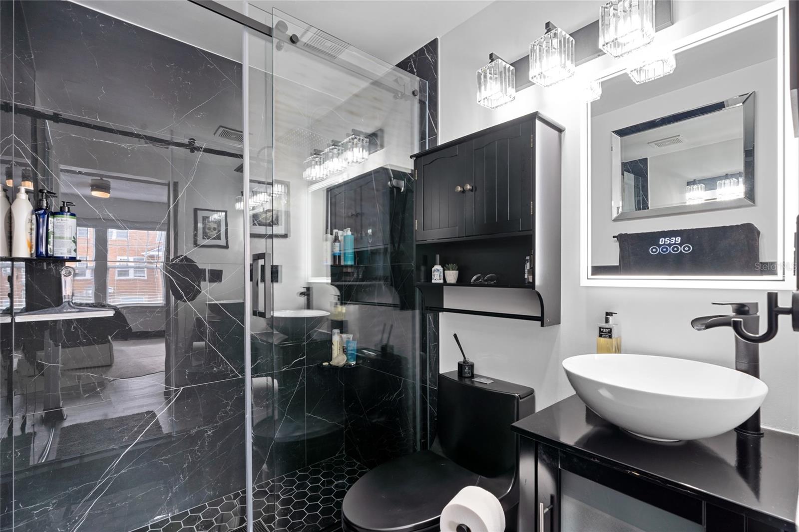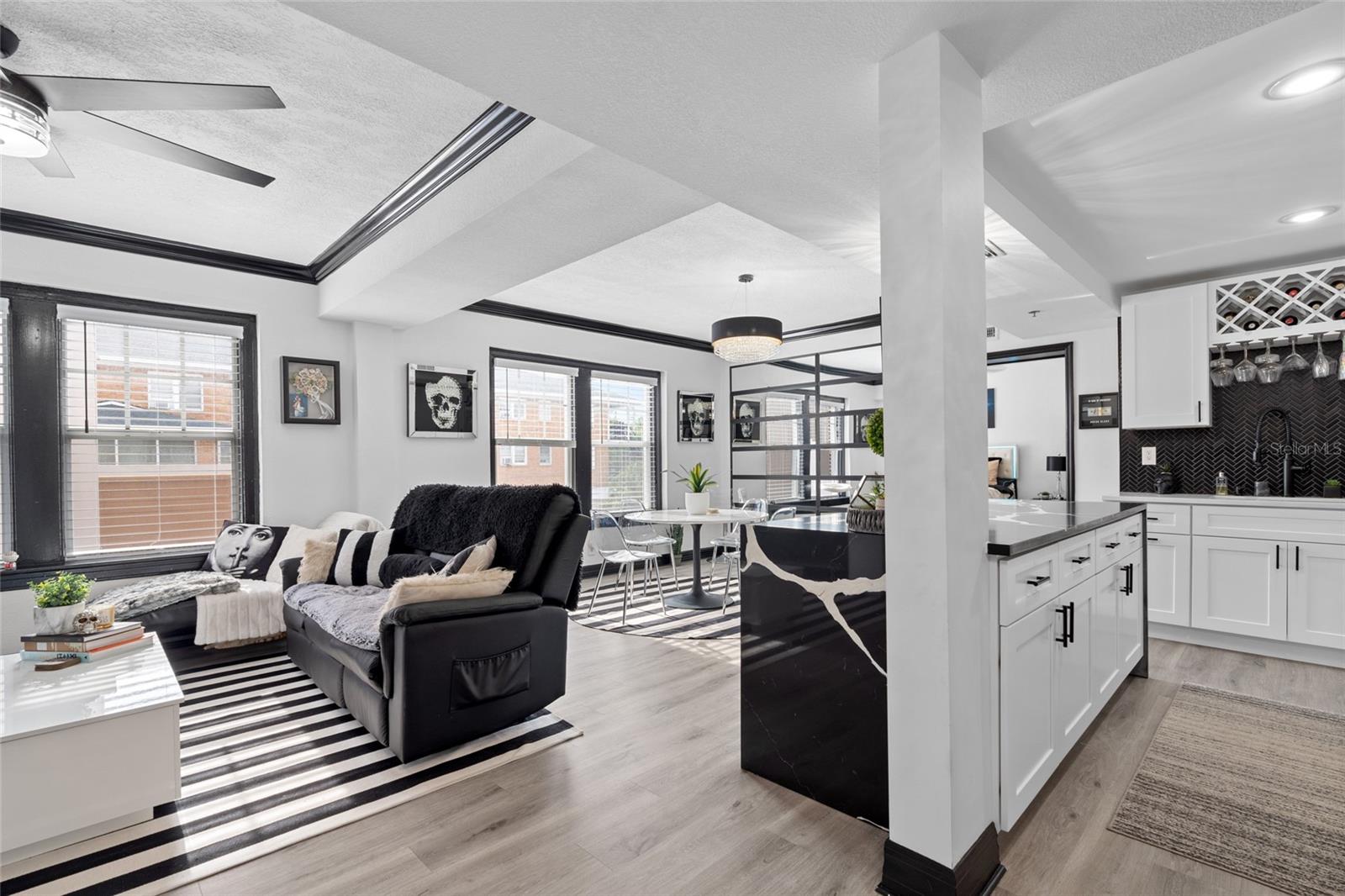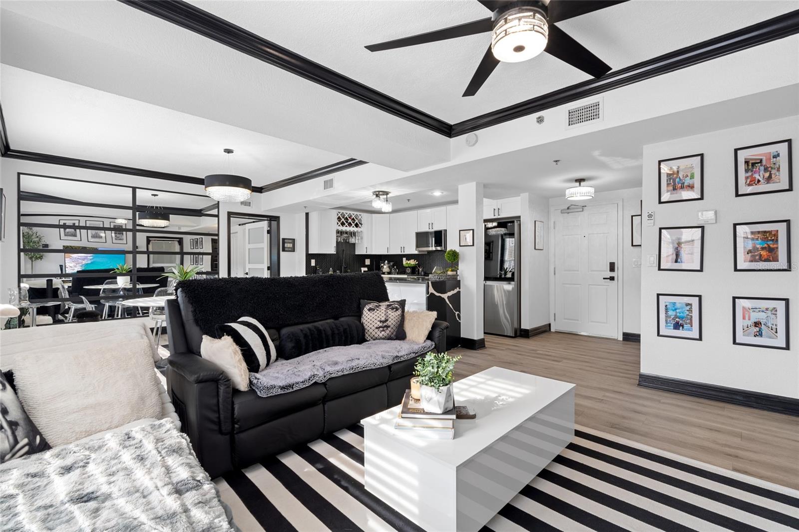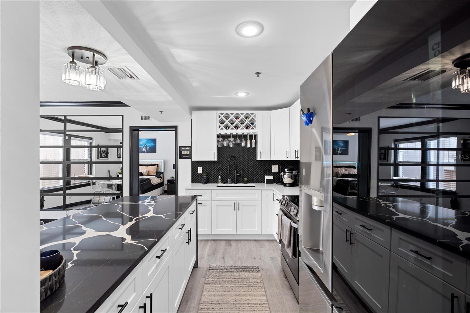 One or more photo(s) has been virtually staged. Welcome to 219 4th Ave N, Unit 201—where stylish downtown living meets modern comfort in this beautifully renovated 2-bedroom, 2-bath condo in the heart of vibrant St. Petersburg. No detail was overlooked in this top-to-bottom transformation in 2024, offering an elevated lifestyle just steps from Beach Drive, shopping, dining, and the waterfront. Step inside to rich, waterproof Pergo Pro+ WetProtect laminate flooring throughout, paired with fresh paint and sleek finishes that set a contemporary tone. The completely reimagined kitchen features all-new cabinetry, quartz countertops, a 2024 LG appliance suite (including fridge, oven, and microwave), custom lighting over the island, and even a pop-up countertop outlet for modern convenience. Both bathrooms have been completely gutted and rebuilt with frameless sliding glass shower doors, contemporary vanities, designer light fixtures, new toilets, and full tiled shower walls. Barn doors add a touch of privacy and style to each bath. Additional 2024 highlights include: LG Smart WashTower with front-load washer & dryer, Keyless digital front entry with app-enabled access, Modern ceiling fans and lighting fixtures throughout, Custom closet and bedroom doors with frosted glass, New HVAC and laundry closet doors for a clean, finished look. This turnkey unit delivers comfort, function, and luxury for those who want to be in the middle of it all—whether you're walking to coffee shops, grabbing a bite on Central Ave, or enjoying the Pier. Don't miss your chance to live in one of St. Pete’s most desirable downtown locations—schedule your showing today!