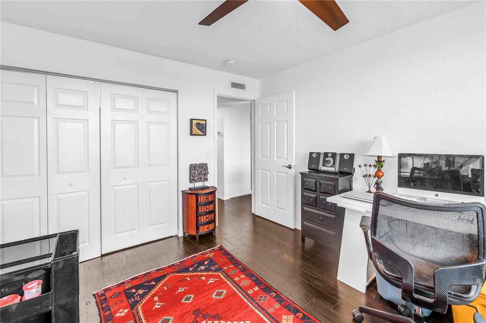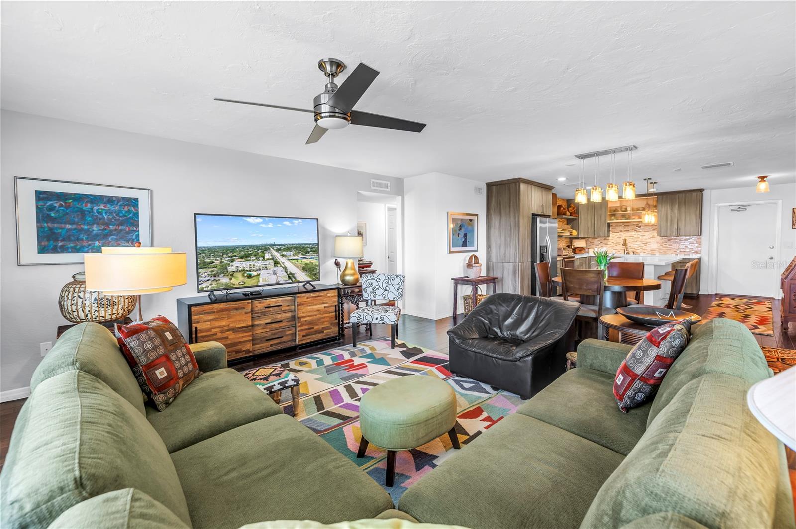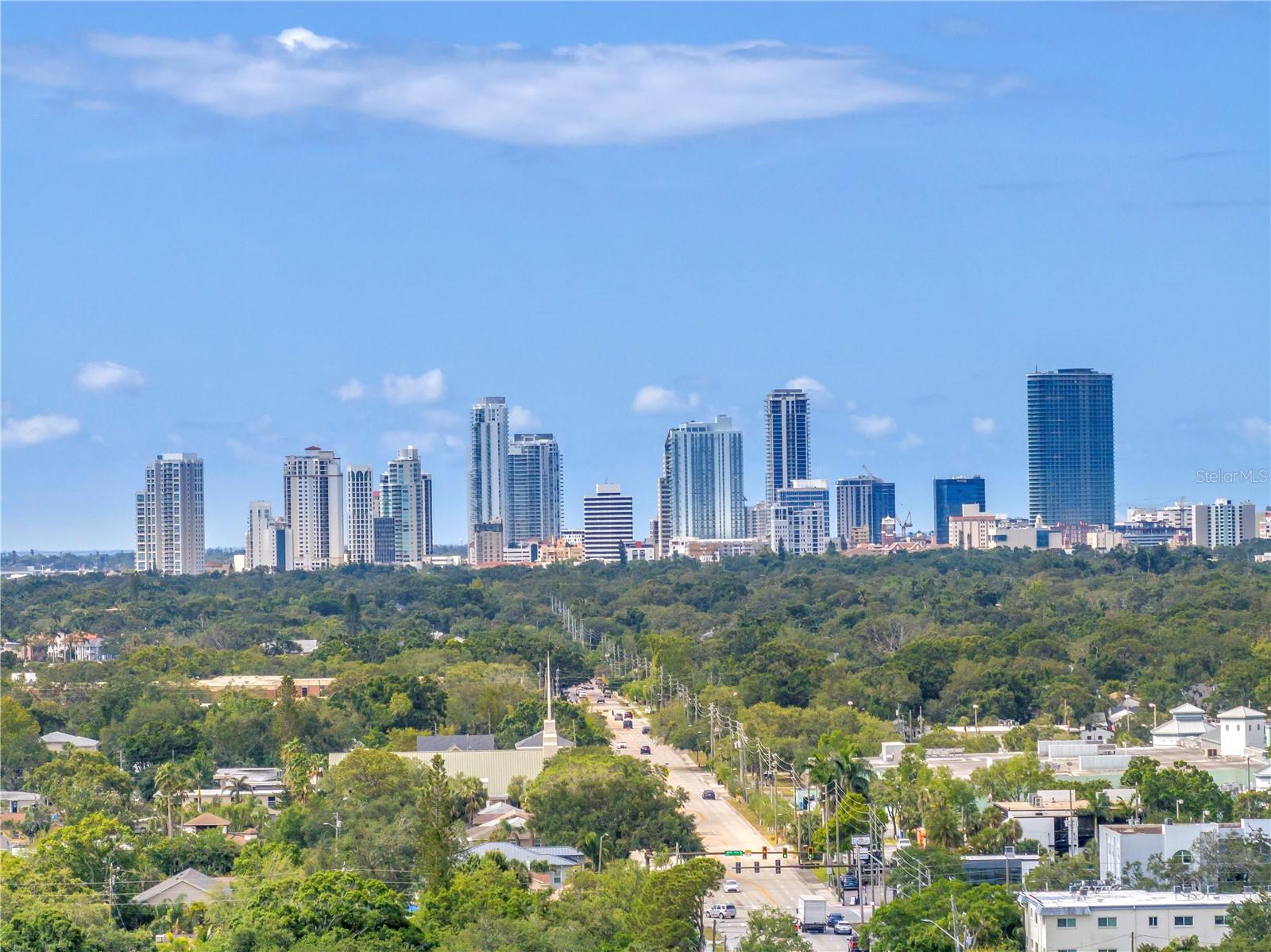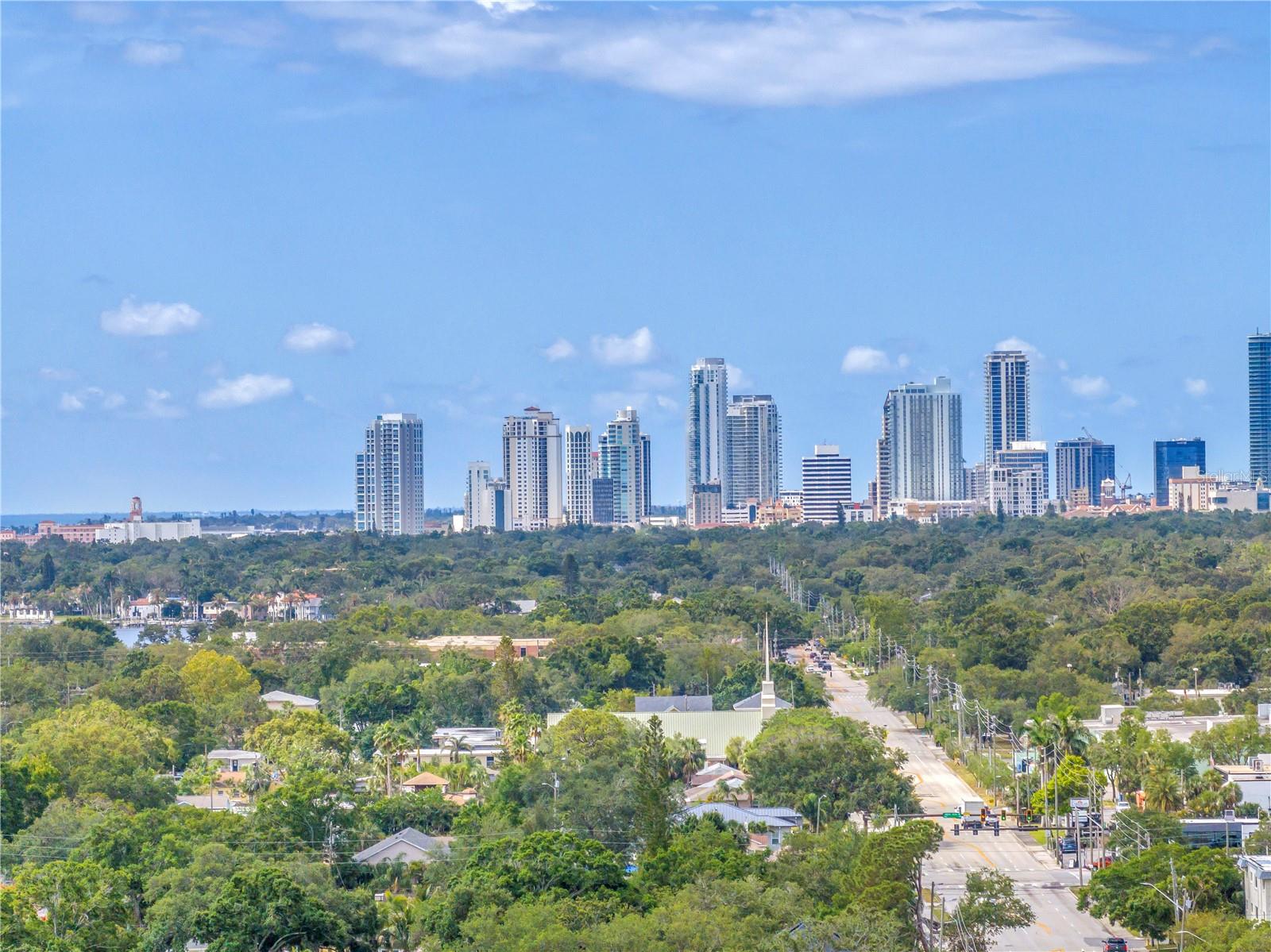 Price Reduced by $10k, making this the BEST priced 3/2 condo from Downtown to Northeast St. Pete!!! Welcome home to this stunning, bright, and spacious split-plan condo, tastefully updated and featuring three bedrooms and two bathrooms with over 1,500 square feet of luxury living space. The modern chef's kitchen includes an eat-in kitchen island, flat-panel cabinetry, a tall pantry, deep drawers with soft-close doors, Corian countertops, stainless steel appliances, and a stackable washer and dryer conveniently located in a laundry room just off the kitchen—an exceptional find for a condo. This ideal, all ages, Florida living space also boasts an inviting outdoor balcony with a Mid-Century style fireplace, perfect for entertaining while overlooking downtown St. Petersburg. Situated on the top floor of a well-constructed building, this unit is located on the top (4th) floor on the southwest corner of the building and offers an excellent view of the downtown St. Pete skyline. Remarkably, the property remained undamaged after both Hurricane Helene and Hurricane Milton, showcasing its strong construction and durability. Monthly maintenance fees include: Cable & WIFI, water, sewage & trash removal, exterior and building maintenance, pool maintenance, property manager, escrow reserves, master policy insurance! As you enter, you’re greeted by high style and elegance in an open floor plan. Dark, grounding engineered hardwood flooring flows seamlessly throughout the living spaces, and plantation shutters allow you to control both the view and the light entering each room. The primary suite serves as a private sanctuary, thoughtfully placed in its own wing of the home. It features a spacious living area, a walk-in closet, and a spa-like bathroom showcasing exquisite tile work. The guest bedrooms are separated by an updated guest bathroom, and the impact-rated sliding glass doors lead out to the inviting outdoor space. Double-pane windows throughout the rest of the home enhance energy efficiency. As a south-facing corner unit, this condo provides beautiful views of the ever-changing skyline of Downtown St. Petersburg. This is the essence of Florida living, just minutes from downtown without the noise and parking hassle. Racquet Club Northeast is a well-known, pet-friendly community with healthy reserves and beautifully landscaped grounds. It offers the security of a secured lobby, convenient elevators, and a community pool. The location is central and unmatched in affordability, making it easy to work on your tennis game at the private racquet club next door or indulge in dining, shopping, and art exploration in downtown St. Petersburg. Plus, enjoy quick access to I-275, Tampa International Airport, and Florida's top-rated beaches. Additional amenities include sauna rooms in clubhouse next to pool, covered parking, car wash station, bike storage. Raquet Cub Condominiums is also conveniently located next door to (but not affiliated with) the Raquet Club a membership-owned tennis club with swimming pool and local hot spot bistro restaurant on site. Don't miss out on this opportunity! Milestone completed with a passing report! Call today to schedule a tour!