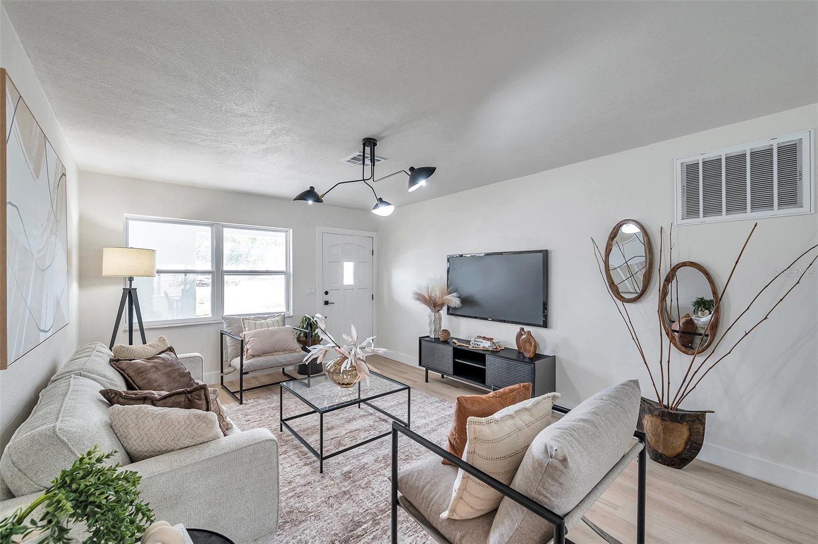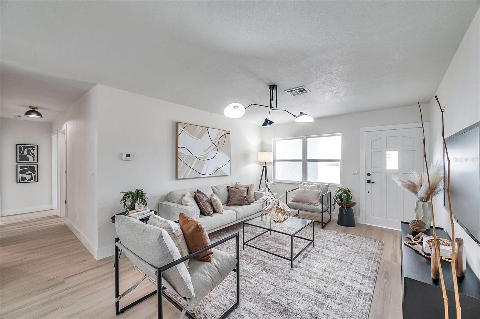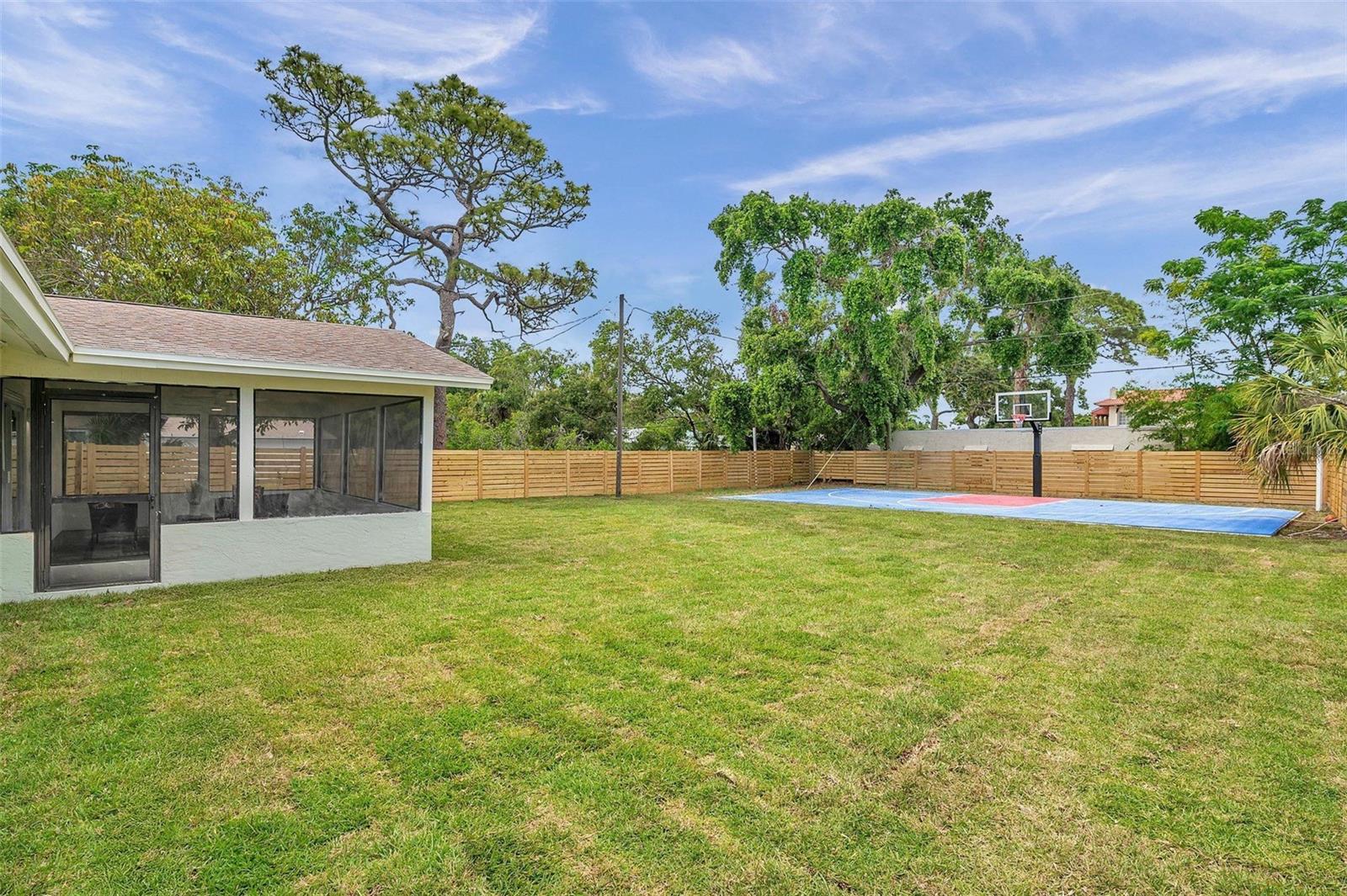Welcome home to this charming and fully updated 3-bedroom, 2-bath gem, perfectly situated high and dry in the desirable Lakewood Estates! Step inside to a light-filled, open-concept living and dining area featuring a wet bar, perfect for entertaining. The modern kitchen is a chef’s dream, complete with brand-new quartz countertops, soft-close cabinetry, and stainless steel appliances. From the dining room, step outside to your oversized, screened-in patio—ideal for year-round gatherings and outdoor living. The huge, newly fenced backyard offers tons of space to play and relax, and even features a private basketball court! The spacious primary suite includes a beautifully updated en suite bathroom, while two additional guest bedrooms and a stylish full bath offer comfort for family or visitors. The garage provides ample space for your vehicle, storage, and includes washer/dryer hookups. Plus, the horseshoe driveway out front adds curb appeal and provides plenty of parking. Major updates include a new HVAC system (2025) and new water heater (2025). Don’t miss your opportunity to own this entertainer’s dream in one of the area's most established neighborhoods. Schedule your showing today!