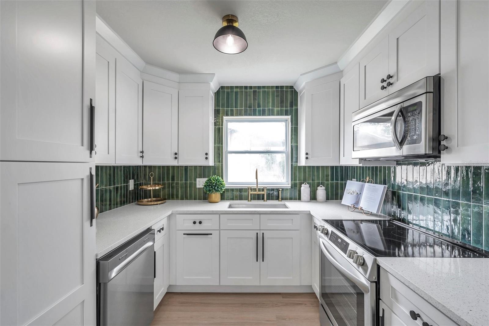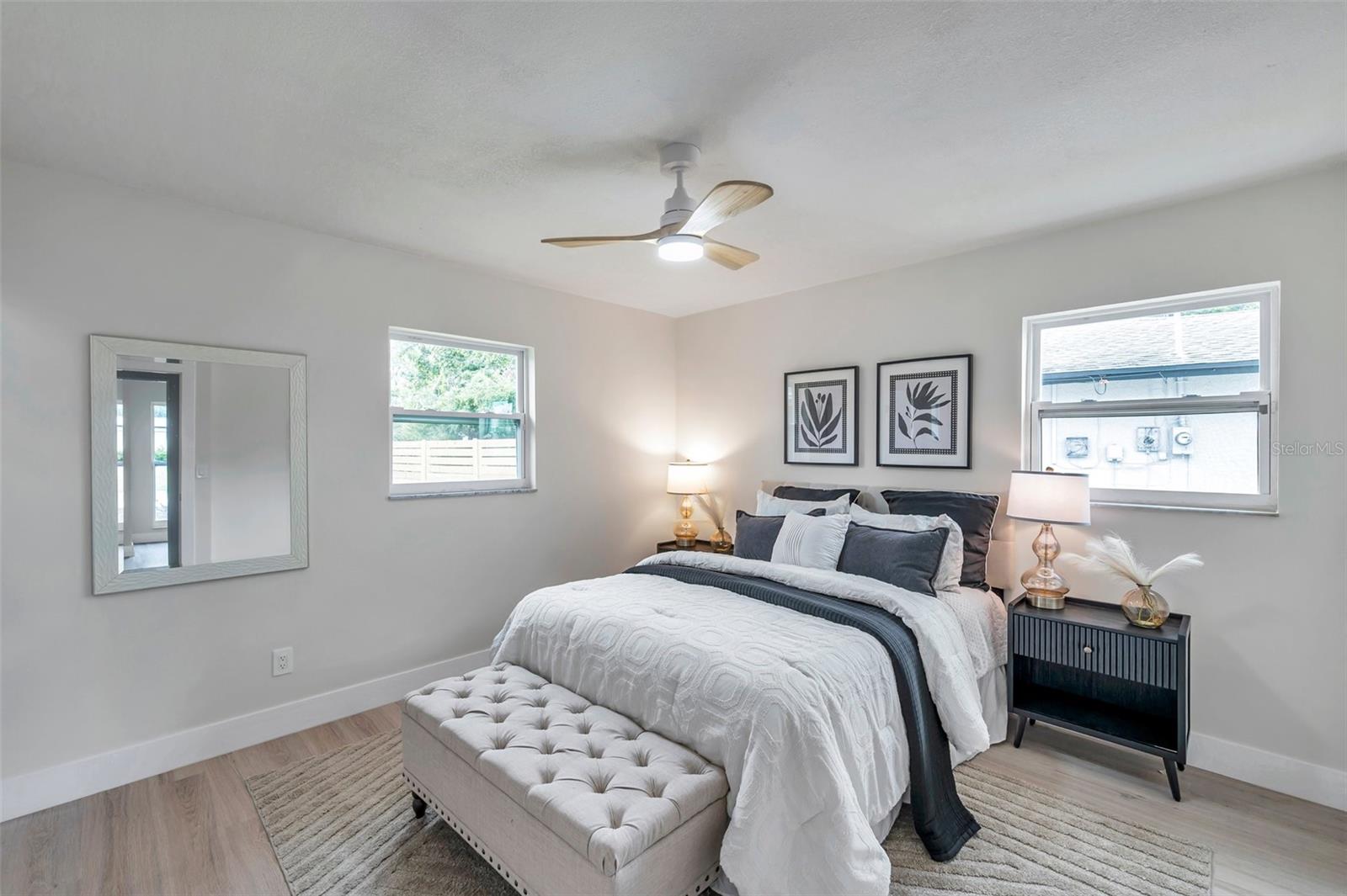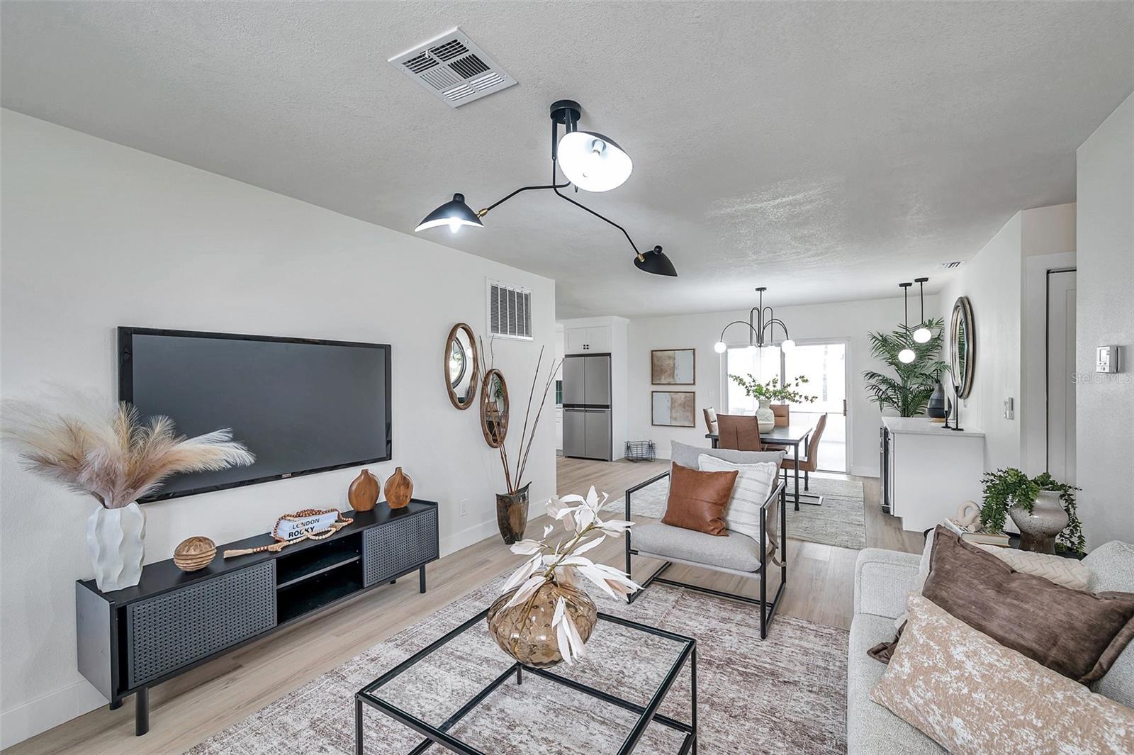 Welcome home to this charming and fully updated 3-bedroom, 2-bath gem, perfectly situated high and dry in the desirable Lakewood Estates! Step inside to a light-filled, open-concept living and dining area featuring a wet bar, perfect for entertaining. The modern kitchen is a chef’s dream, complete with brand-new quartz countertops, soft-close cabinetry, and stainless steel appliances. From the dining room, step outside to your oversized, screened-in patio—ideal for year-round gatherings and outdoor living. The huge, newly fenced backyard offers tons of space to play and relax, and even features a private basketball court! The spacious primary suite includes a beautifully updated en suite bathroom, while two additional guest bedrooms and a stylish full bath offer comfort for family or visitors. The garage provides ample space for your vehicle, storage, and includes washer/dryer hookups. Plus, the horseshoe driveway out front adds curb appeal and provides plenty of parking. Major updates include a new HVAC system (2025) and new water heater (2025). Don’t miss your opportunity to own this entertainer’s dream in one of the area's most established neighborhoods. Schedule your showing today!