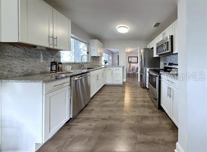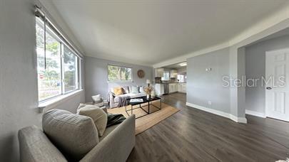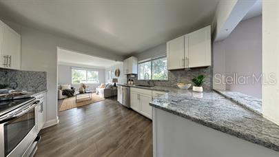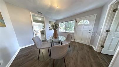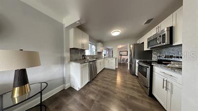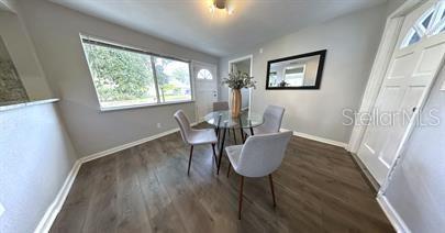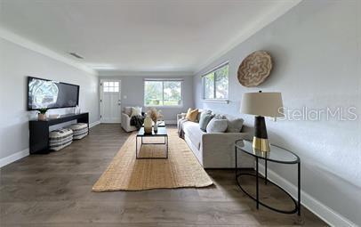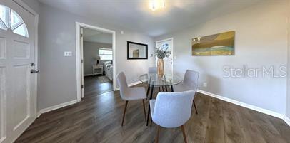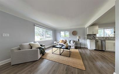 One or more photo(s) has been virtually staged. Amazing opportunity to own a house in a NO FLOOD ZONE, NO HOA with a BRAND NEW ROOF! in the popular Central Oak Park area of St. Petersburg. This nicely renovated 3 bedroom/2 bathroom 1950's Bungalow has been given a new life with tasteful renovations that include fresh paint, new laminate flooring, a newer kitchen with stainless appliances, granite countertops, backsplash, new shelving, new garbage disposal, new flooring, new LED lighting, new kitchen cabinets and new hardware. The house has a large formal dining space right off the kitchen with doors to either side of the home. The living room is opened up to the kitchen to make an open living space. All bedrooms have been painted with new ceiling fans installed. There is a washer/dryer hook up in the old garage. The exterior has a mix of old and new landscaping with mature large oak trees mixed with new landscaping framing the home. The exterior of the home has also been painted. The lot is an oversized corner lot on the 1920's original brick streets. The location of this home is absolutely prime being only 5 minutes to downtown St. Petersburg, the expanding Central Avenue and less than 10 minutes to the Gulf Beaches. An additional bonus, this home is located in one of the area’s high and dry elevations, among the highest in St. Petersburg with NO FLOOD ZONE. The charm of this amazing community cannot go overlooked. This one won't last!