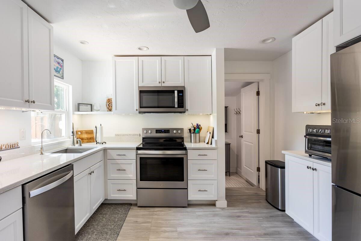 Nestled in the heart of St. Petersburg's Historic Uptown, this delightful 2-bedroom, 2-bathroom bungalow seamlessly blends classic charm with modern amenities. Just steps away from Crescent Lake Park and a short stroll to downtown's vibrant shops, eateries, and cultural venues, this home offers both convenience and character. Key Features: Living: Approximately 1,000 sq ft of living space featuring 2 bedrooms, 2 bathrooms, living room, dining room and kitchen. Adorable front porch and a back deck for entertaining. Updated Kitchen: Fully remodeled kitchen (2018) equipped with stainless steel appliances, quartz countertops, and ample cabinetry. Outdoor Oasis: Fully fenced backyard with a private deck, perfect for entertaining or relaxing in the Florida sunshine. Parking: Off-street parking available via shared driveway. This home is ideal for those seeking the charm of a historic neighborhood combined with modern comforts. Whether you're a first-time homebuyer, downsizing, or looking for a vacation retreat, this property offers a unique opportunity to own a piece of St. Petersburg's rich history. Some furniture negotiable for sale. Homeowner is listing agent.
