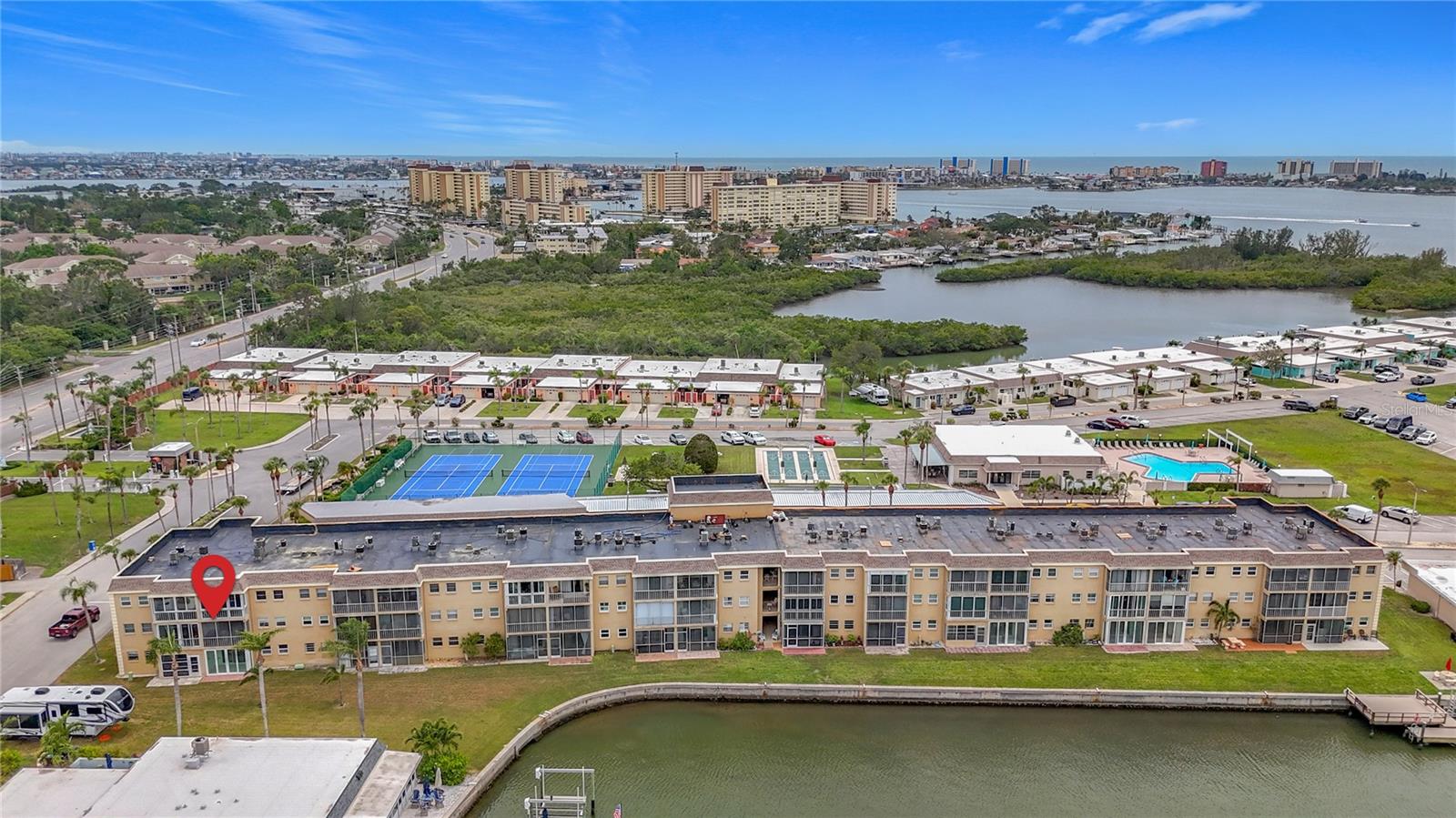 Welcome home to your waterfront paradise! Only a short distance from the immaculate shores of Madeira Beach, FL. Move-In Ready & Fully Furnished! This immaculately maintained, FURNISHED two-bedroom, two-bathroom condominium has a fully renovated walk-in shower. Boca Ciega Point is in the highly sought-after 55+ gated boating community, which is reserved for residents 55 and older. Experience the essence of resort-style living embodied in this community lifestyle. The beautiful condo on the second floor of this gorgeous waterfront property has an elevator for your convenience. The pride of being a homeowner is immediately apparent as soon as you enter this immaculately maintained condo that features an enclosed Florida room that provides a peaceful space to relax and enjoy the stunning sunsets with a peekaboo view of the intercoastal. For entertaining friends and family, the kitchen's large counter space and open breakfast bar blend in seamlessly with the dining and living areas. The HVAC system and hot water tank were replaced in 2023, and the electric panel has been upgraded for enhanced safety and efficiency. Additionally, a new roof was installed in 2025, and there are currently no outstanding assessments. The community has completed the new renovation of the main clubhouse. The gated community provides a tranquil environment while remaining conveniently close to all your favorite activities. Go to www.for its many activities and amenities. Don't pass up this opportunity to own a piece of paradise, which is close to John Pass, Bay Pines, Treasure Island, Madeira Beach, Seminole City Center, and St. Petersburg. Other Boca Ciega Point amenities include bocce ball, shuffleboard, pickleball, tennis, men’s and women’s locker rooms, monthly events, and so much more! Don't hold off! There are TWO clubhouses, a library, a heated pool with a sauna, a putting green, and a recently renovated fitness center. The monthly fees include water, sewer, trash, cable TV, and Internet. (Pets are not permitted, service only). This kind of opportunity doesn't come around very often, so set up your showing soon.