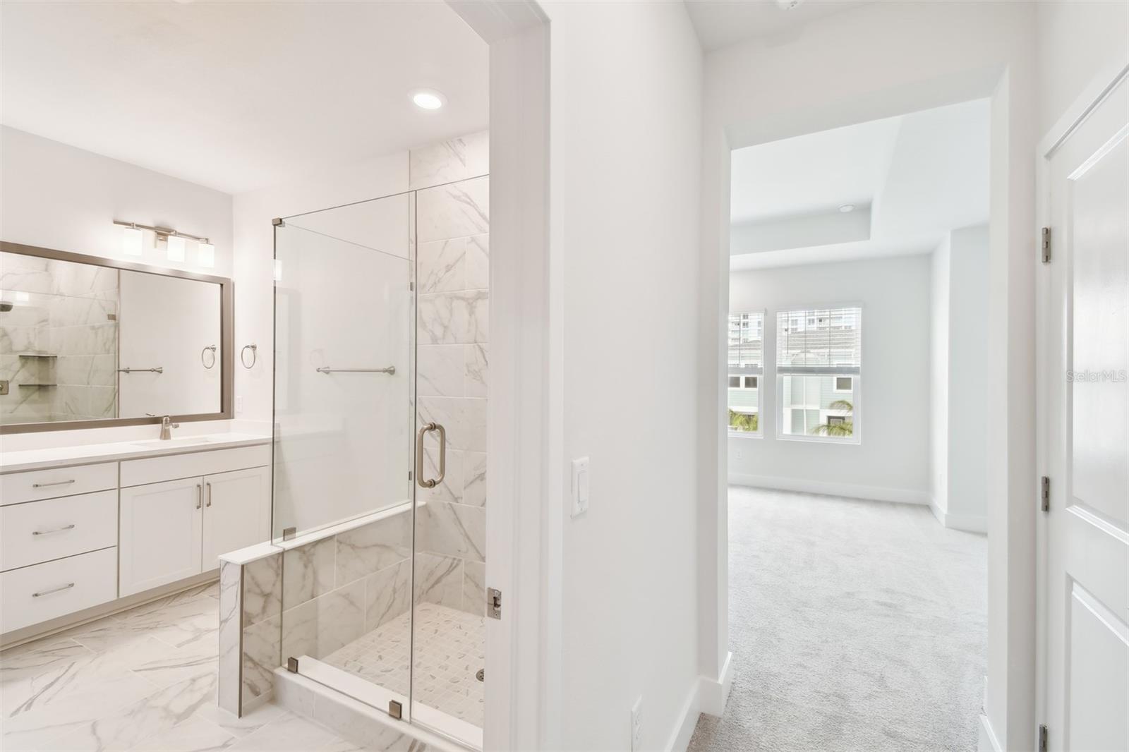 Welcome to Towns at Union, conveniently located just blocks from Central Avenue and moments from the best of St. Petersburg. Walk to vibrant restaurants, cozy coffee shops, and exciting entertainment venues, or enjoy a short drive to award-winning beaches and the heart of Downtown St. Pete. These thoughtfully designed townhomes by David Weekley Homes feature curated finishes that elevate everyday living and create a perfect setting for entertaining. Homesite 43, an interior unit tucked along a quiet alley, offers a seamless flow between the kitchen, dining, and living areas—ideal for both hosting and daily life. Soaring ceilings and large, energy-efficient hurricane impact windows flood the space with natural light, giving it a bright and airy feel throughout. Step out onto your private balcony overlooking the beautifully maintained common area, and enjoy a view that captures the essence of resort-style living—a serene retreat right at home. The spacious Owner’s Retreat offers a peaceful escape with a cozy bedroom, a walk-in closet, and a stylish en-suite bathroom complete with a double sink vanity—perfect for busy mornings or relaxing evenings. On the first floor, you’ll find a naturally lit guest bedroom and a full bathroom, ideal for visitors or a dedicated home office. Don’t miss your chance to live in one of St. Pete’s most walkable and desirable neighborhoods. Schedule your tour today!