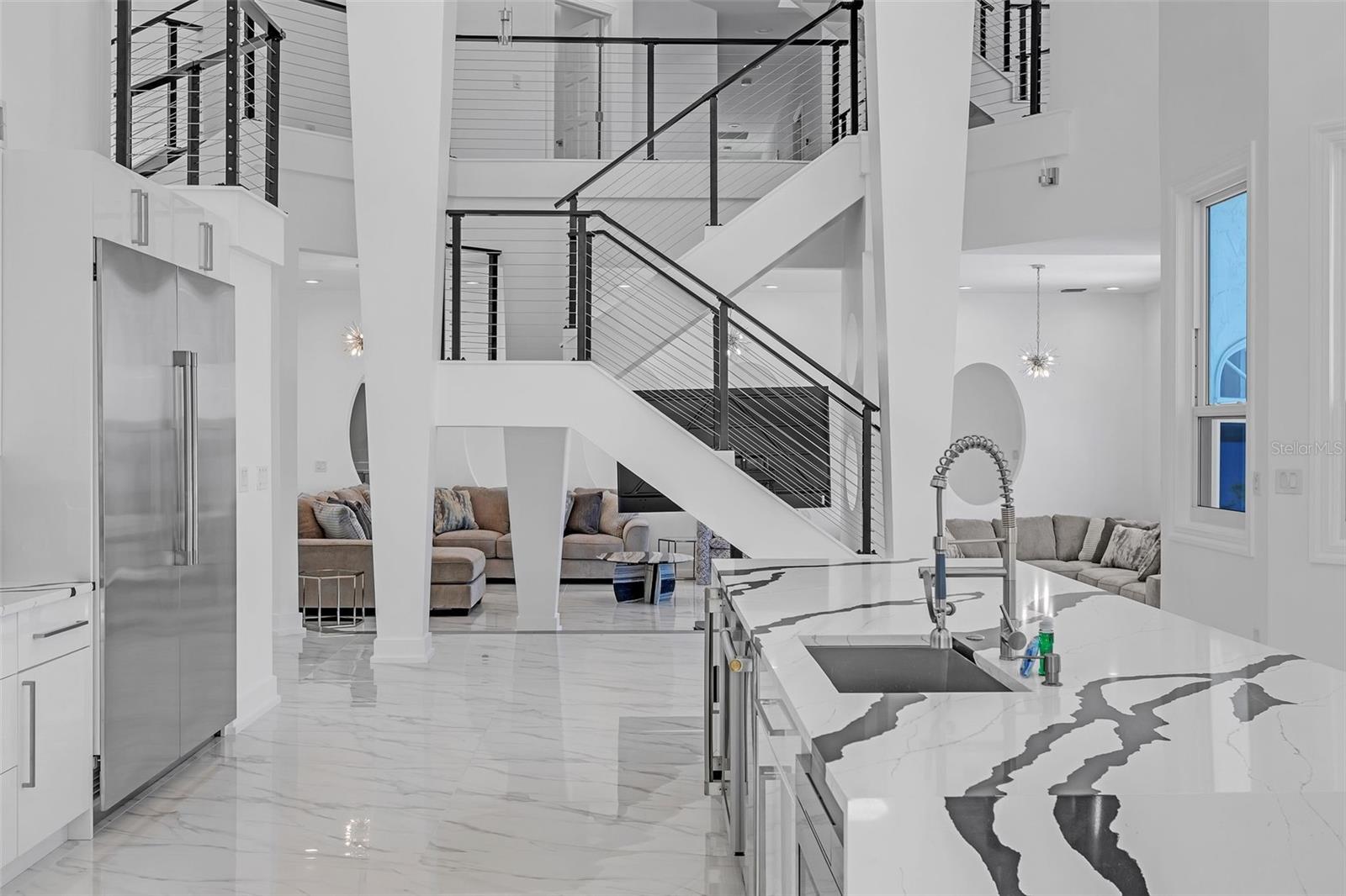 Experience Waterfront Luxury Living at Its Finest. Wake up each morning to the soothing sounds of waves and panoramic views of Tampa Bay right from your bedroom. This exquisite saltwater estate offers the ultimate in coastal luxury, with over 6,800 square feet of thoughtfully designed living space and sweeping vistas that stretch to the mouth of the Gulf of Mexico. Completely reimagined in 2023, this multi-level modern masterpiece features every high-end upgrade imaginable—including a brand-new Spanish tile roof, hurricane-impact windows and doors, custom Italian flooring, and designer fixtures throughout. The striking open-concept floor plan is anchored by a dramatic grand staircase and soaring ceilings, creating a stunning setting for both everyday living and stylish entertaining. At the heart of the home, the chef’s kitchen is a culinary dream, outfitted with top-of-the-line Monogram appliances, propane cooking, and a fully separate butler’s pantry to accommodate seamless hosting. Elegant touches like a marble fireplace in the living room add warmth and sophistication, while generous living areas—including a formal dining room, family room, office/den with a second marble fireplace, media room, and bonus space—offer versatility for any lifestyle. With 6 spacious bedrooms and 6.5 luxurious baths, there’s ample room for family and guests to relax in comfort. Step outside to your private outdoor oasis featuring a resort-style pool and spa overlooking the bay, perfect for soaking up the Florida sun. Boaters will appreciate the deep water access and private dock—just minutes from open water adventures in the Gulf. This is more than a home; it’s a lifestyle. Don’t miss your opportunity to own one of Tampa Bay’s finest waterfront estates. Call today to schedule your private tour and discover the unparalleled elegance and comfort this exceptional property offers.