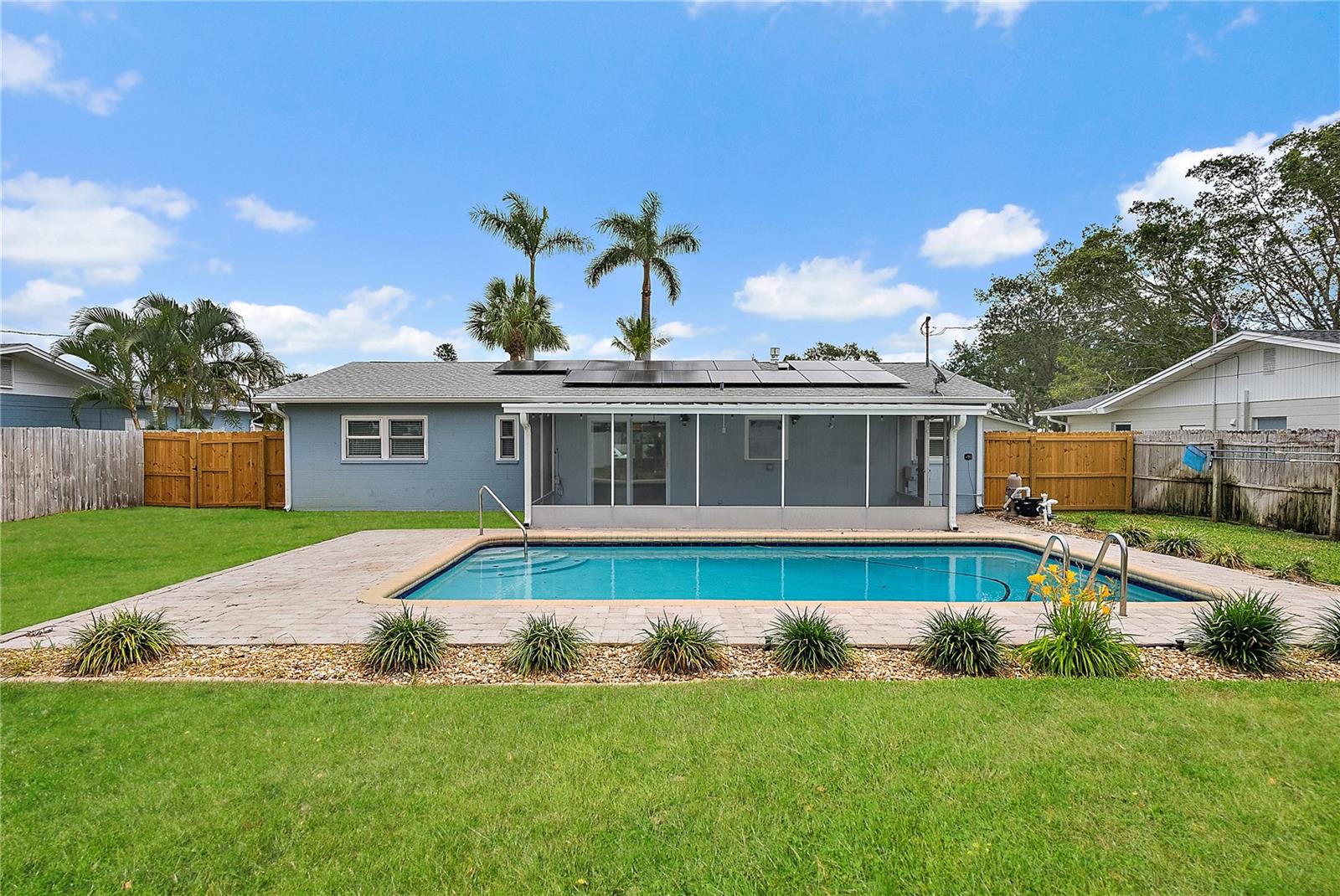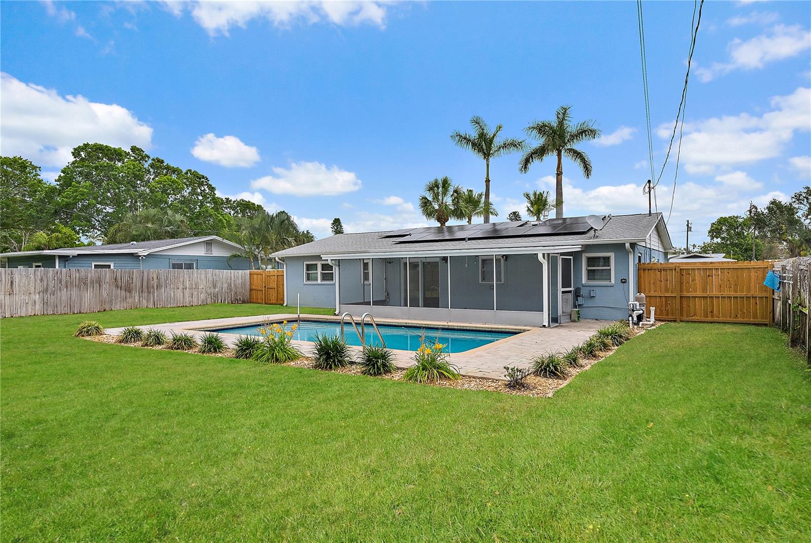 Welcome to your elegant oasis in the heart of Shore Acres, a desirable suburban neighborhood in St. Petersburg, Florida. Nestled on a generous 9,000 square foot lot. This 3-bedroom, 2-bathroom block home has been fully renovated and updated to offer a perfect blend of comfort and luxury, making it a home you will truly LOVE! The kitchen is a chef's dream, equipped with stainless steel appliances, gas stove, along with a huge pantry and storage room to accommodate all your culinary needs. The master bedroom features a walk-in closet, double sinks, and a luxurious shower equipped with dual heads—an exquisite blend of functionality and indulgence. Step outside to discover one of the largest backyards in Shore Acres—a private oasis designed for relaxation and entertainment. This expansive outdoor retreat boasts an oversized pool, providing an ideal backdrop for hosting lively gatherings or indulging in tranquil moments under the sun. The sheer size of the backyard offers endless possibilities for outdoor activities, making it a perfect extension of your living space and a highlight of this remarkable property. Enjoy the benefits of eco-friendly living with solar panels that significantly reduce monthly utilities to an impressive $40-$75. Within walking distance, you'll find top-rated schools and the New Shore Acres Recreation Center. This state-of-the-art facility offers a diverse array of programs, including before and after school activities, various classes for adults, and even programs for family pets. The center features a pool and a well-designed playground, providing a fun and inclusive environment for the entire community to enjoy. Enjoy walking, biking, or taking your golf cart to downtown St. Pete to immerse yourself in the vibrant community and enjoy the New Pier. With Florida's finest beaches, parks, golf courses, marinas, restaurants, and shopping destinations within reach, this home caters to those seeking both tranquility and activity. Plus, with Tampa International Airport only 25 minutes away, travel is both convenient and accessible, connecting you effortlessly with destinations near and far. This home did flood from Helena and is being sold AS-IS, with photos showcasing its fully renovated, move-in ready condition. The seller has taken meticulous care to ensure that all necessary remediation has been professionally addressed, providing you with peace of mind.