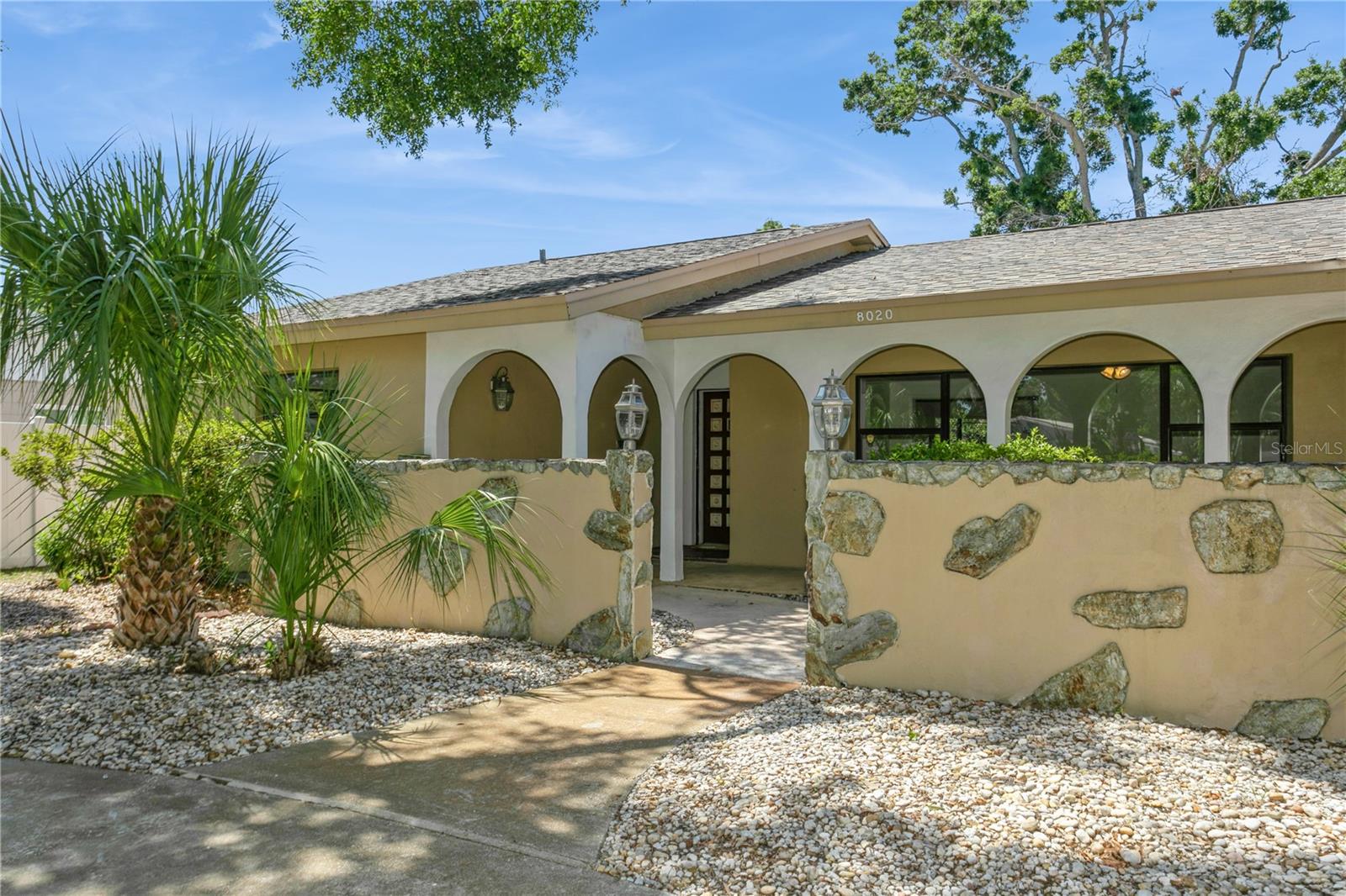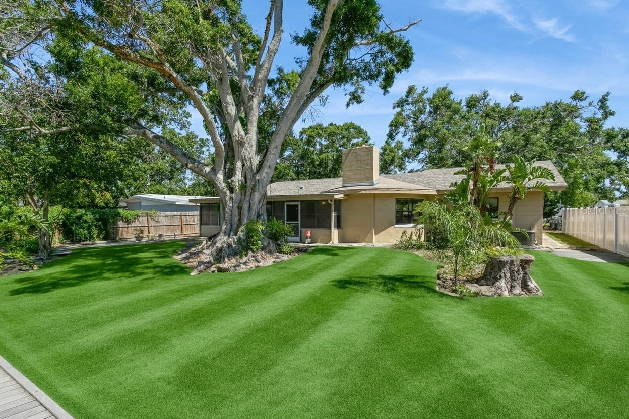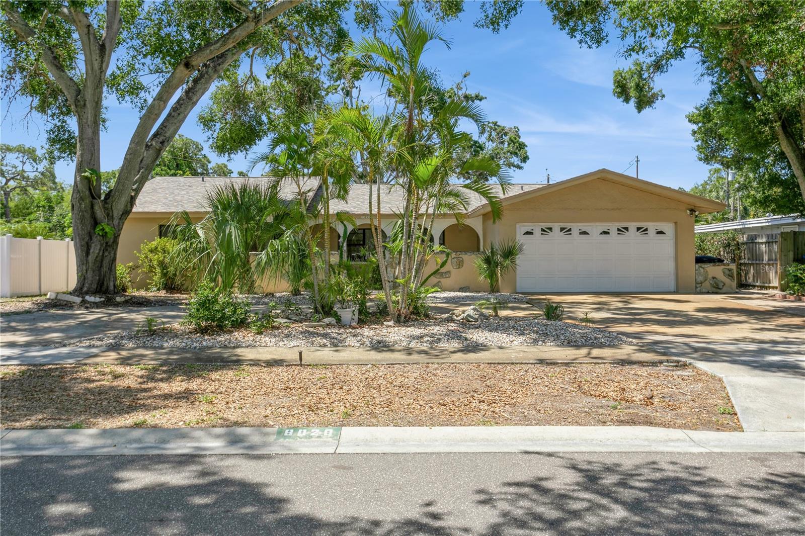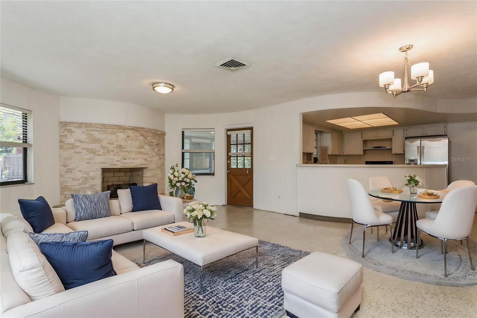 One or more photo(s) has been virtually staged. Welcome to this three-bedroom two bath home in highly coveted Jungle Terrace! This spacious one owner home offers over 1,800 sq feet of living space to personalize and make your very own. The original mid-century features remain intact, so you have the privilege of restoring or renovating! This vintage beauty features slate flooring in the foyer, the kitchen and bathrooms are tiled, and terrazzo flooring throughout the remainder of the home. The cozy fireplace encased in modern stone creates a beautiful focal point of the family room which leads out to the enclosed Florida room (30x12) inviting you for year-round enjoyment! Next to the family room is the kitchen with a wraparound bar making it the perfect home for family get togethers and entertaining. The home's split floor plan leaves nothing to be desired! The owner's private retreat features a huge walk-in closet, plenty of windows and access to the two-car garage through the bathroom. The charming vintage bathroom has a double vanity, linen closet and even a sunken bathtub! The other two freshly painted bedrooms are separated by the second full bathroom featuring a large vanity and shower/tub combo. With more than ample room for a pool the oversized lot is also the perfect place for gardening, cookouts, and even a perfect yard for pets. The very popular Walter Fuler Park with trails, tennis, pickleball, fishing, soccer, playground and large dog park is within view of your new home. In addition, nearby are the Tyrone Mall, Cobb Theatre, top tier gyms, the VA hospital, Target and a wide variety of restaurants. Treasure Island Beach is a quick ten-minute car ride making this NON-FLOOD zone home the perfect place to have the best of both worlds. If you're looking for space, potential and a highly desired neighborhood that quickly punches above its weight this home just might be the one. No damage or flooding due to our recent storms and the AC and roof are newer. Call today for your private tour.