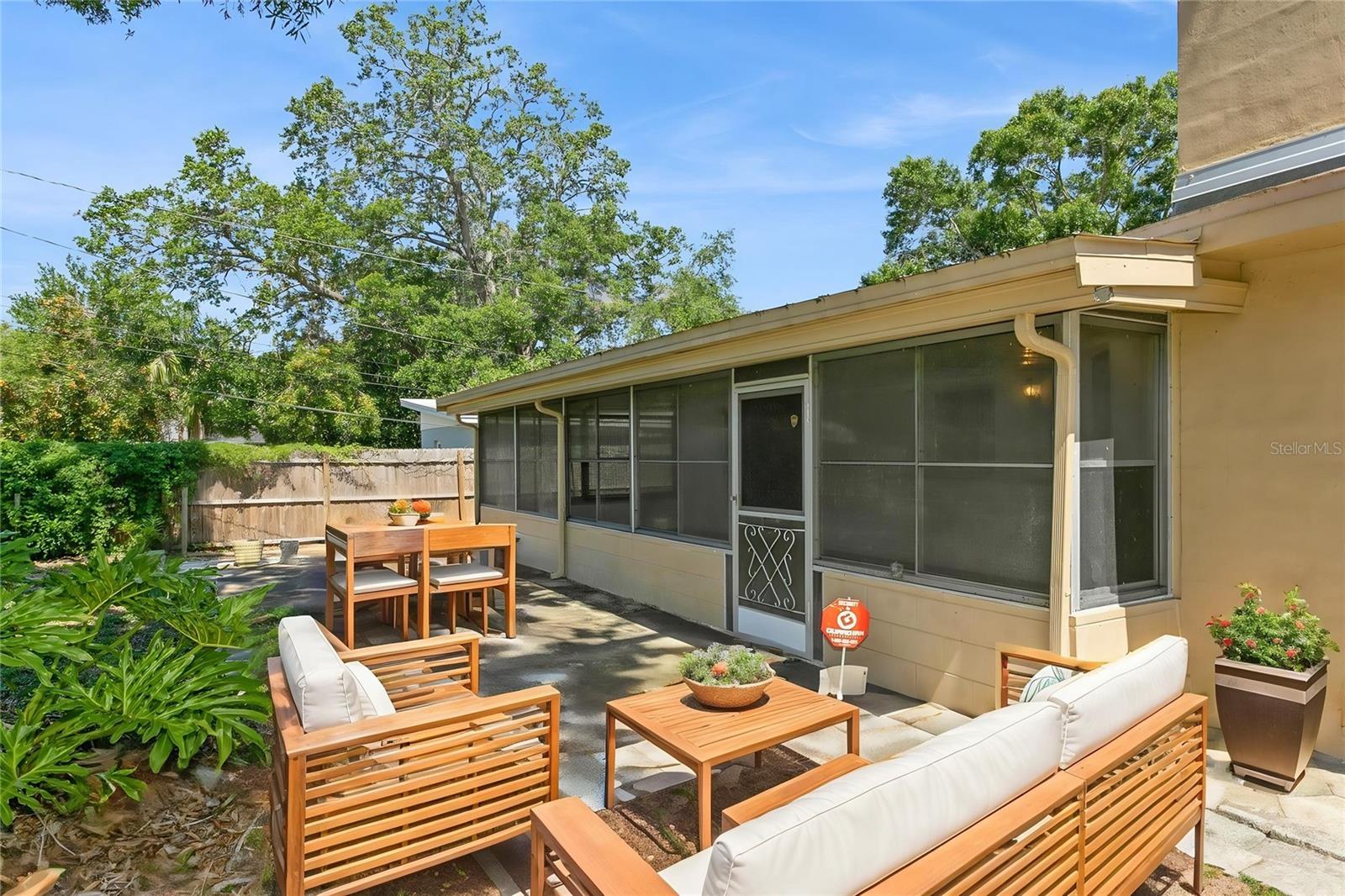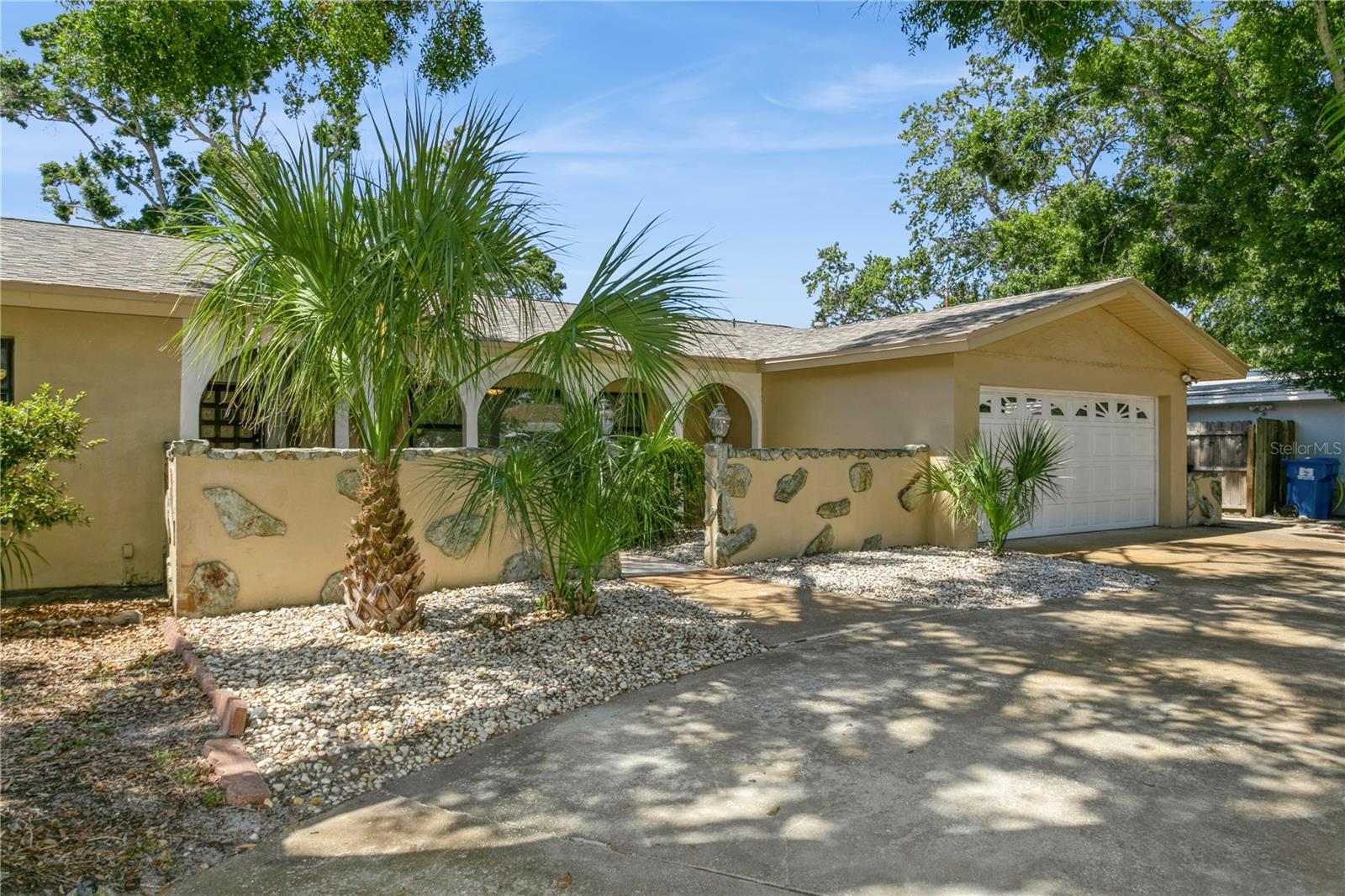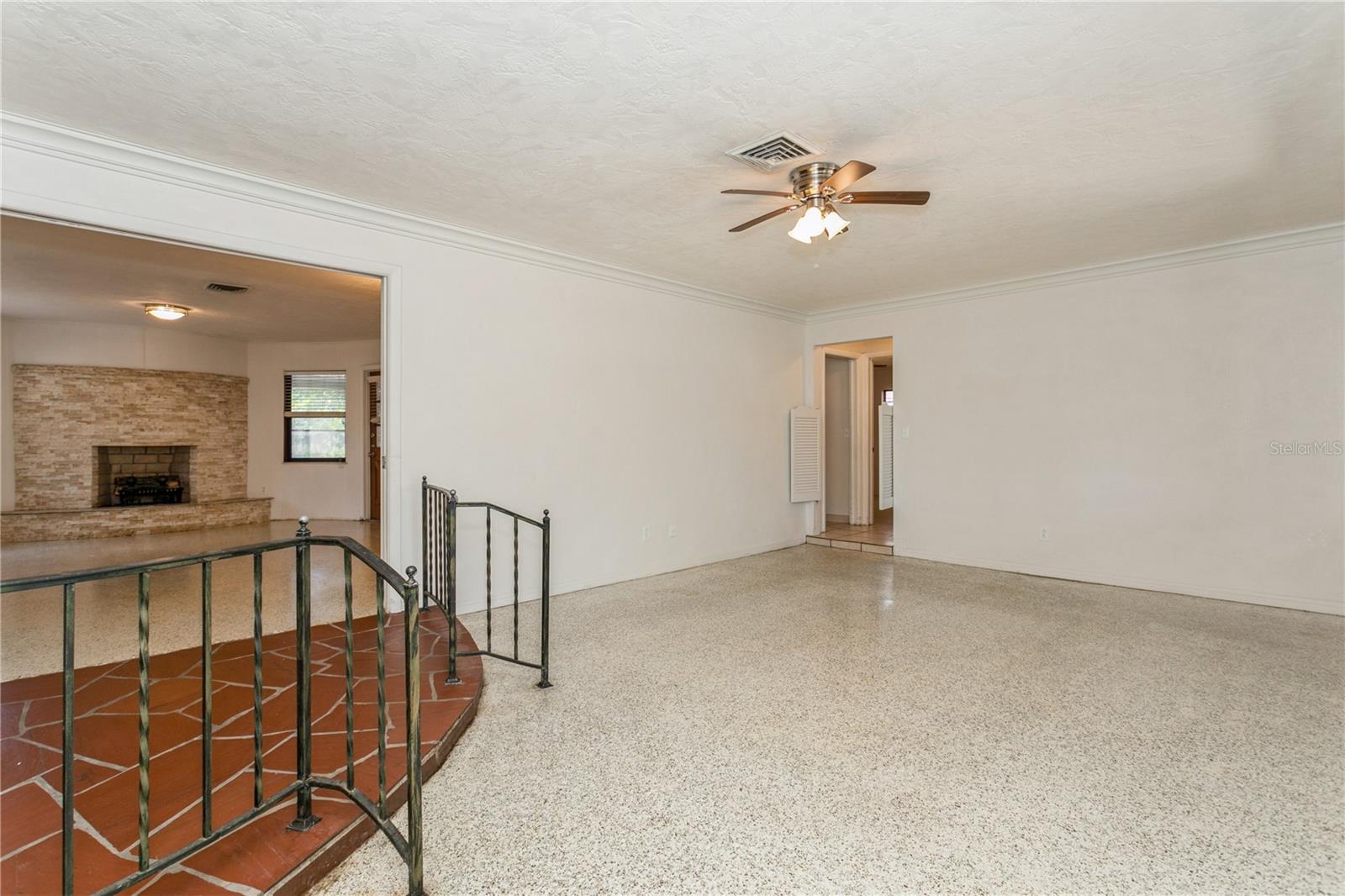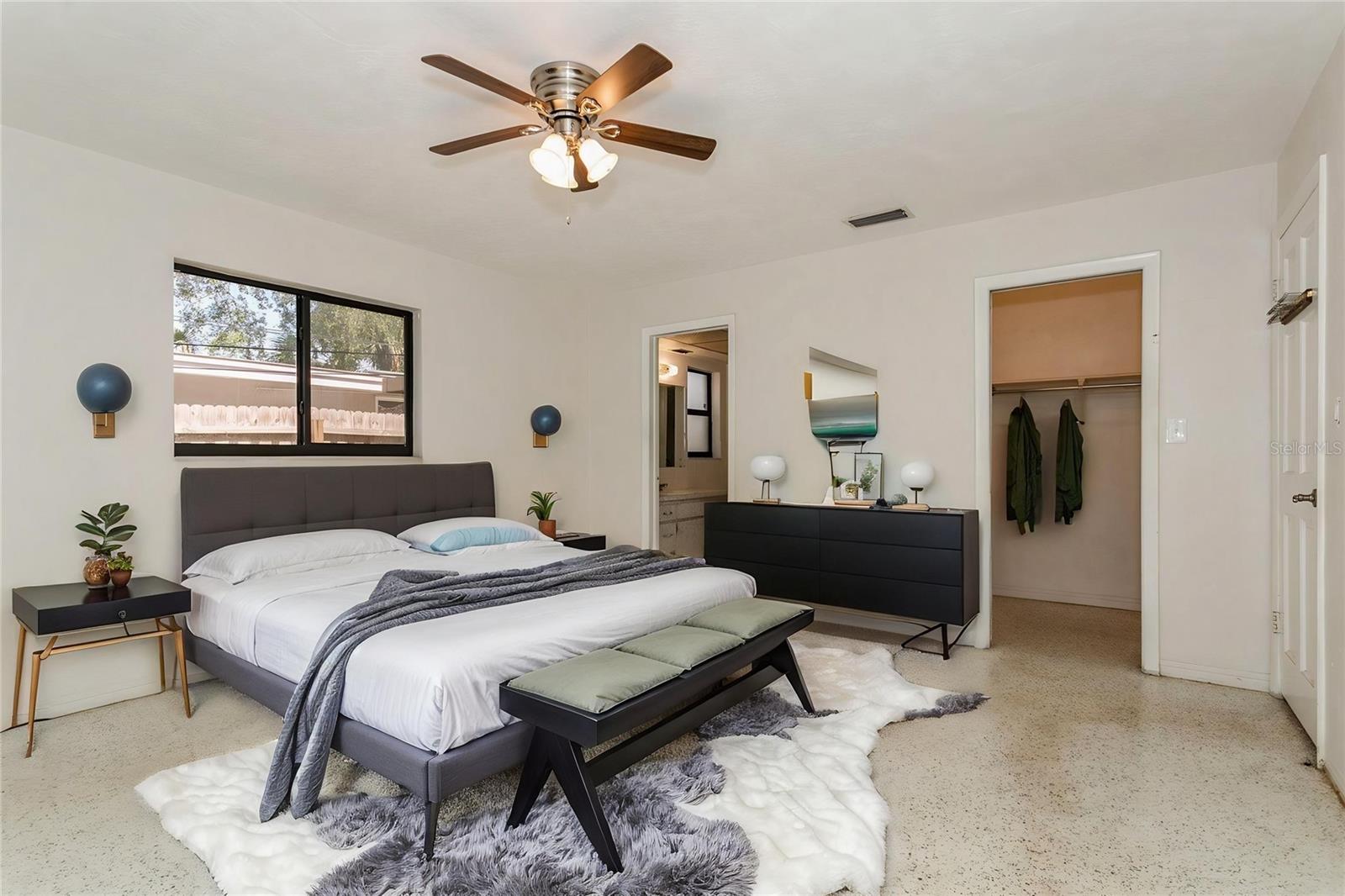 One or more photo(s) has been virtually staged. Welcome to this three-bedroom two bath home in highly coveted Jungle Terrace! This spacious one owner home offers over 1,800 sq feet of living space to personalize and make your very own. The original mid-century features remain intact, so you have the privilege of restoring or renovating! This vintage beauty features slate flooring in the foyer, the kitchen and bathrooms are tiled, and terrazzo flooring throughout the remainder of the home. The cozy fireplace encased in modern stone creates a beautiful focal point of the family room which leads out to the enclosed Florida room (30x12) inviting you for year-round enjoyment! Next to the family room is the kitchen with a wraparound bar making it the perfect home for family get togethers and entertaining. The home's split floor plan leaves nothing to be desired! The owner's private retreat features a huge walk-in closet, plenty of windows and access to the two-car garage through the bathroom. The charming vintage bathroom has a double vanity, linen closet and even a sunken bathtub! The other two freshly painted bedrooms are separated by the second full bathroom featuring a large vanity and shower/tub combo. With more than ample room for a pool the oversized lot is also the perfect place for gardening, cookouts, and even a perfect yard for pets. The very popular Walter Fuler Park with trails, tennis, pickleball, fishing, soccer, playground and large dog park is within view of your new home. In addition, nearby are the Tyrone Mall, Cobb Theatre, top tier gyms, the VA hospital, Target and a wide variety of restaurants. Treasure Island Beach is a quick ten-minute car ride making this NON-FLOOD zone home the perfect place to have the best of both worlds. If you're looking for space, potential and a highly desired neighborhood that quickly punches above its weight this home just might be the one. No damage or flooding due to our recent storms and the AC and roof are newer. Call today for your private tour.