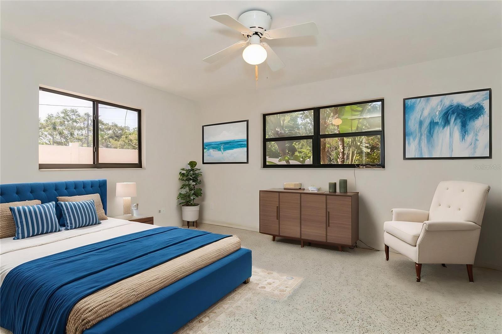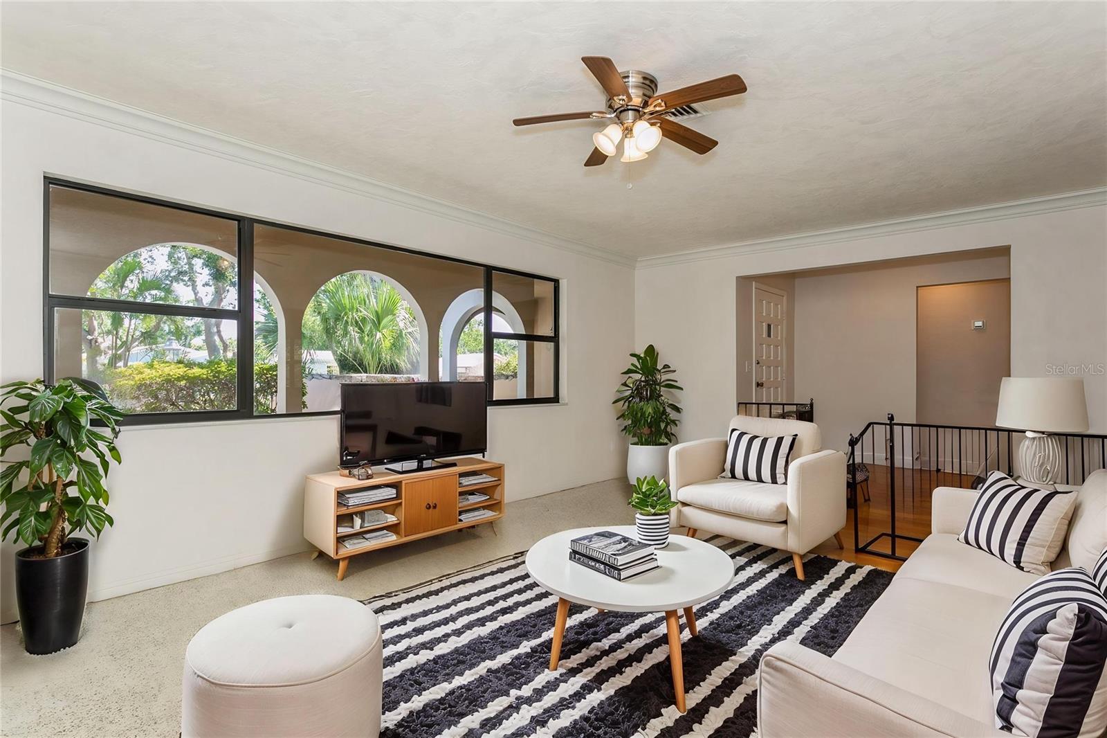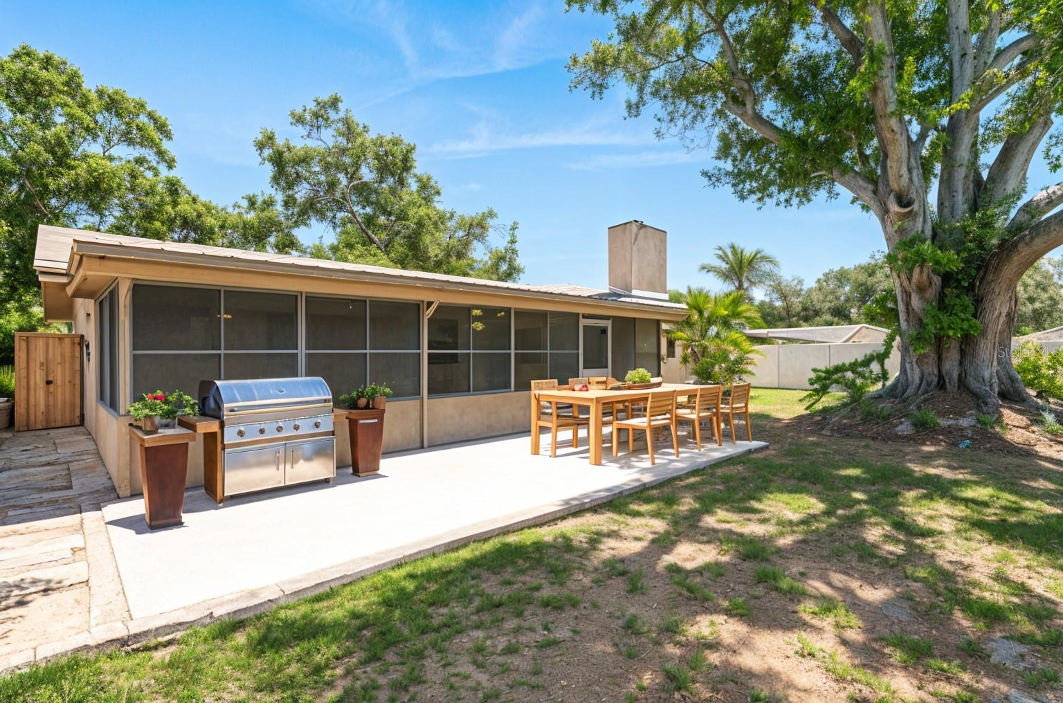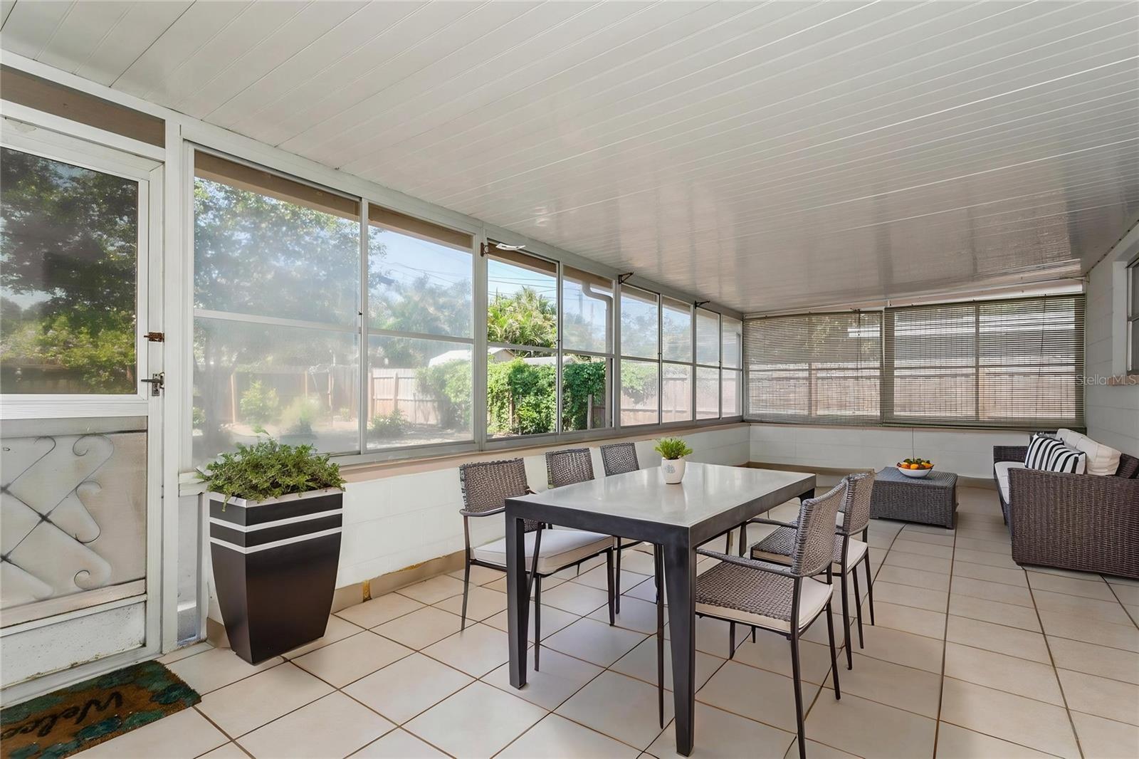 One or more photo(s) has been virtually staged. Welcome to this three-bedroom two bath home in highly coveted Jungle Terrace! This spacious one owner home offers over 1,800 sq feet of living space to personalize and make your very own. The original mid-century features remain intact, so you have the privilege of restoring or renovating! This vintage beauty features slate flooring in the foyer, the kitchen and bathrooms are tiled, and terrazzo flooring throughout the remainder of the home. The cozy fireplace encased in modern stone creates a beautiful focal point of the family room which leads out to the enclosed Florida room (30x12) inviting you for year-round enjoyment! Next to the family room is the kitchen with a wraparound bar making it the perfect home for family get togethers and entertaining. The home's split floor plan leaves nothing to be desired! The owner's private retreat features a huge walk-in closet, plenty of windows and access to the two-car garage through the bathroom. The charming vintage bathroom has a double vanity, linen closet and even a sunken bathtub! The other two freshly painted bedrooms are separated by the second full bathroom featuring a large vanity and shower/tub combo. With more than ample room for a pool the oversized lot is also the perfect place for gardening, cookouts, and even a perfect yard for pets. The very popular Walter Fuler Park with trails, tennis, pickleball, fishing, soccer, playground and large dog park is within view of your new home. In addition, nearby are the Tyrone Mall, Cobb Theatre, top tier gyms, the VA hospital, Target and a wide variety of restaurants. Treasure Island Beach is a quick ten-minute car ride making this NON-FLOOD zone home the perfect place to have the best of both worlds. If you're looking for space, potential and a highly desired neighborhood that quickly punches above its weight this home just might be the one. No damage or flooding due to our recent storms and the AC and roof are newer. Call today for your private tour.